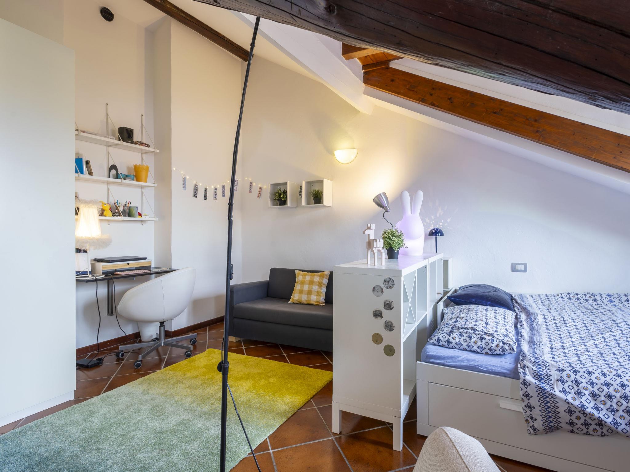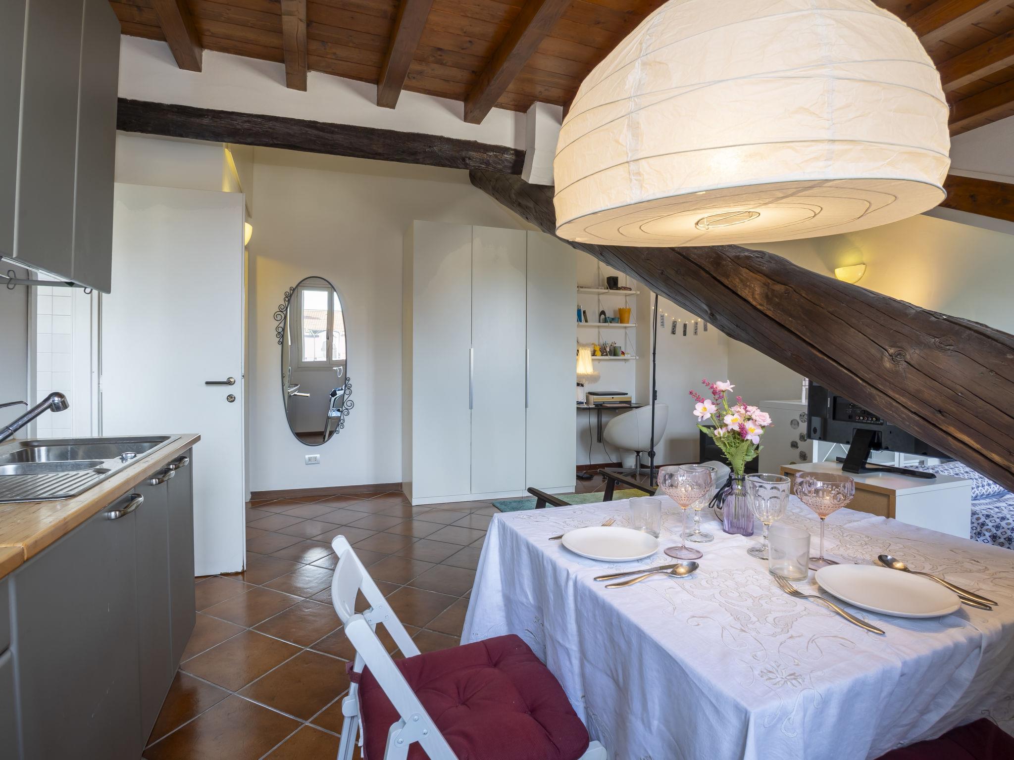 1-room studio 38 m2 on 4th floor, south facing position. Spacious and bright, with sloping ceilings, practical and comfortable furnishings: living/dining room with 1 double sofabed, dining table and TV. Kitchenette (2 hot plates, toaster, kettle, microwave). Shower/bidet/WC. Air-conditioning, forced-air heating, boiler. Facilities: washing machine, iron, hair dryer. Internet (WiFi, free). Please note: apartment courtyard side. Fridge without freezer, non-smokers only. Smoke alarm, fire extinguisher. IT015146C28VIYSZ2Y