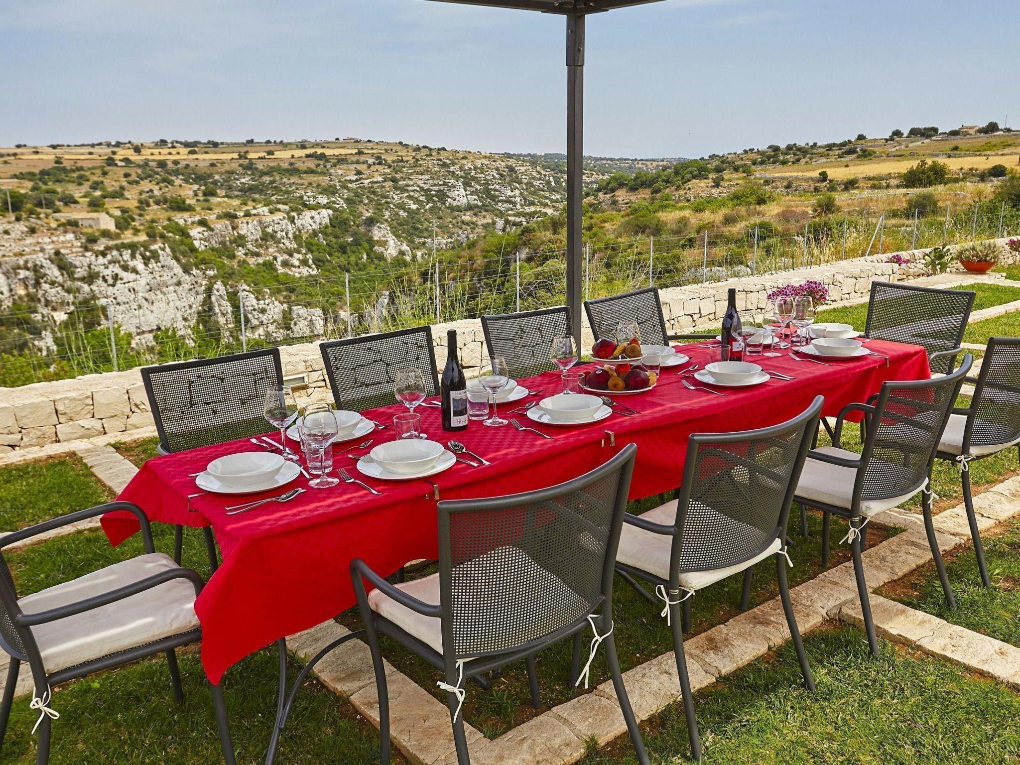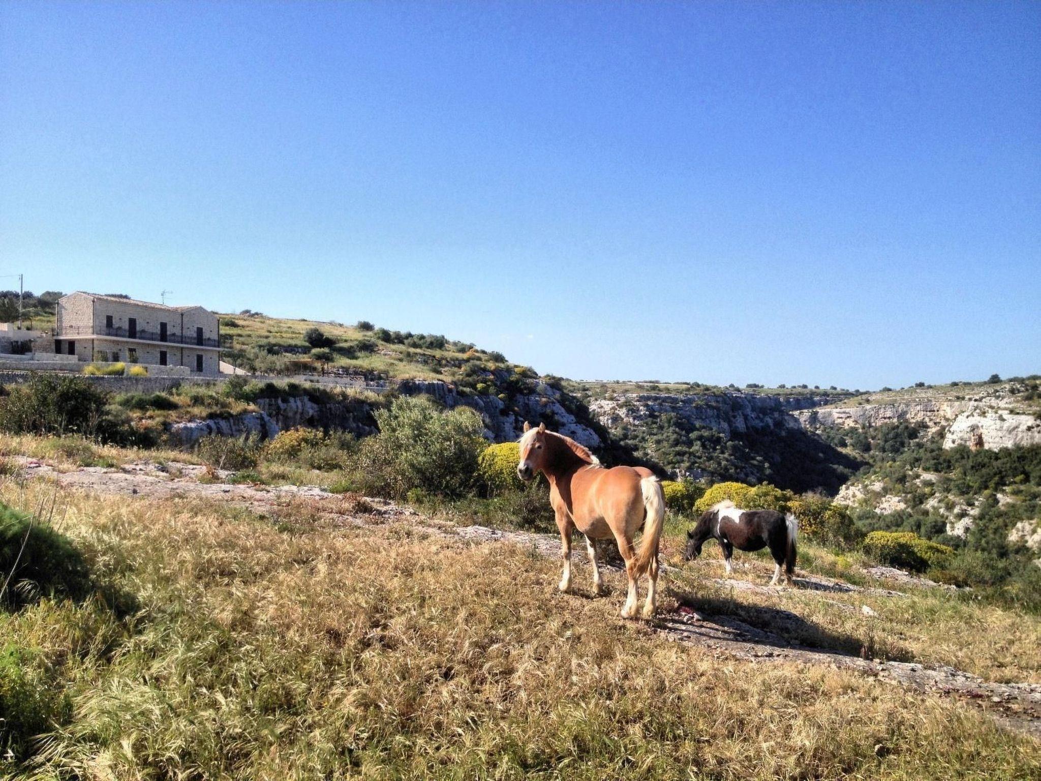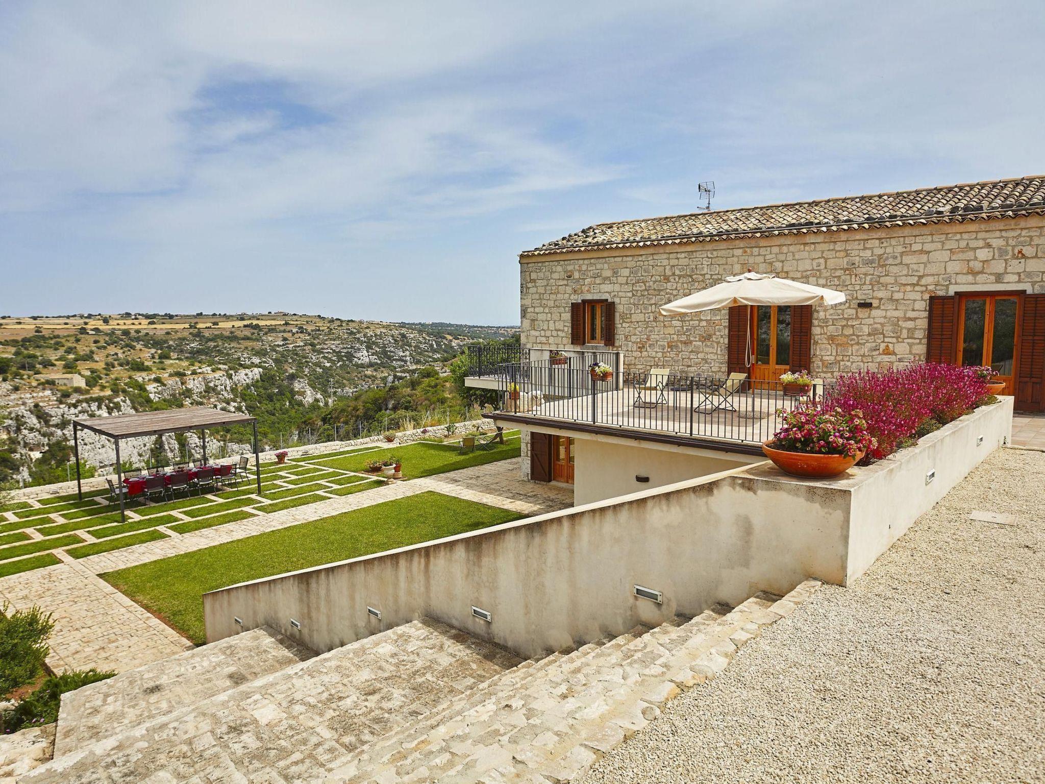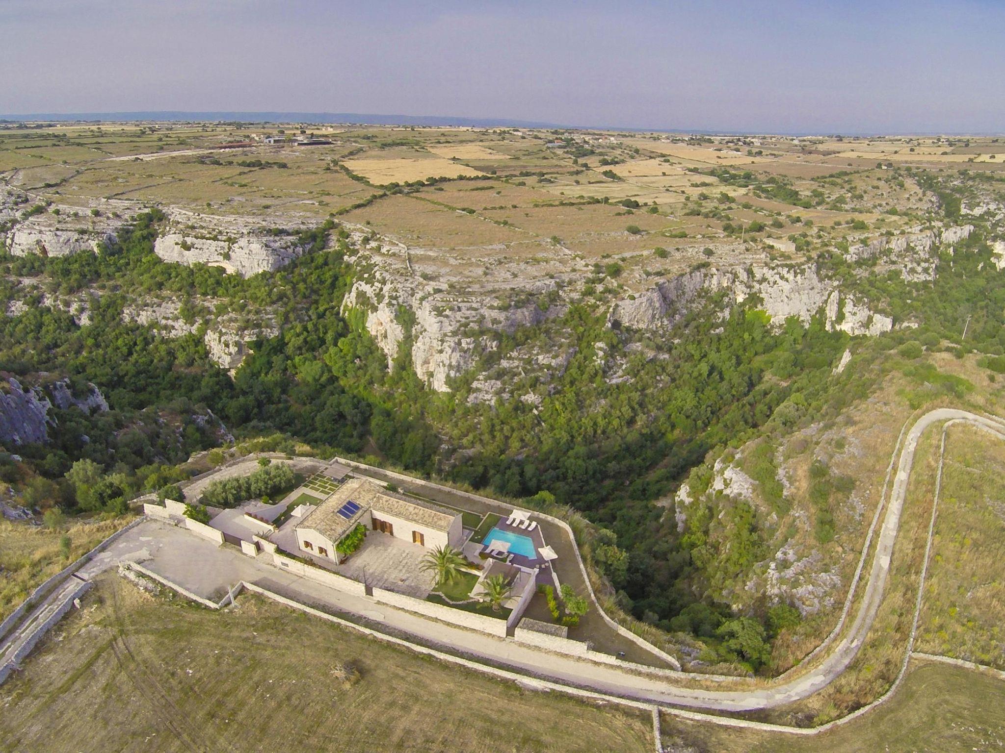 The villa is situated on a rocky outcrop overlooking the picturesque rock settlement of Castello, in an unusual and exclusive location. The house is located above the Cava d'Ispica gorge and thus offers a unique view of the 13 km long valley, which is home to numerous archaeological finds and important Mediterranean flora and fauna.