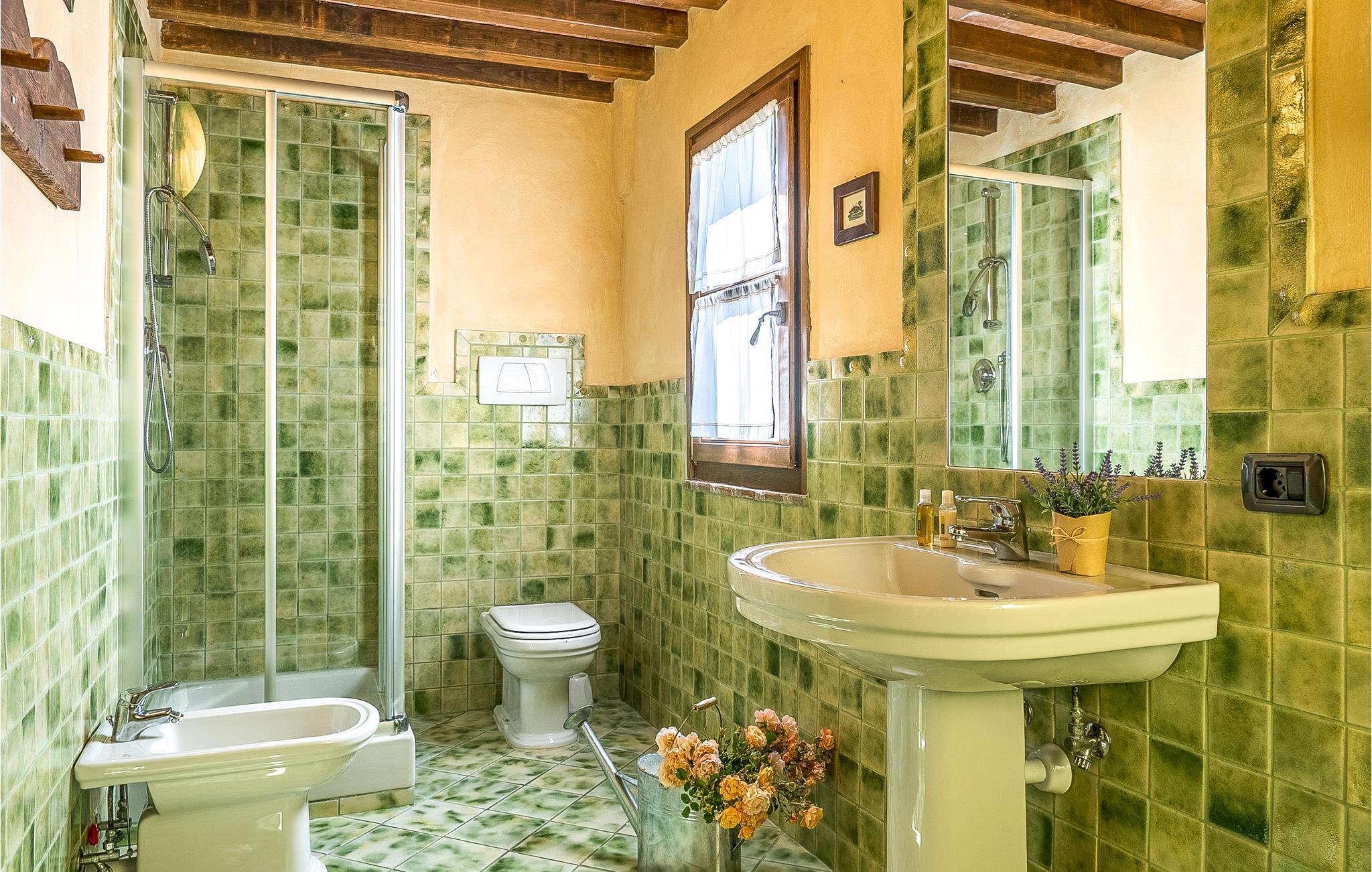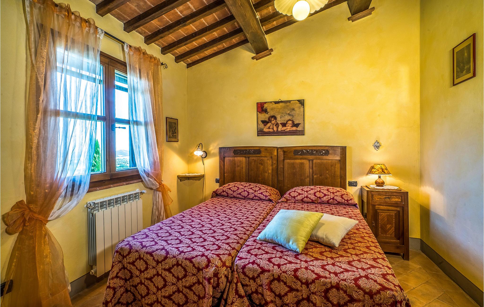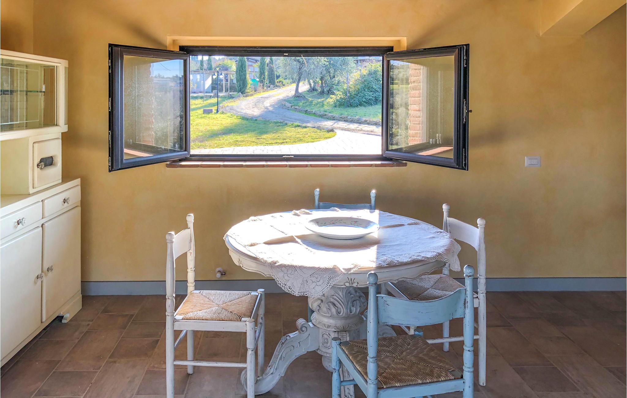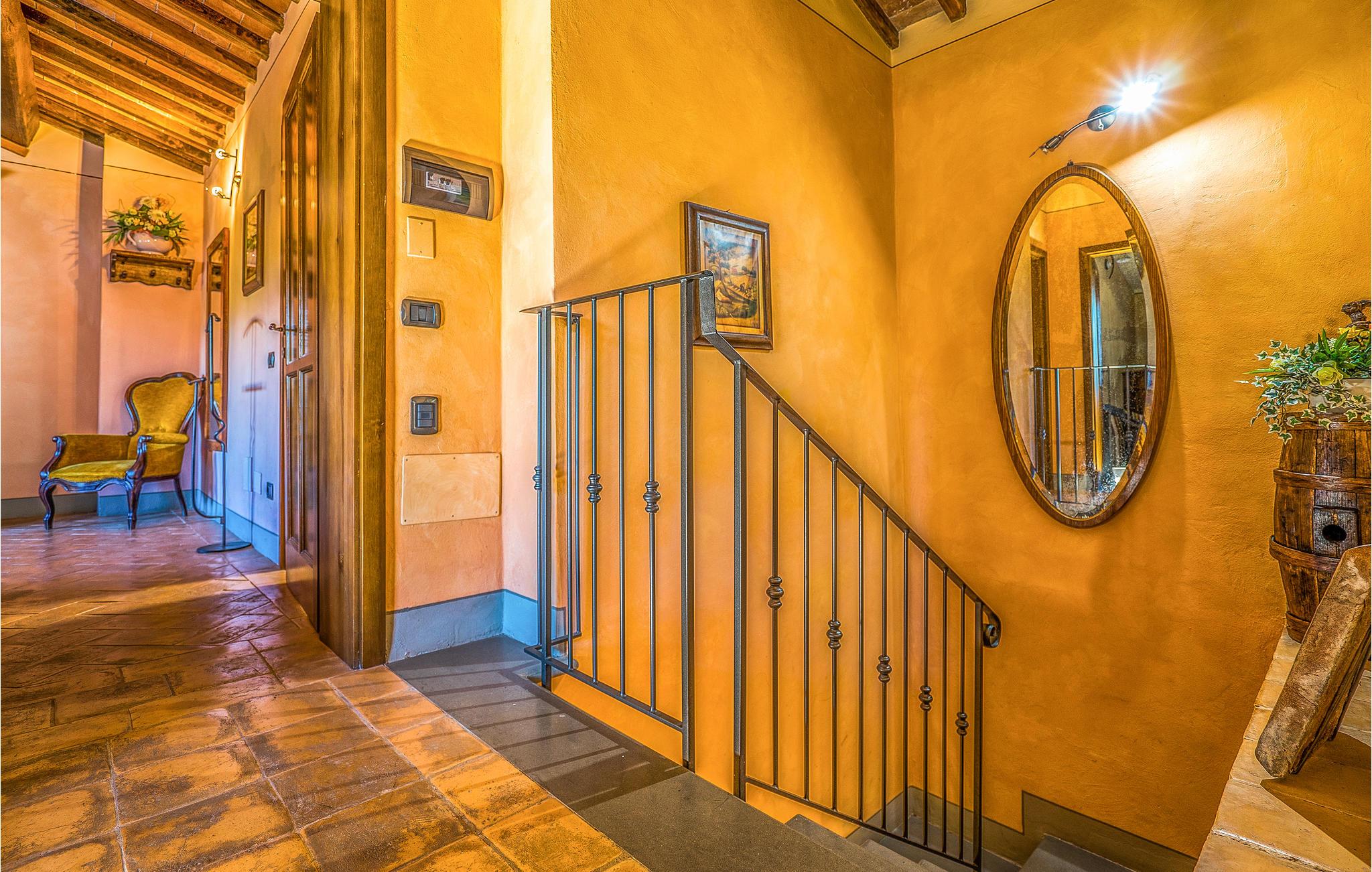Dette rummelige feriehus er omgivet af bølgende bakker, hvilket har en skøn, beroligende ffekt. Begynd jeres dage med en forfriskende svømmetur i den private pool omgivet af grønne haver og nyd derefter morgenmaden på den skyggefulde terrasse, hvorfra I har en flot udsigt over det smukke landskab. Feriehusets stilfulde interiør med rustikke træbjælkelofter og traditionelle toscanske møbler lægger op til at læne sig tilbage og slappe af. Brug det rustikke køkken til at fremtrylle regionale delikatesser og nyd jeres måltider ved den hyggelige spiseplads eller udendørs under den overdækkede pavillon.