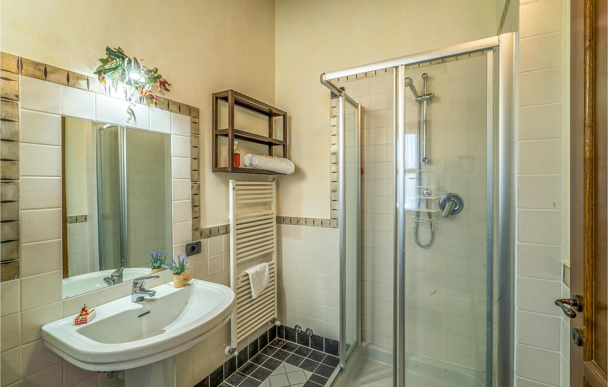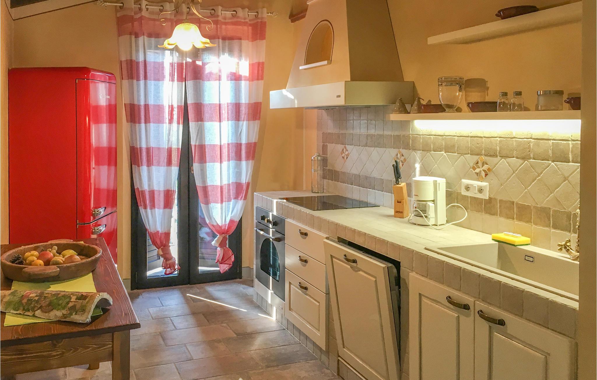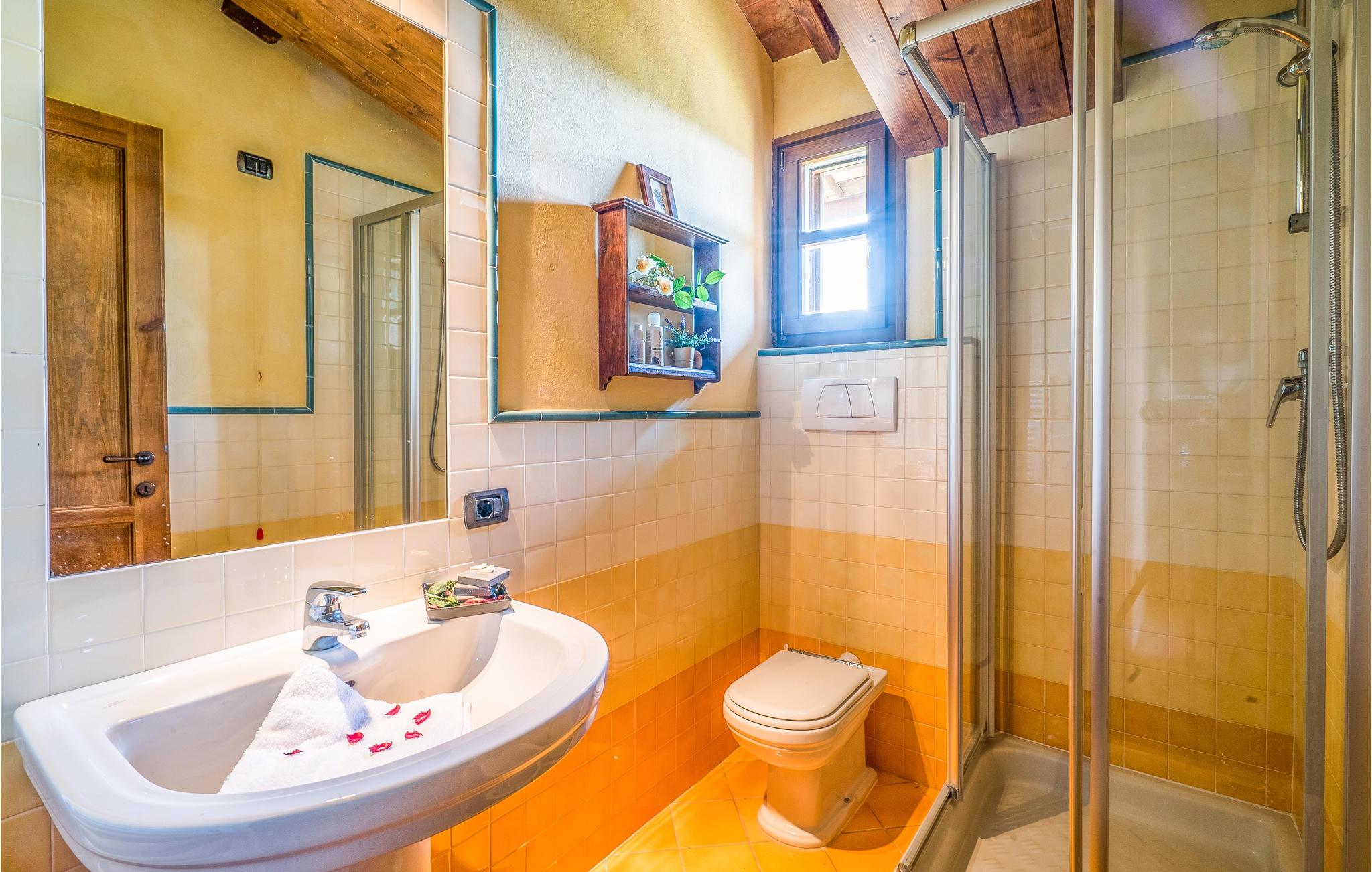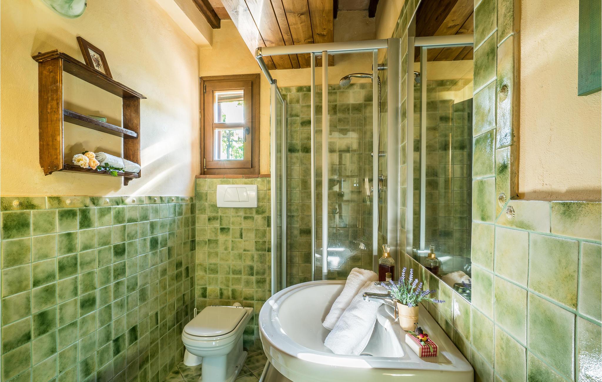 Dette rummelige feriehus er omgivet af bølgende bakker, hvilket har en skøn, beroligende ffekt. Begynd jeres dage med en forfriskende svømmetur i den private pool omgivet af grønne haver og nyd derefter morgenmaden på den skyggefulde terrasse, hvorfra I har en flot udsigt over det smukke landskab. Feriehusets stilfulde interiør med rustikke træbjælkelofter og traditionelle toscanske møbler lægger op til at læne sig tilbage og slappe af. Brug det rustikke køkken til at fremtrylle regionale delikatesser og nyd jeres måltider ved den hyggelige spiseplads eller udendørs under den overdækkede pavillon.