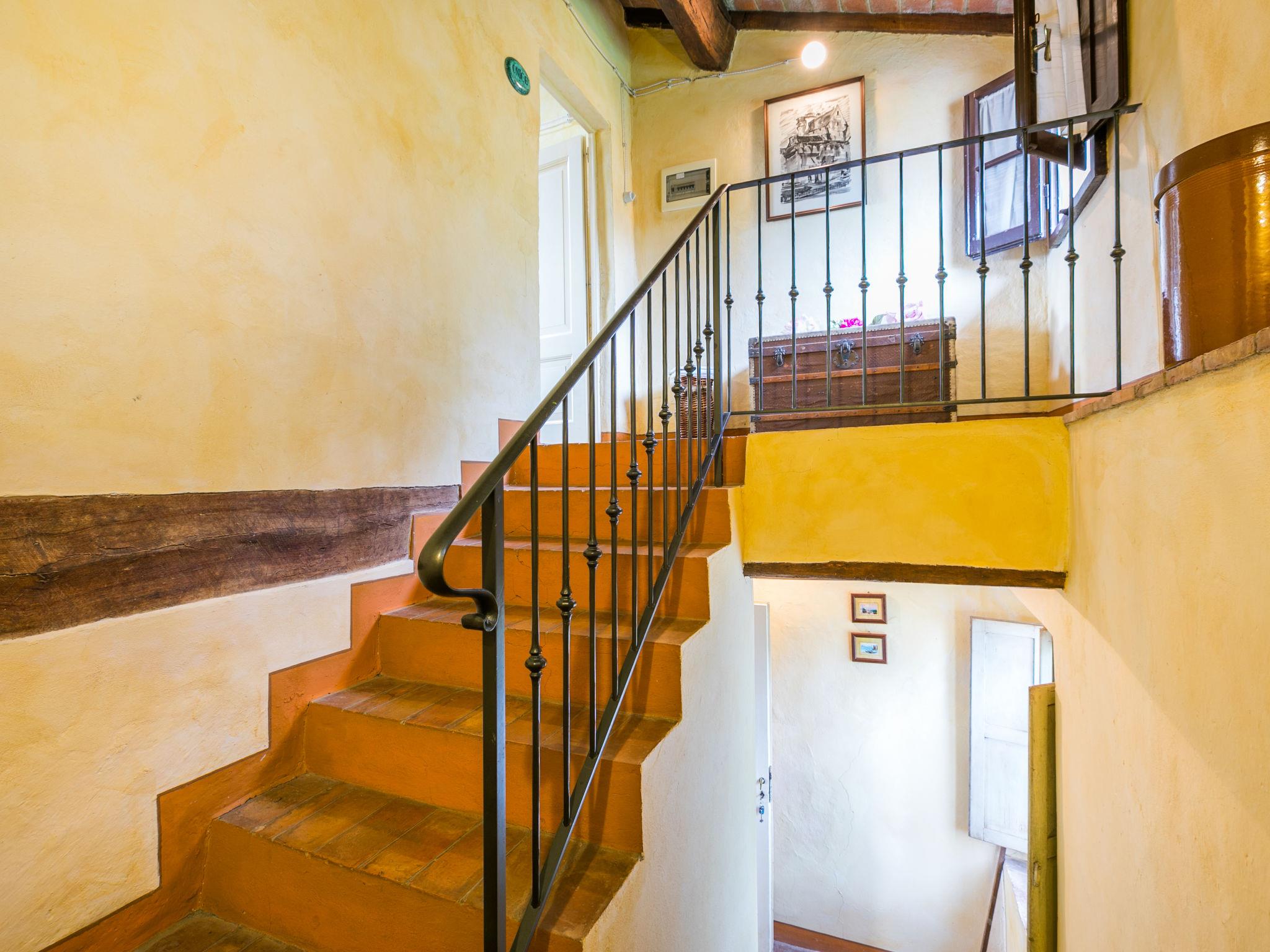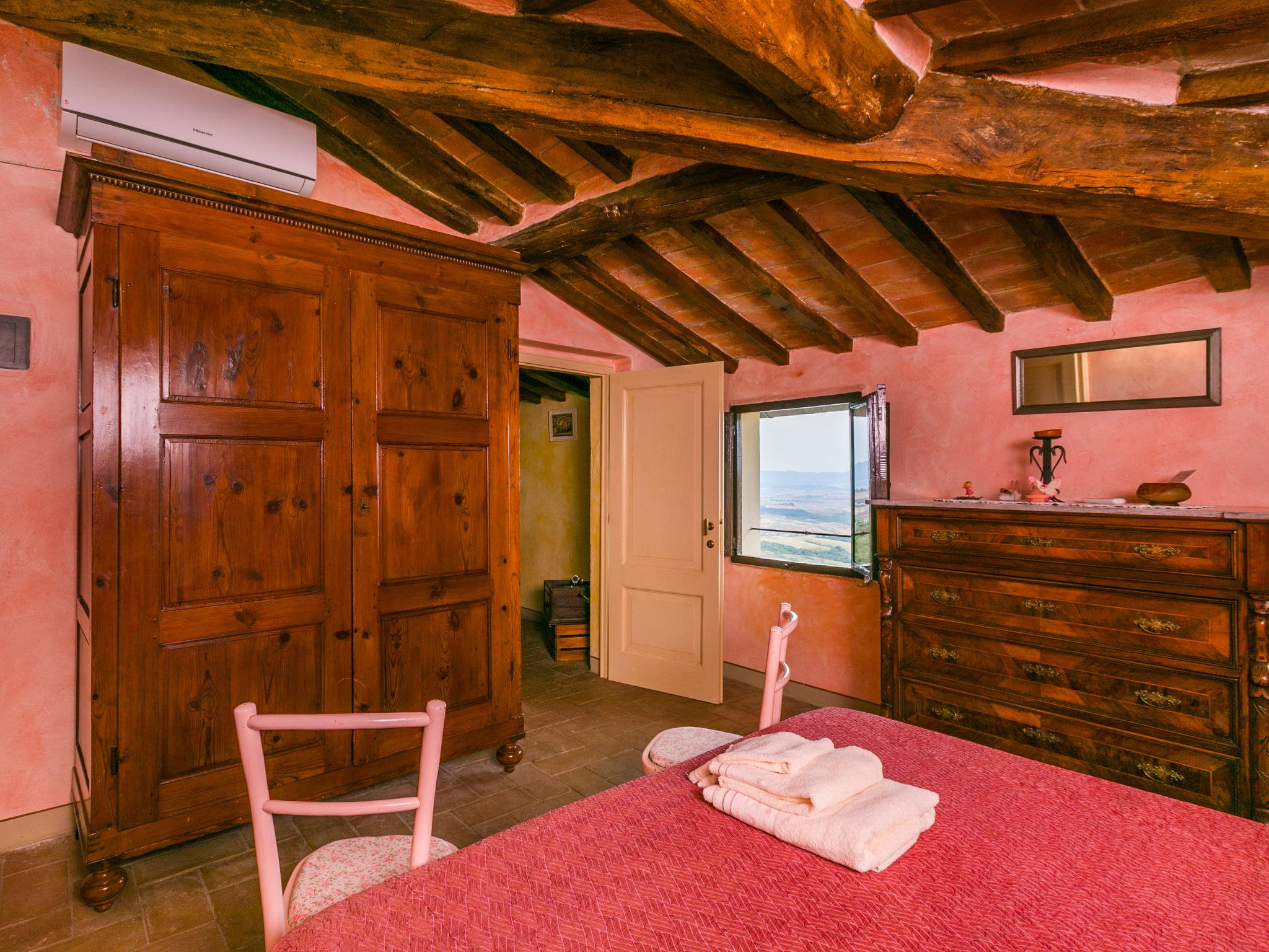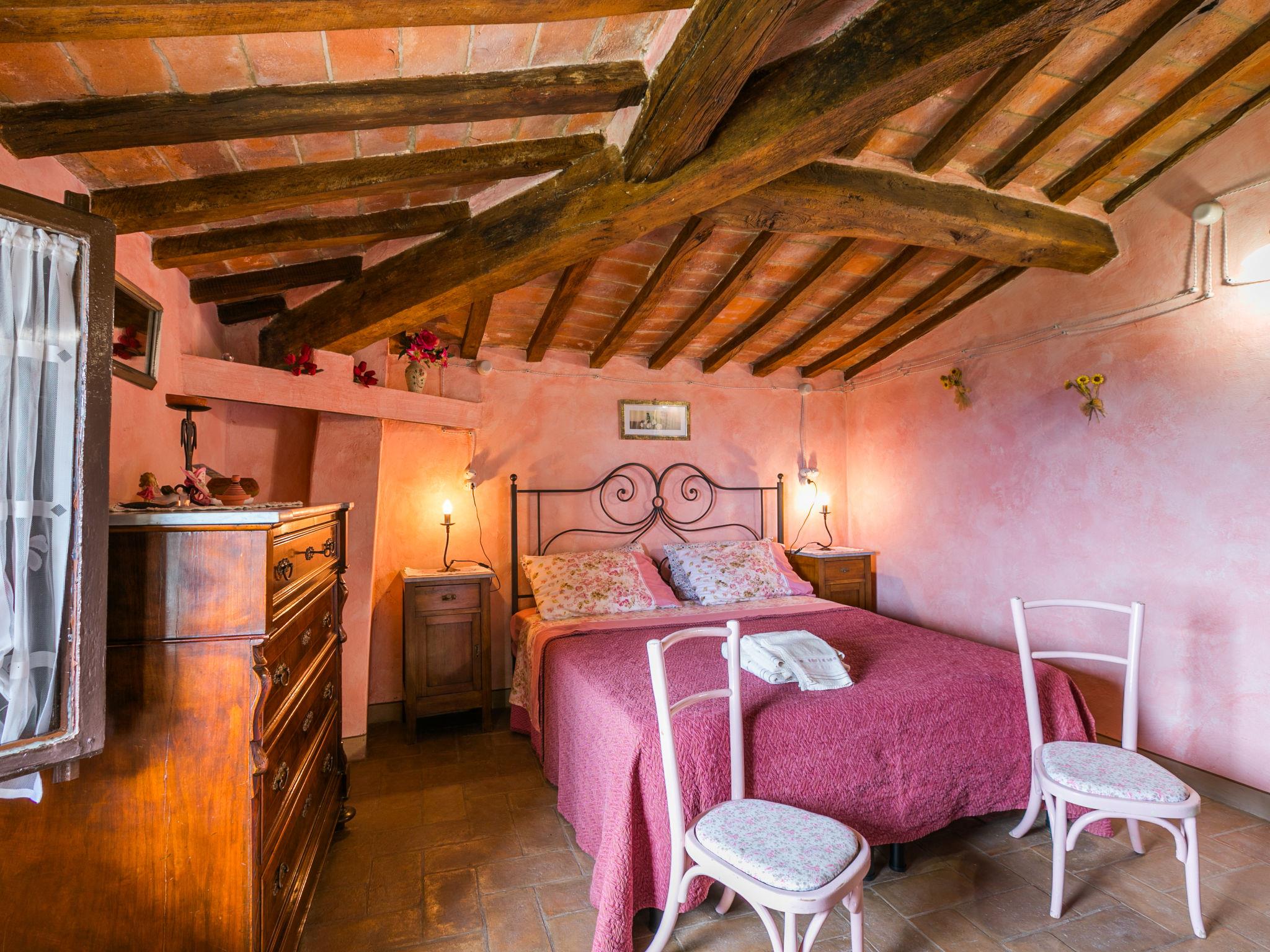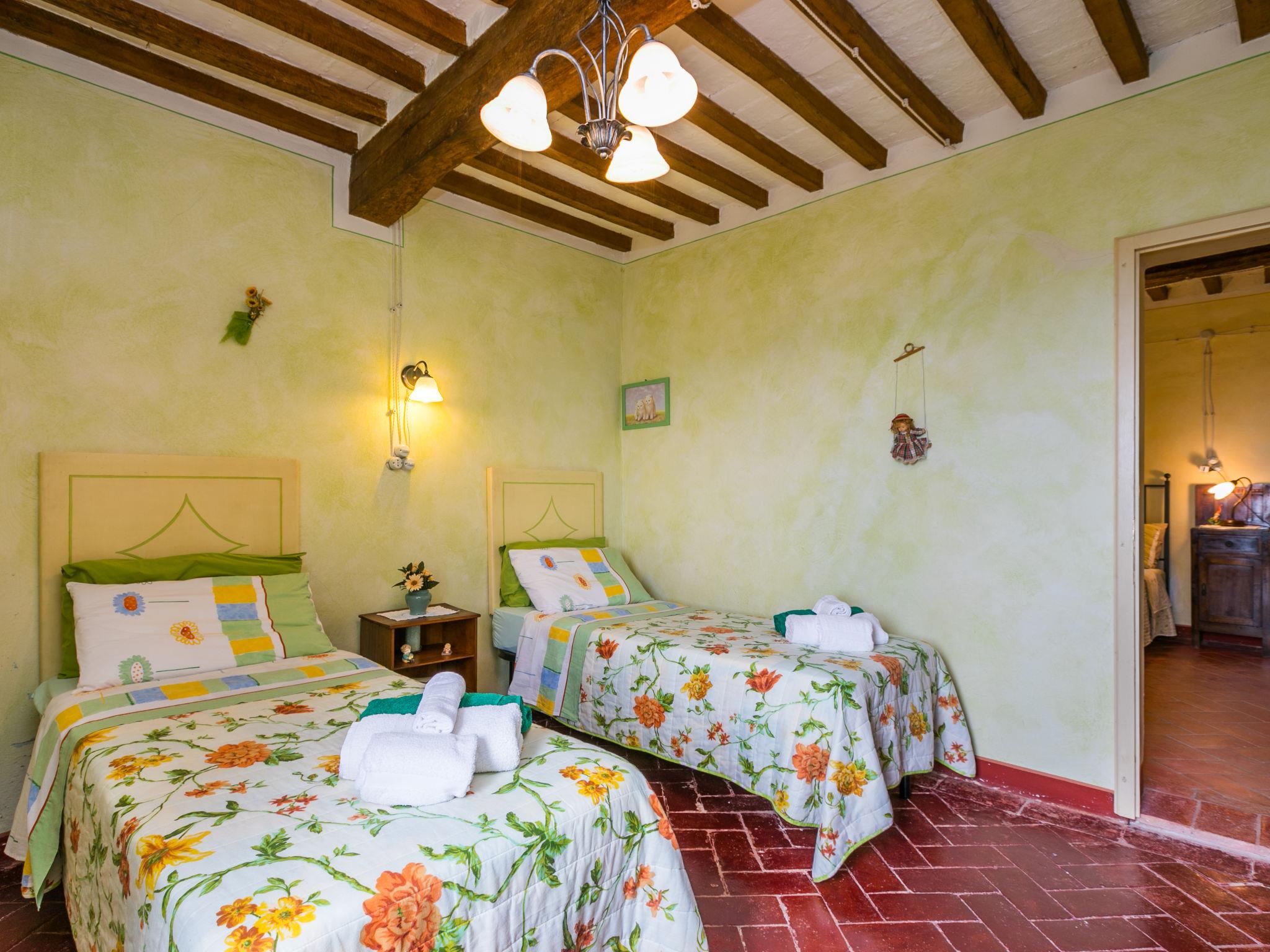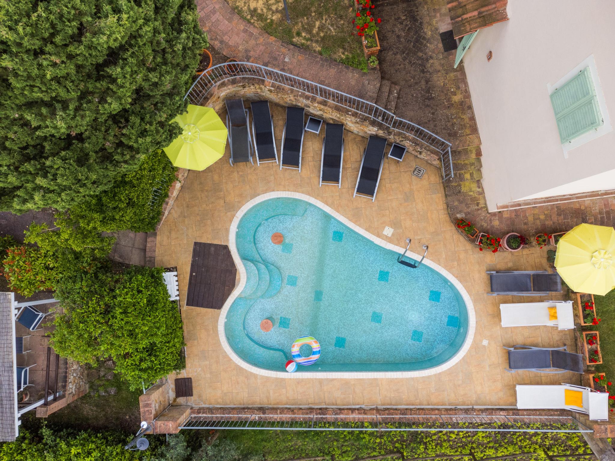 "Antica Pietra", 9-room farmhouse 210 m2 on 3 levels. Spacious, tasteful and cosy furnishings: living room with open-hearth fireplace (only for decoration), TV (flat screen), air conditioning. Exit to the garden, to the swimming pool. 1 room with 1 bed (80 cm), 1 double bed and air conditioning. Kitchen (oven, dishwasher, Gas stove, 4 gas rings, toaster, kettle, microwave, electric coffee machine) with dining table, open-hearth fireplace (only for decoration). Exit to the terrace, to the swimming pool. Shower/bidet/WC. Upper floor: 1 double bedroom with air conditioning. 1 room with 2 beds and air conditioning. Kitchen (oven, dishwasher, Gas stove, 4 gas rings, toaster, kettle, electric coffee machine) with dining table, TV (flat screen). Shower/WC. 2nd upper floor: 1 double bedroom with air conditioning. 1 room with 2 beds (80 cm), air conditioning. Kitchen (oven, dishwasher, Gas stove, 4 gas rings, toaster, kettle, electric coffee machine) with dining table and TV (flat screen), air conditioning. Shower/WC. Heating, air-conditioning. Natural stone floors. Comfortable furnishings in the country house style. 3 terraces covered, patio. Terrace furniture, barbecue, deck chairs, box-room. Very beautiful panoramic view of the countryside. Facilities: washing machine, iron, mosquito net, children's high chair, baby cot for up to 2 year olds, hair dryer. Internet (WiFi, free). Parking (roofed, 3 cars) at the house. Please note: non-smokers only. Maximum 1 pet/ dog allowed. Private entrance, smoke alarm, fire extinguisher. The pool mentioned in the description is for private use. IT048027A1A4JQXKH3