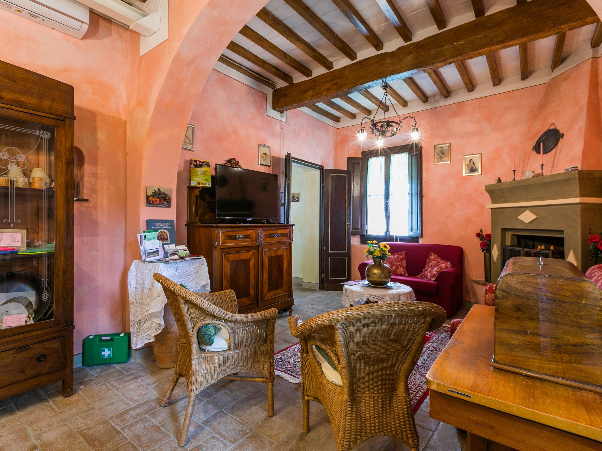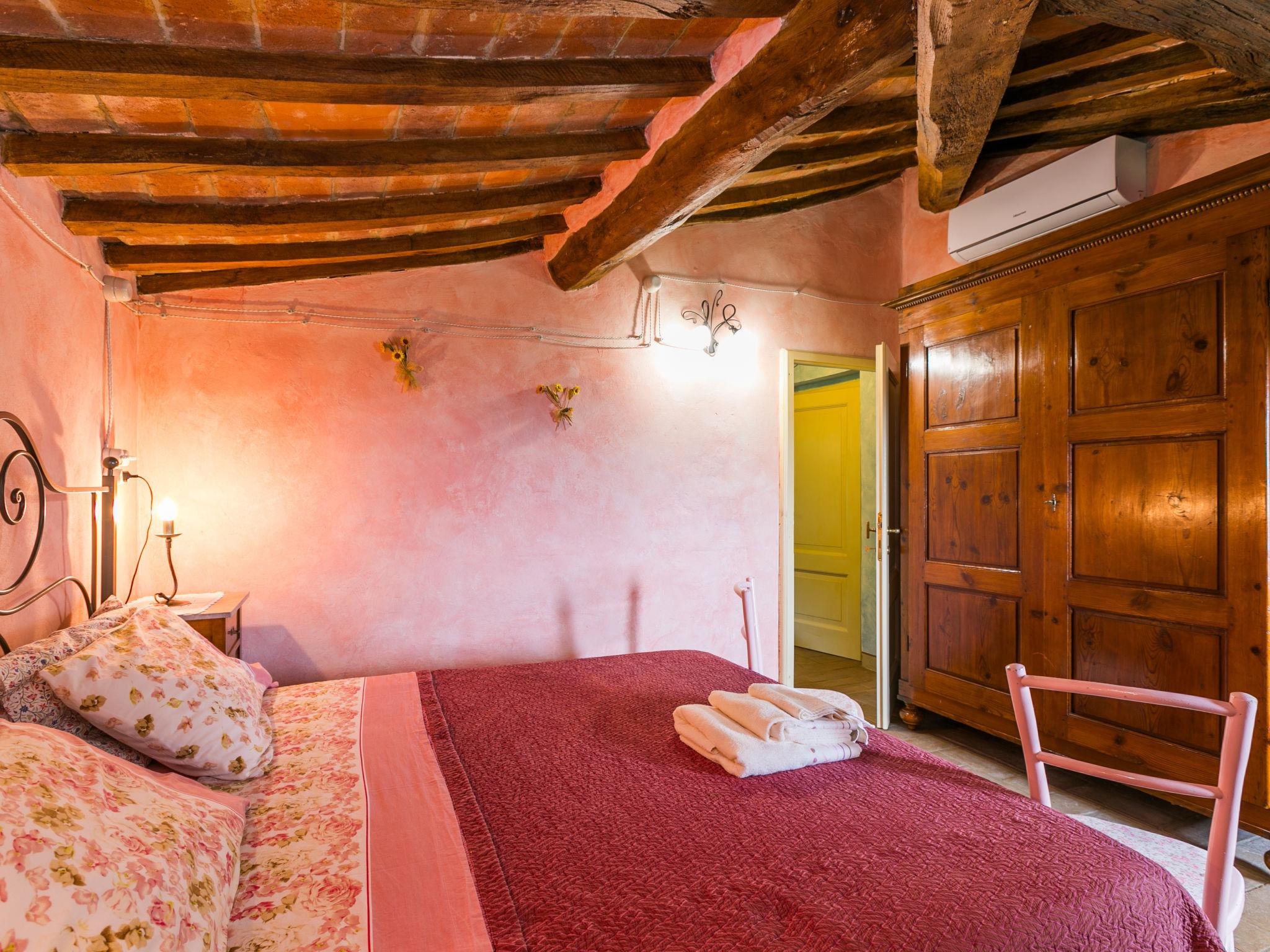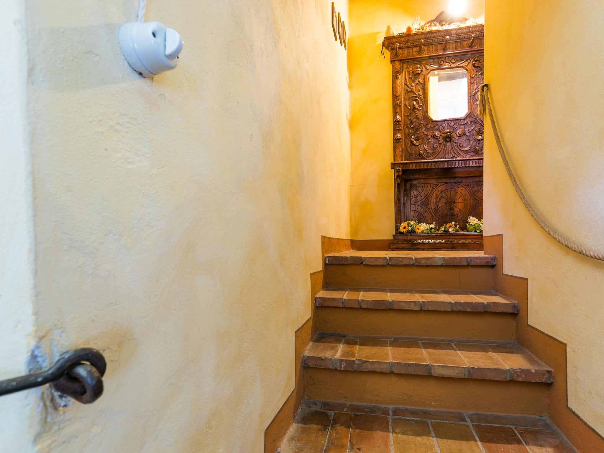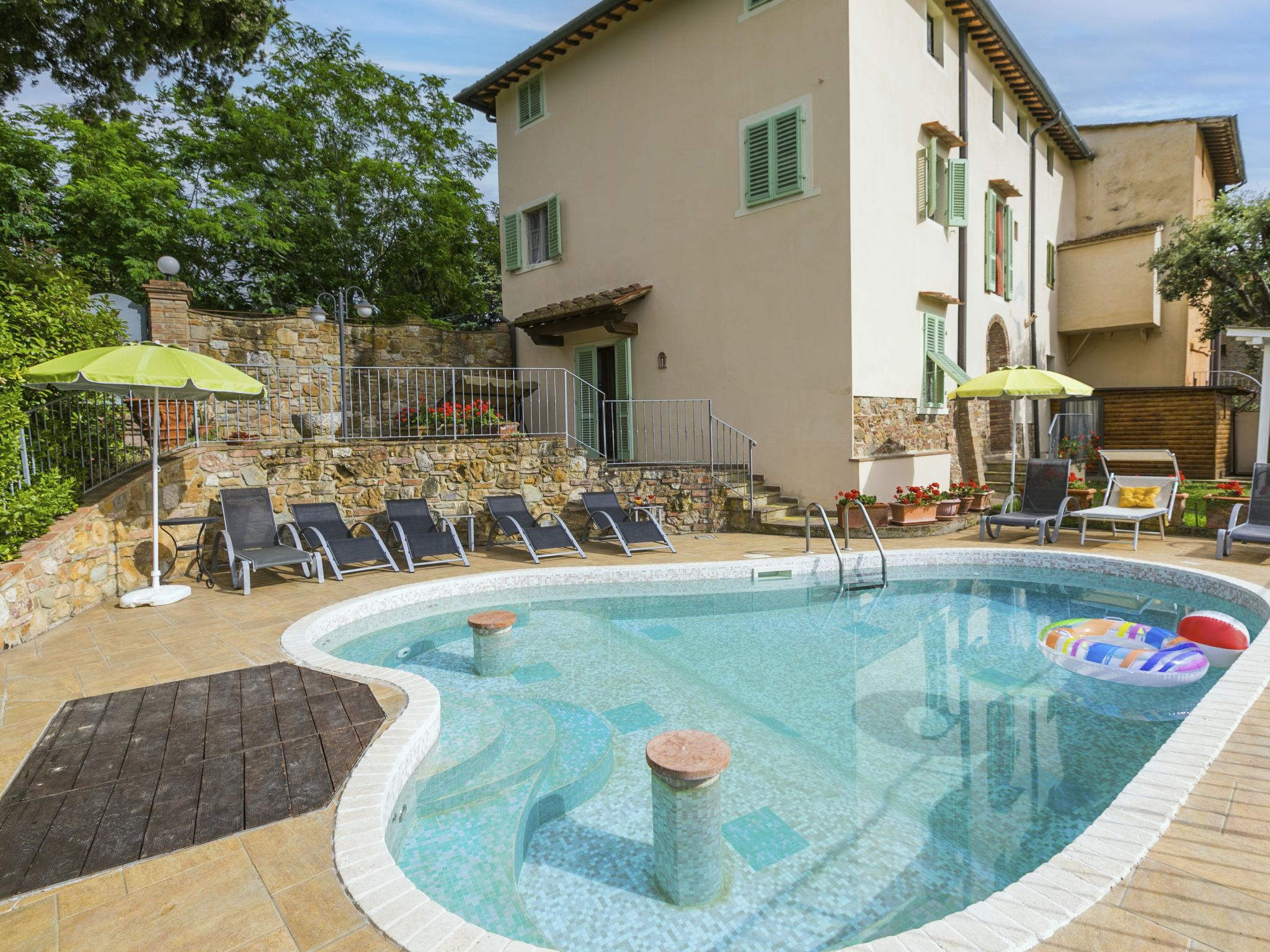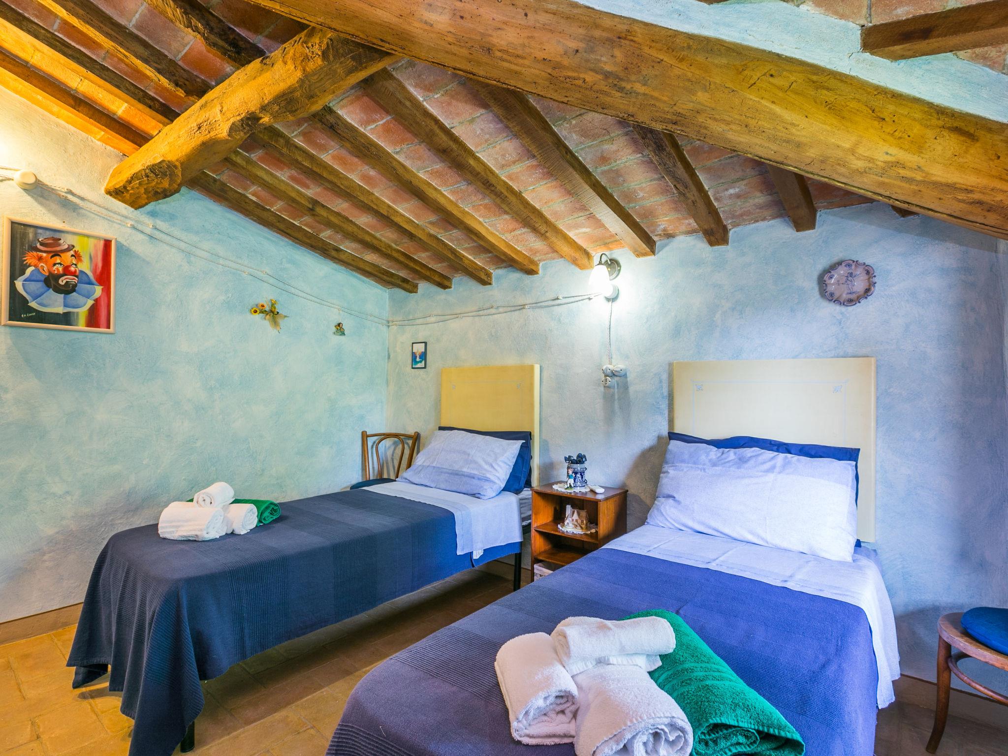 "Antica Pietra", 9-room farmhouse 210 m2 on 3 levels. Spacious, tasteful and cosy furnishings: living room with open-hearth fireplace (only for decoration), TV (flat screen), air conditioning. Exit to the garden, to the swimming pool. 1 room with 1 bed (80 cm), 1 double bed and air conditioning. Kitchen (oven, dishwasher, Gas stove, 4 gas rings, toaster, kettle, microwave, electric coffee machine) with dining table, open-hearth fireplace (only for decoration). Exit to the terrace, to the swimming pool. Shower/bidet/WC. Upper floor: 1 double bedroom with air conditioning. 1 room with 2 beds and air conditioning. Kitchen (oven, dishwasher, Gas stove, 4 gas rings, toaster, kettle, electric coffee machine) with dining table, TV (flat screen). Shower/WC. 2nd upper floor: 1 double bedroom with air conditioning. 1 room with 2 beds (80 cm), air conditioning. Kitchen (oven, dishwasher, Gas stove, 4 gas rings, toaster, kettle, electric coffee machine) with dining table and TV (flat screen), air conditioning. Shower/WC. Heating, air-conditioning. Natural stone floors. Comfortable furnishings in the country house style. 3 terraces covered, patio. Terrace furniture, barbecue, deck chairs, box-room. Very beautiful panoramic view of the countryside. Facilities: washing machine, iron, mosquito net, children's high chair, baby cot for up to 2 year olds, hair dryer. Internet (WiFi, free). Parking (roofed, 3 cars) at the house. Please note: non-smokers only. Maximum 1 pet/ dog allowed. Private entrance, smoke alarm, fire extinguisher. The pool mentioned in the description is for private use. IT048027A1A4JQXKH3