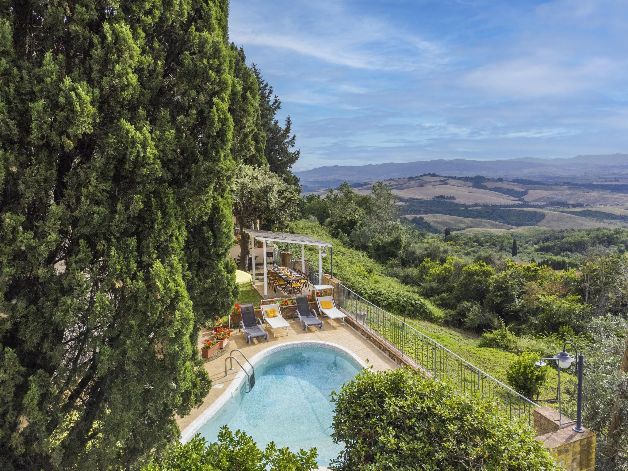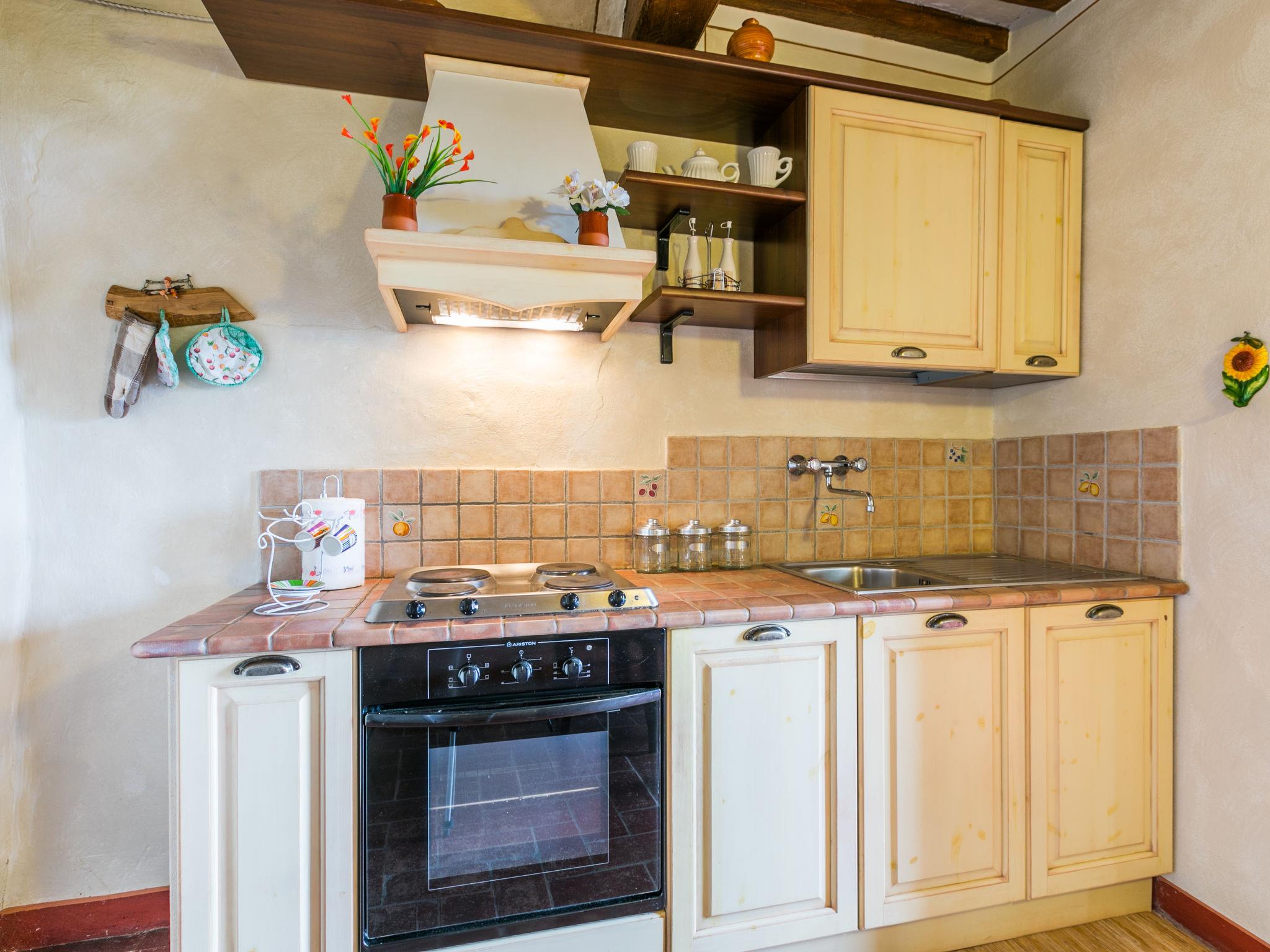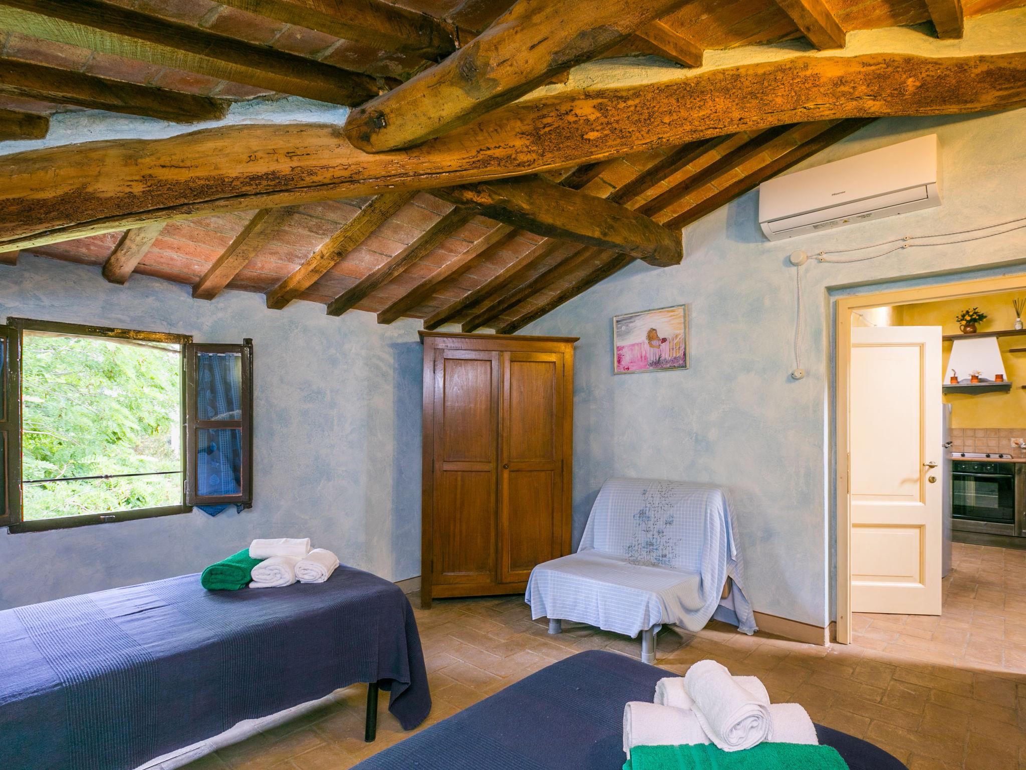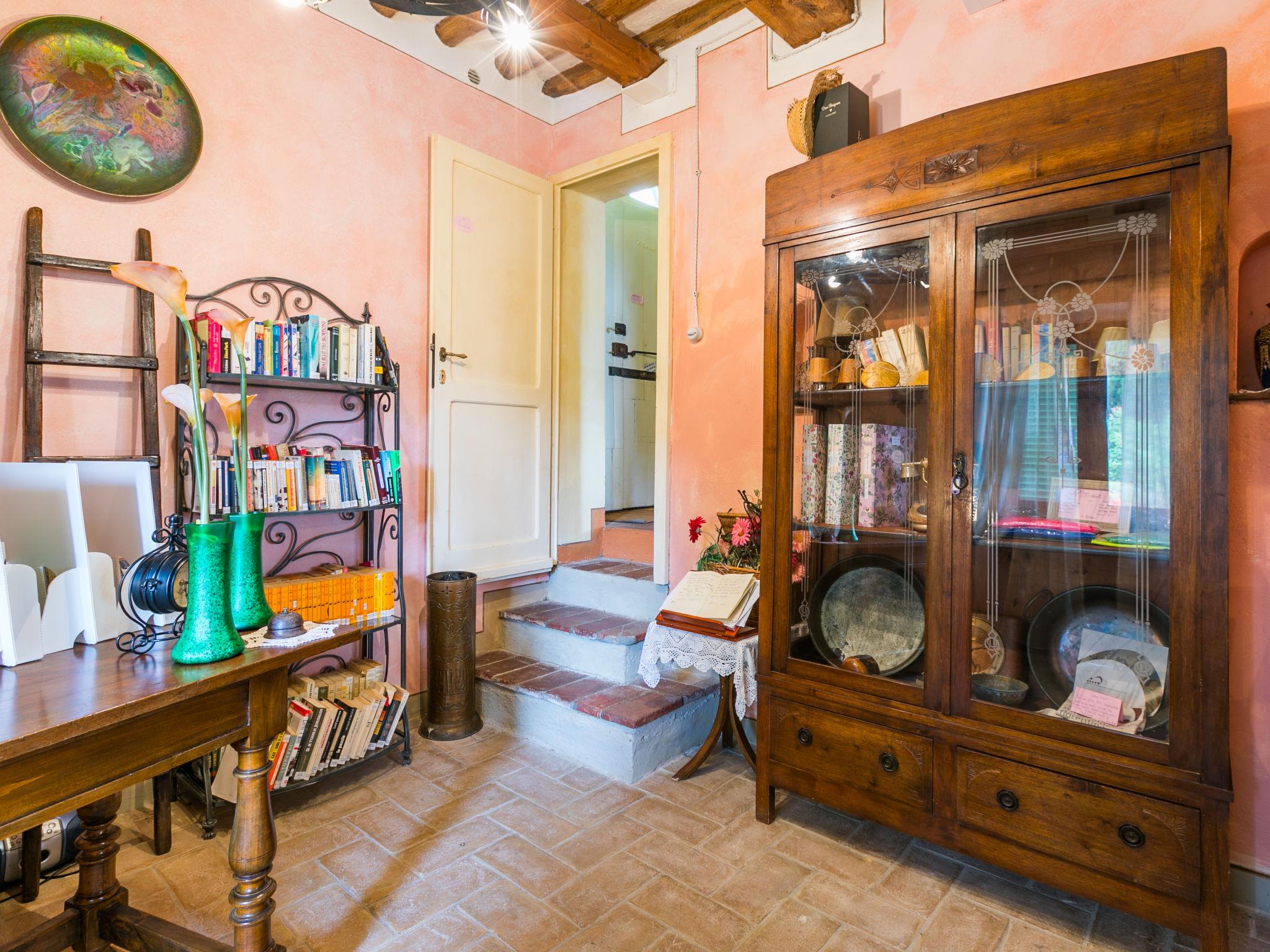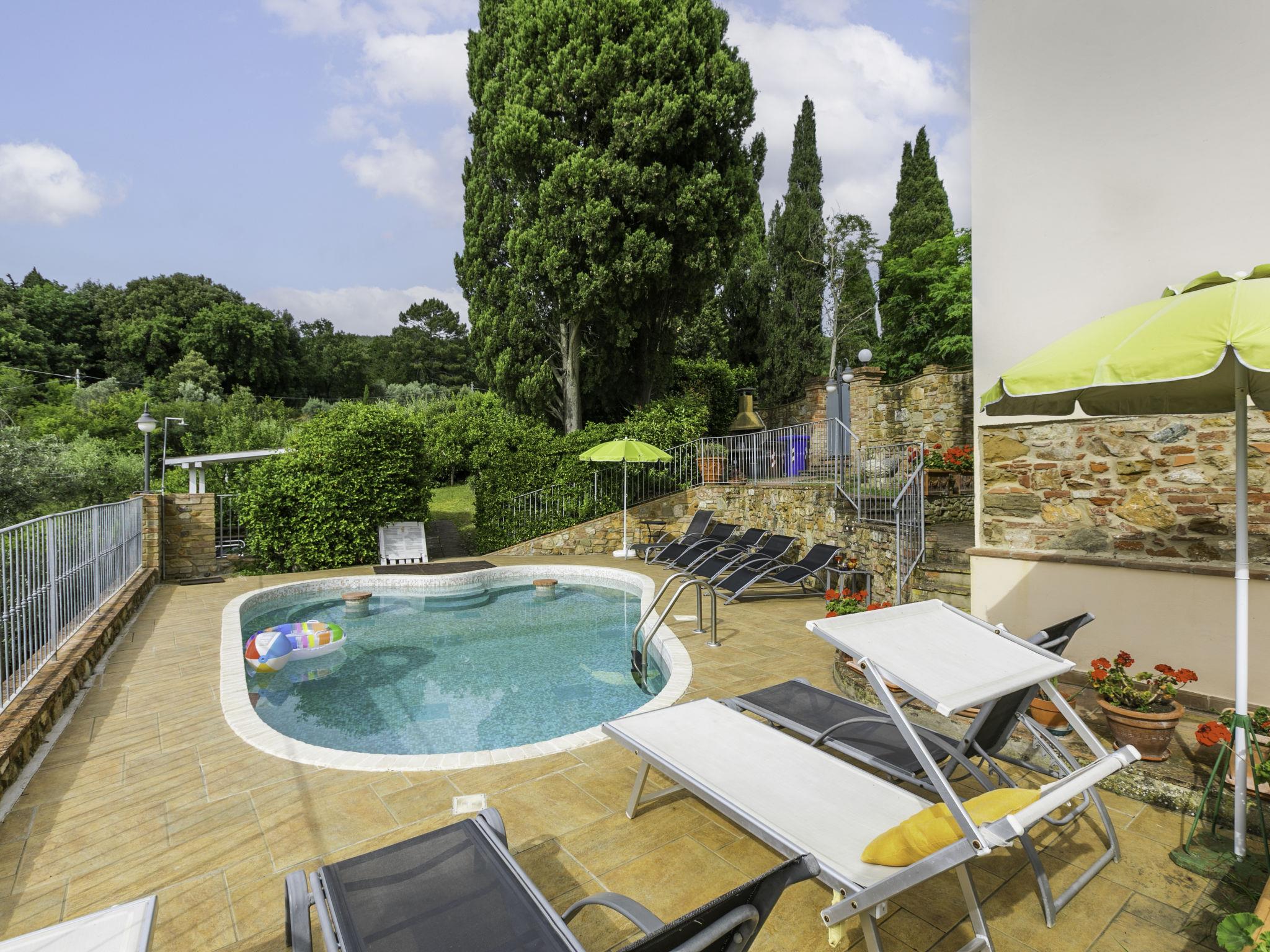 "Antica Pietra", 9-room farmhouse 210 m2 on 3 levels. Spacious, tasteful and cosy furnishings: living room with open-hearth fireplace (only for decoration), TV (flat screen), air conditioning. Exit to the garden, to the swimming pool. 1 room with 1 bed (80 cm), 1 double bed and air conditioning. Kitchen (oven, dishwasher, Gas stove, 4 gas rings, toaster, kettle, microwave, electric coffee machine) with dining table, open-hearth fireplace (only for decoration). Exit to the terrace, to the swimming pool. Shower/bidet/WC. Upper floor: 1 double bedroom with air conditioning. 1 room with 2 beds and air conditioning. Kitchen (oven, dishwasher, Gas stove, 4 gas rings, toaster, kettle, electric coffee machine) with dining table, TV (flat screen). Shower/WC. 2nd upper floor: 1 double bedroom with air conditioning. 1 room with 2 beds (80 cm), air conditioning. Kitchen (oven, dishwasher, Gas stove, 4 gas rings, toaster, kettle, electric coffee machine) with dining table and TV (flat screen), air conditioning. Shower/WC. Heating, air-conditioning. Natural stone floors. Comfortable furnishings in the country house style. 3 terraces covered, patio. Terrace furniture, barbecue, deck chairs, box-room. Very beautiful panoramic view of the countryside. Facilities: washing machine, iron, mosquito net, children's high chair, baby cot for up to 2 year olds, hair dryer. Internet (WiFi, free). Parking (roofed, 3 cars) at the house. Please note: non-smokers only. Maximum 1 pet/ dog allowed. Private entrance, smoke alarm, fire extinguisher. The pool mentioned in the description is for private use. IT048027A1A4JQXKH3