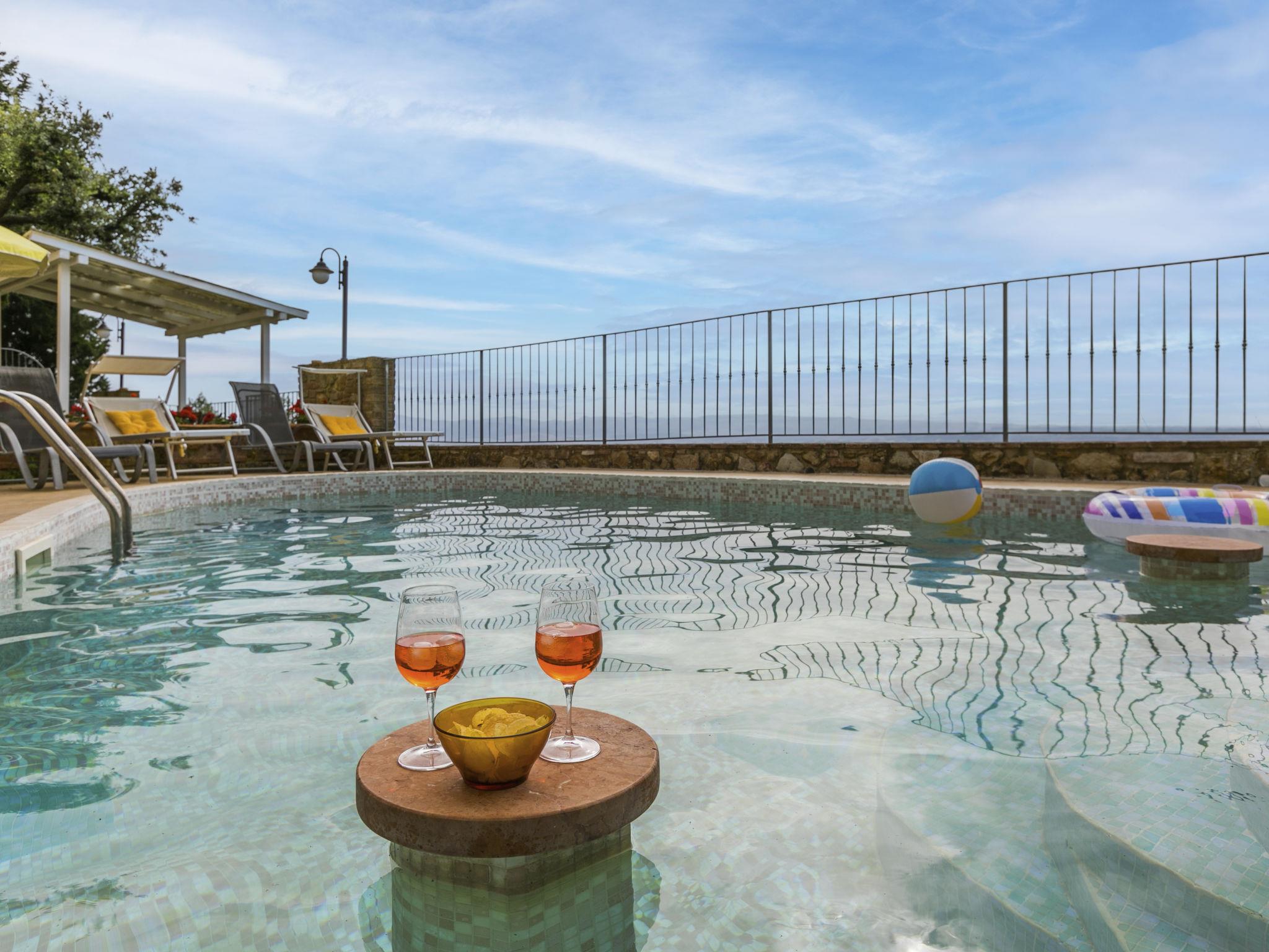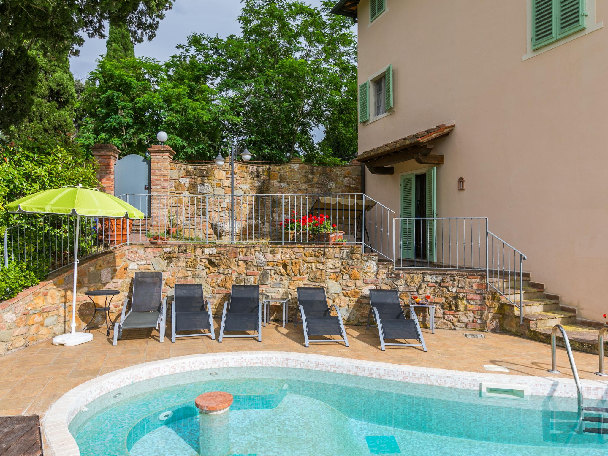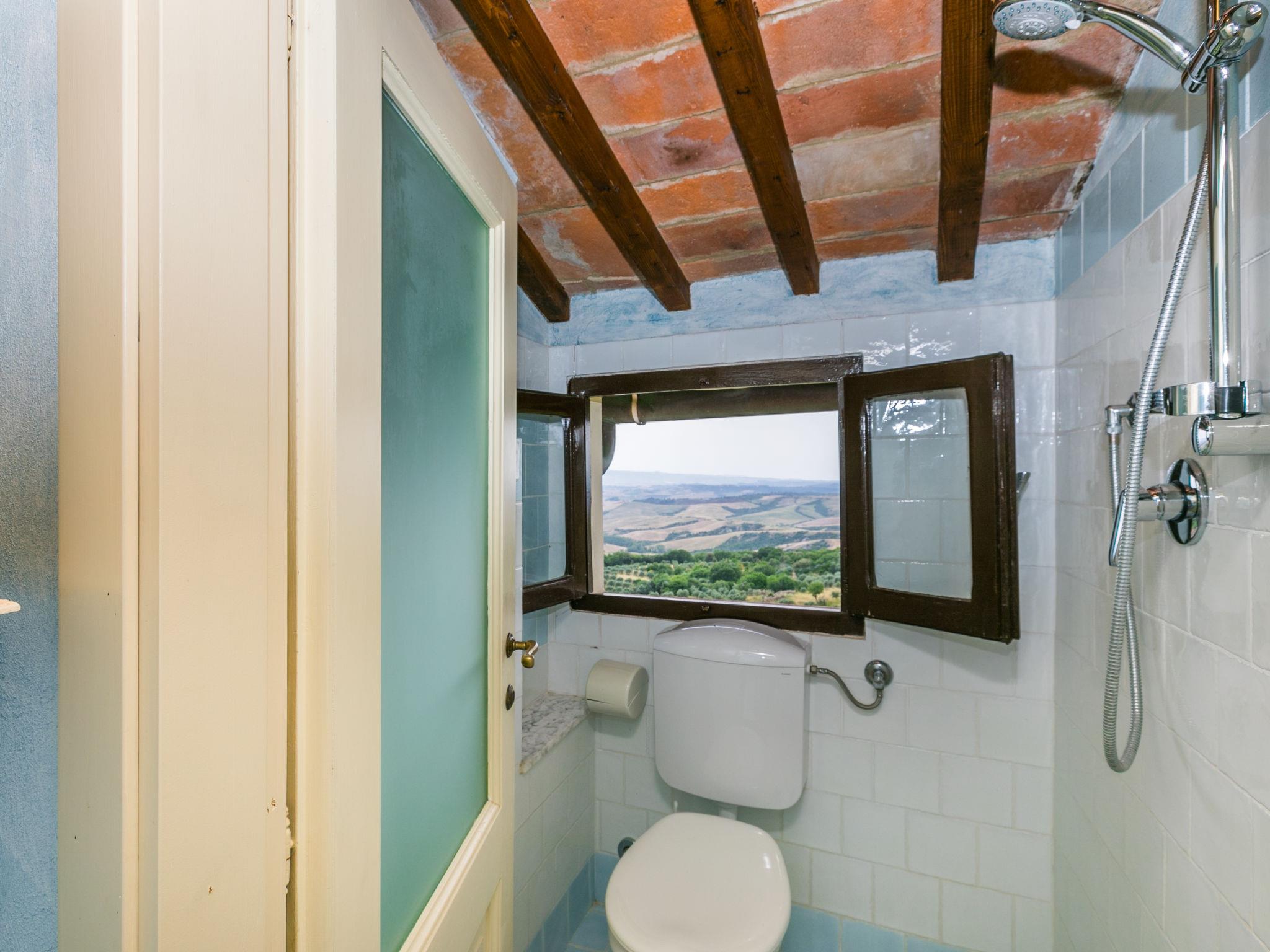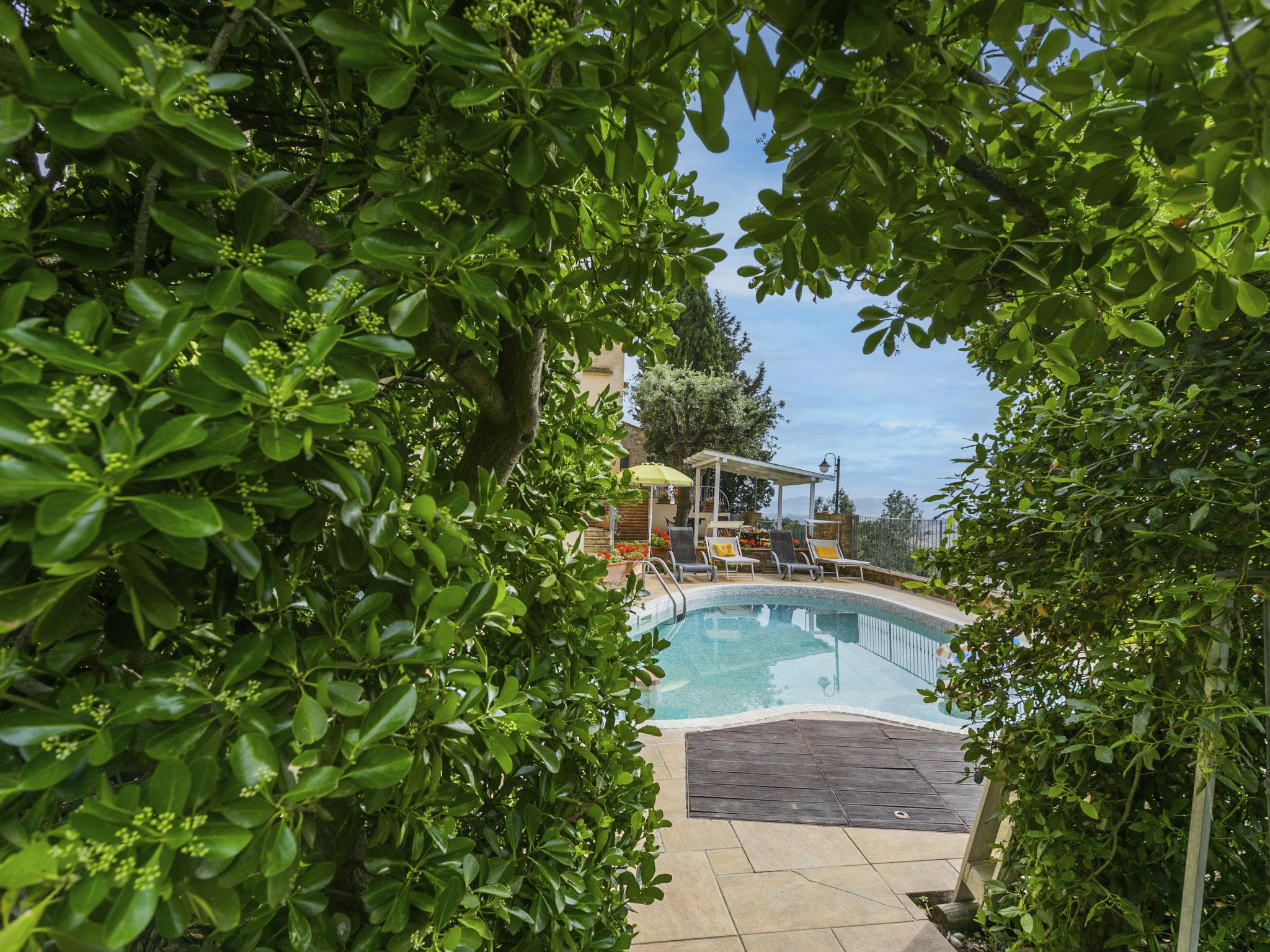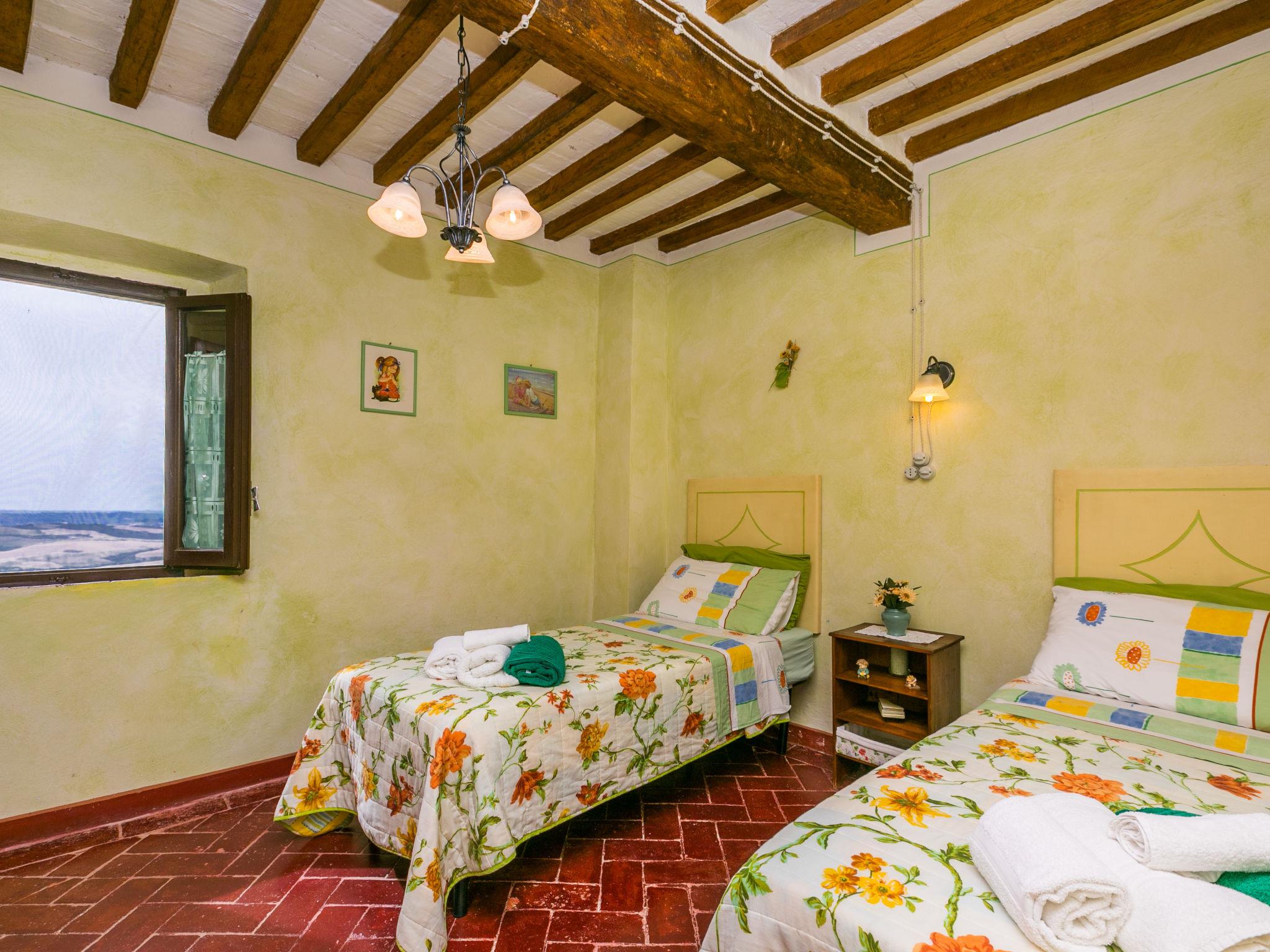 "Antica Pietra", 9-room farmhouse 210 m2 on 3 levels. Spacious, tasteful and cosy furnishings: living room with open-hearth fireplace (only for decoration), TV (flat screen), air conditioning. Exit to the garden, to the swimming pool. 1 room with 1 bed (80 cm), 1 double bed and air conditioning. Kitchen (oven, dishwasher, Gas stove, 4 gas rings, toaster, kettle, microwave, electric coffee machine) with dining table, open-hearth fireplace (only for decoration). Exit to the terrace, to the swimming pool. Shower/bidet/WC. Upper floor: 1 double bedroom with air conditioning. 1 room with 2 beds and air conditioning. Kitchen (oven, dishwasher, Gas stove, 4 gas rings, toaster, kettle, electric coffee machine) with dining table, TV (flat screen). Shower/WC. 2nd upper floor: 1 double bedroom with air conditioning. 1 room with 2 beds (80 cm), air conditioning. Kitchen (oven, dishwasher, Gas stove, 4 gas rings, toaster, kettle, electric coffee machine) with dining table and TV (flat screen), air conditioning. Shower/WC. Heating, air-conditioning. Natural stone floors. Comfortable furnishings in the country house style. 3 terraces covered, patio. Terrace furniture, barbecue, deck chairs, box-room. Very beautiful panoramic view of the countryside. Facilities: washing machine, iron, mosquito net, children's high chair, baby cot for up to 2 year olds, hair dryer. Internet (WiFi, free). Parking (roofed, 3 cars) at the house. Please note: non-smokers only. Maximum 1 pet/ dog allowed. Private entrance, smoke alarm, fire extinguisher. The pool mentioned in the description is for private use. IT048027A1A4JQXKH3