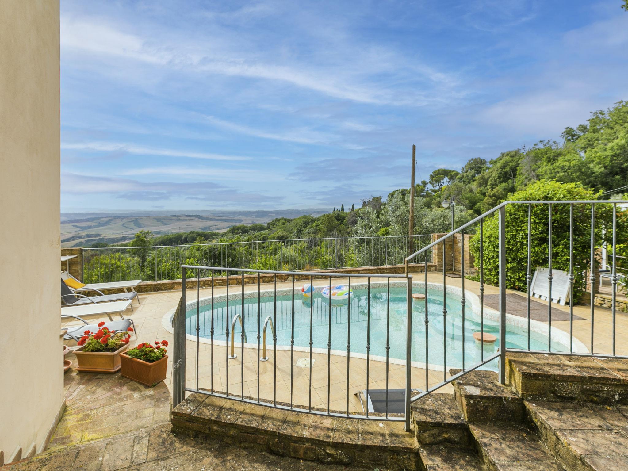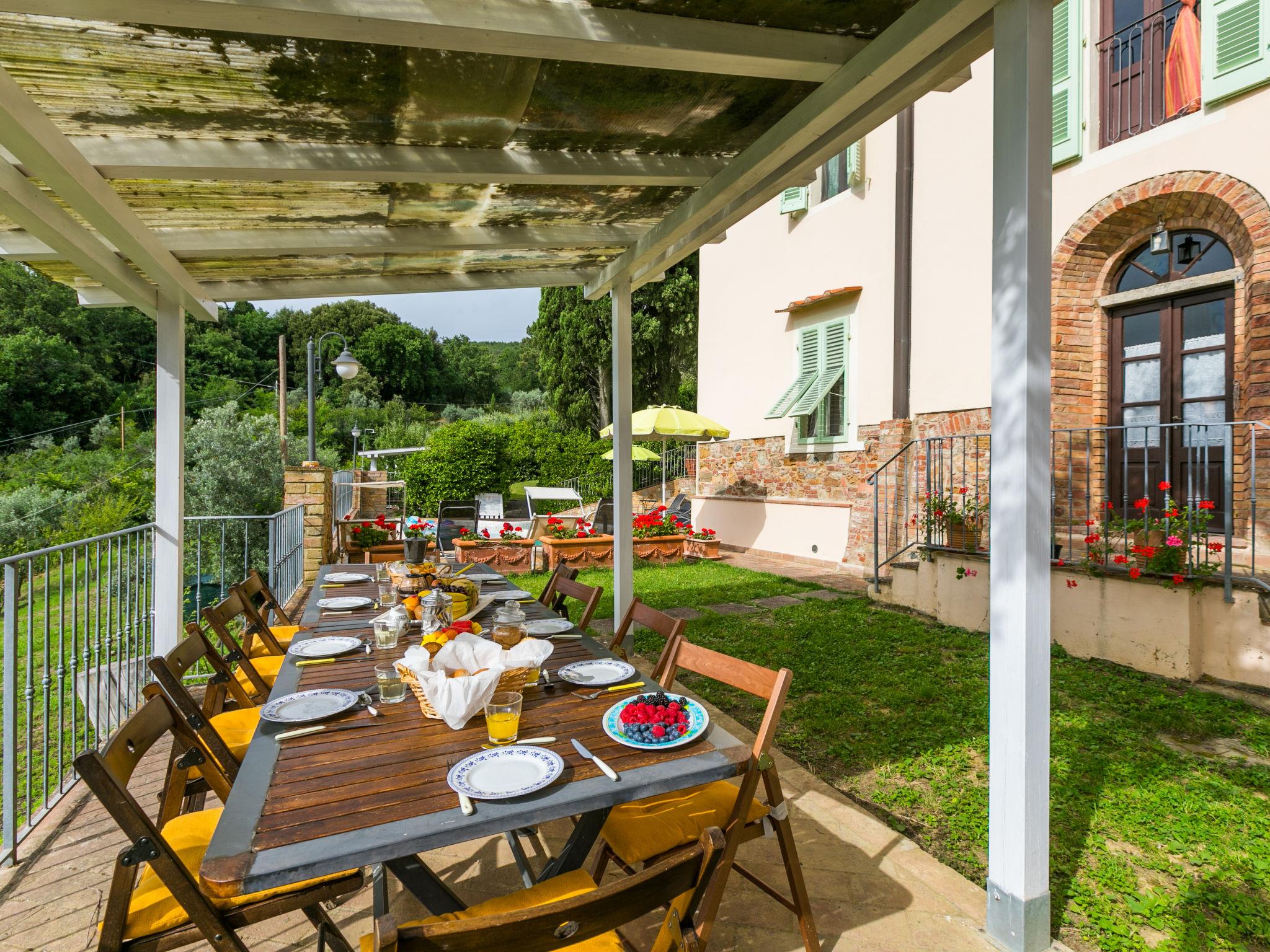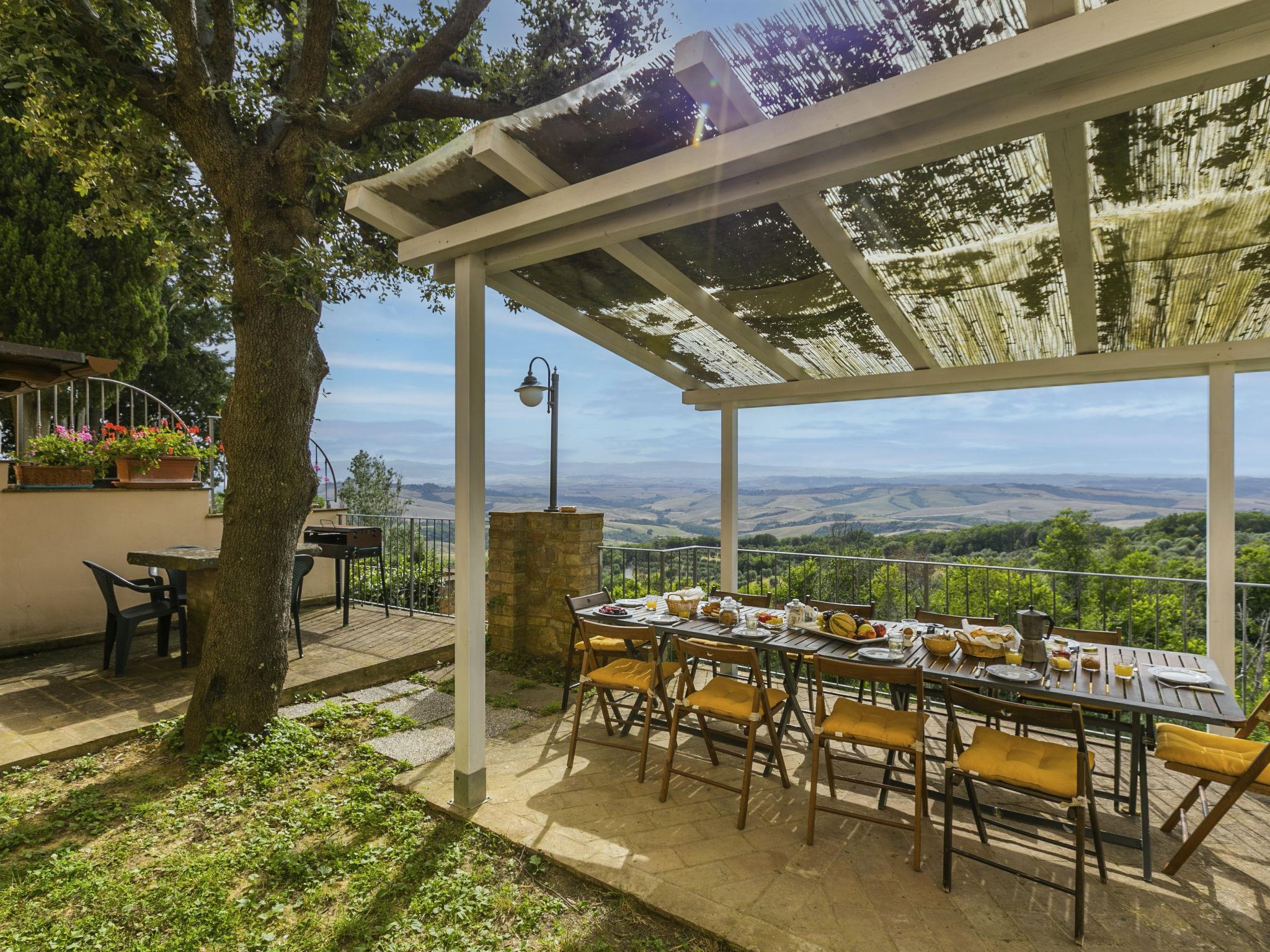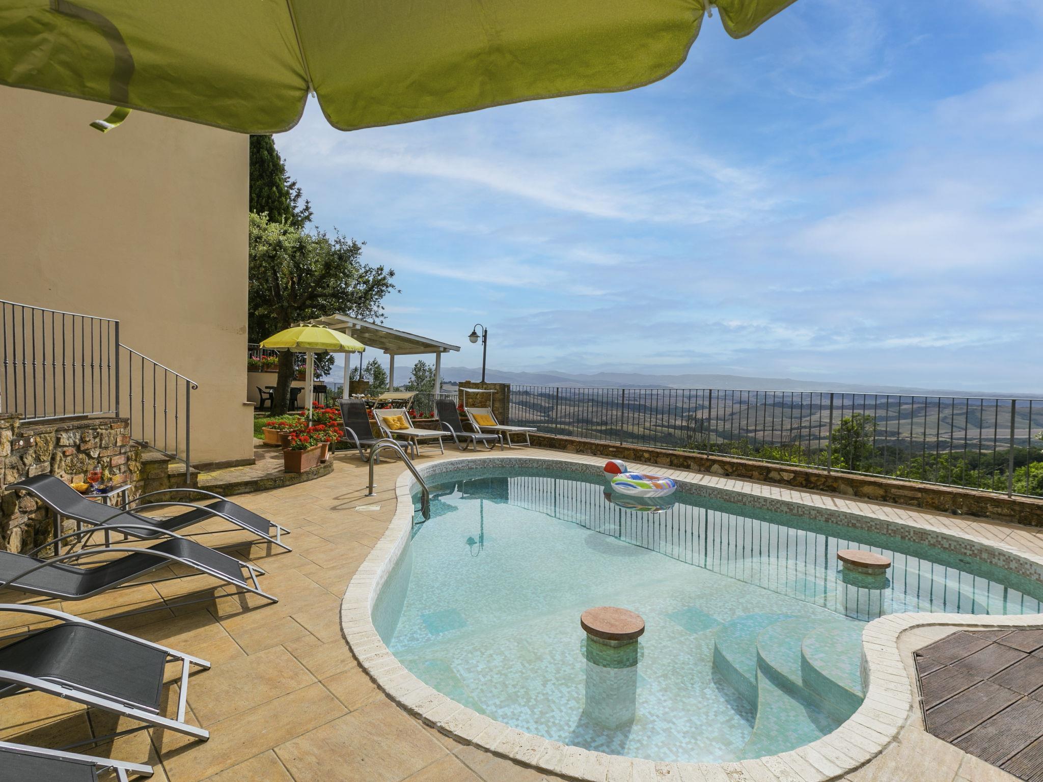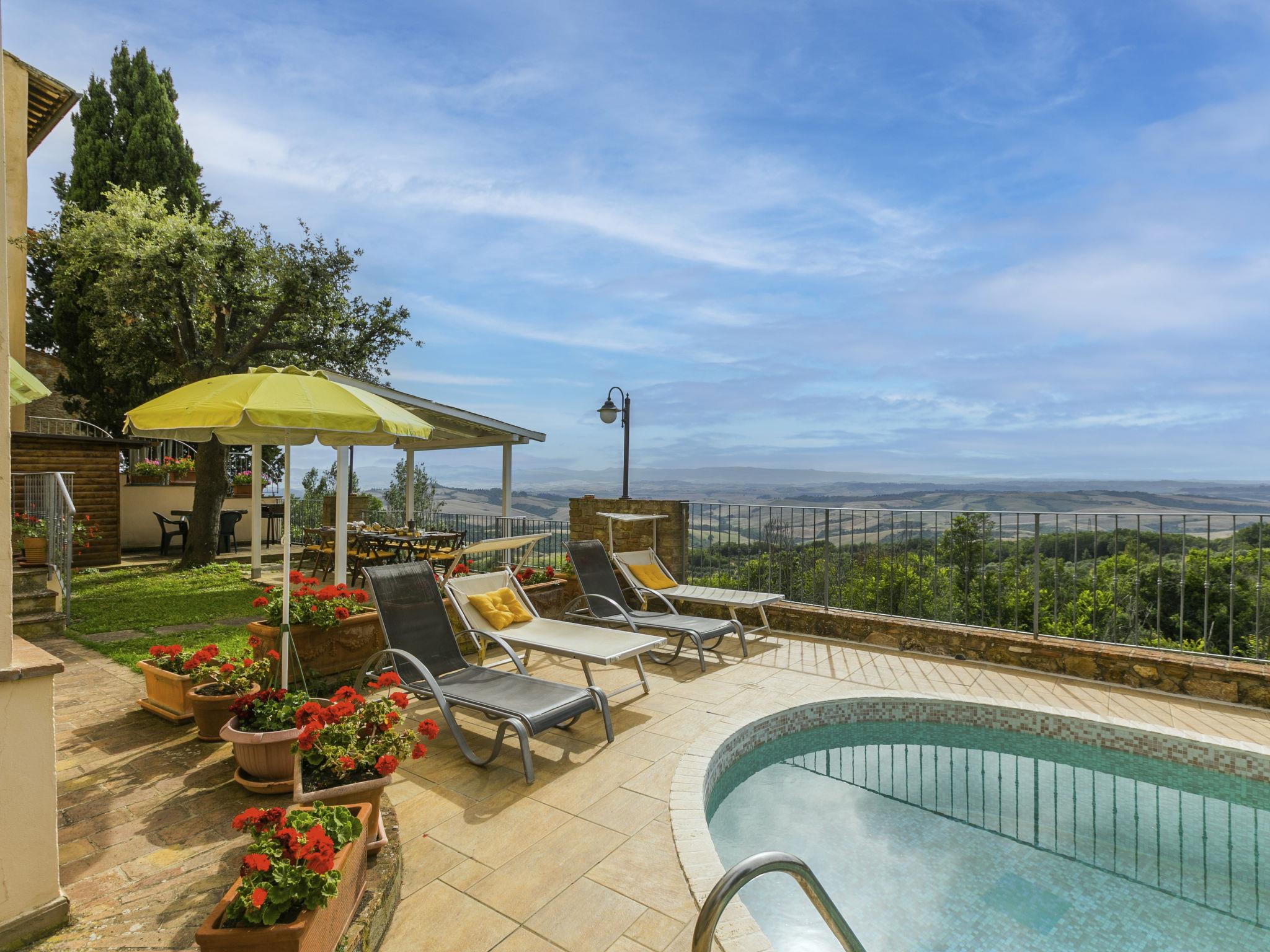 "Antica Pietra", 9-room farmhouse 210 m2 on 3 levels. Spacious, tasteful and cosy furnishings: living room with open-hearth fireplace (only for decoration), TV (flat screen), air conditioning. Exit to the garden, to the swimming pool. 1 room with 1 bed (80 cm), 1 double bed and air conditioning. Kitchen (oven, dishwasher, Gas stove, 4 gas rings, toaster, kettle, microwave, electric coffee machine) with dining table, open-hearth fireplace (only for decoration). Exit to the terrace, to the swimming pool. Shower/bidet/WC. Upper floor: 1 double bedroom with air conditioning. 1 room with 2 beds and air conditioning. Kitchen (oven, dishwasher, Gas stove, 4 gas rings, toaster, kettle, electric coffee machine) with dining table, TV (flat screen). Shower/WC. 2nd upper floor: 1 double bedroom with air conditioning. 1 room with 2 beds (80 cm), air conditioning. Kitchen (oven, dishwasher, Gas stove, 4 gas rings, toaster, kettle, electric coffee machine) with dining table and TV (flat screen), air conditioning. Shower/WC. Heating, air-conditioning. Natural stone floors. Comfortable furnishings in the country house style. 3 terraces covered, patio. Terrace furniture, barbecue, deck chairs, box-room. Very beautiful panoramic view of the countryside. Facilities: washing machine, iron, mosquito net, children's high chair, baby cot for up to 2 year olds, hair dryer. Internet (WiFi, free). Parking (roofed, 3 cars) at the house. Please note: non-smokers only. Maximum 1 pet/ dog allowed. Private entrance, smoke alarm, fire extinguisher. The pool mentioned in the description is for private use. IT048027A1A4JQXKH3