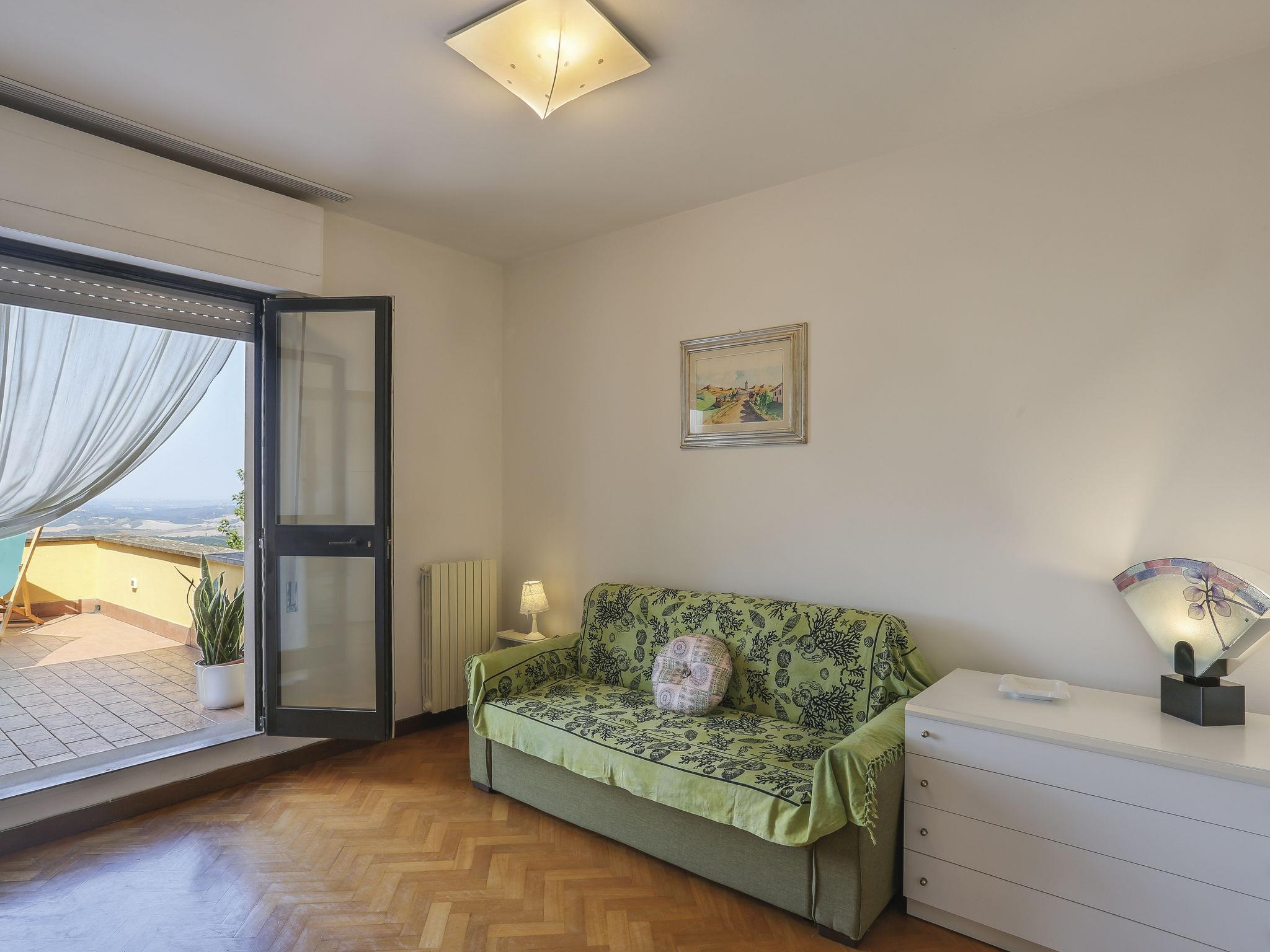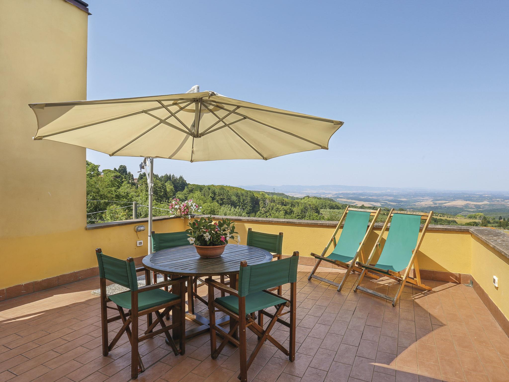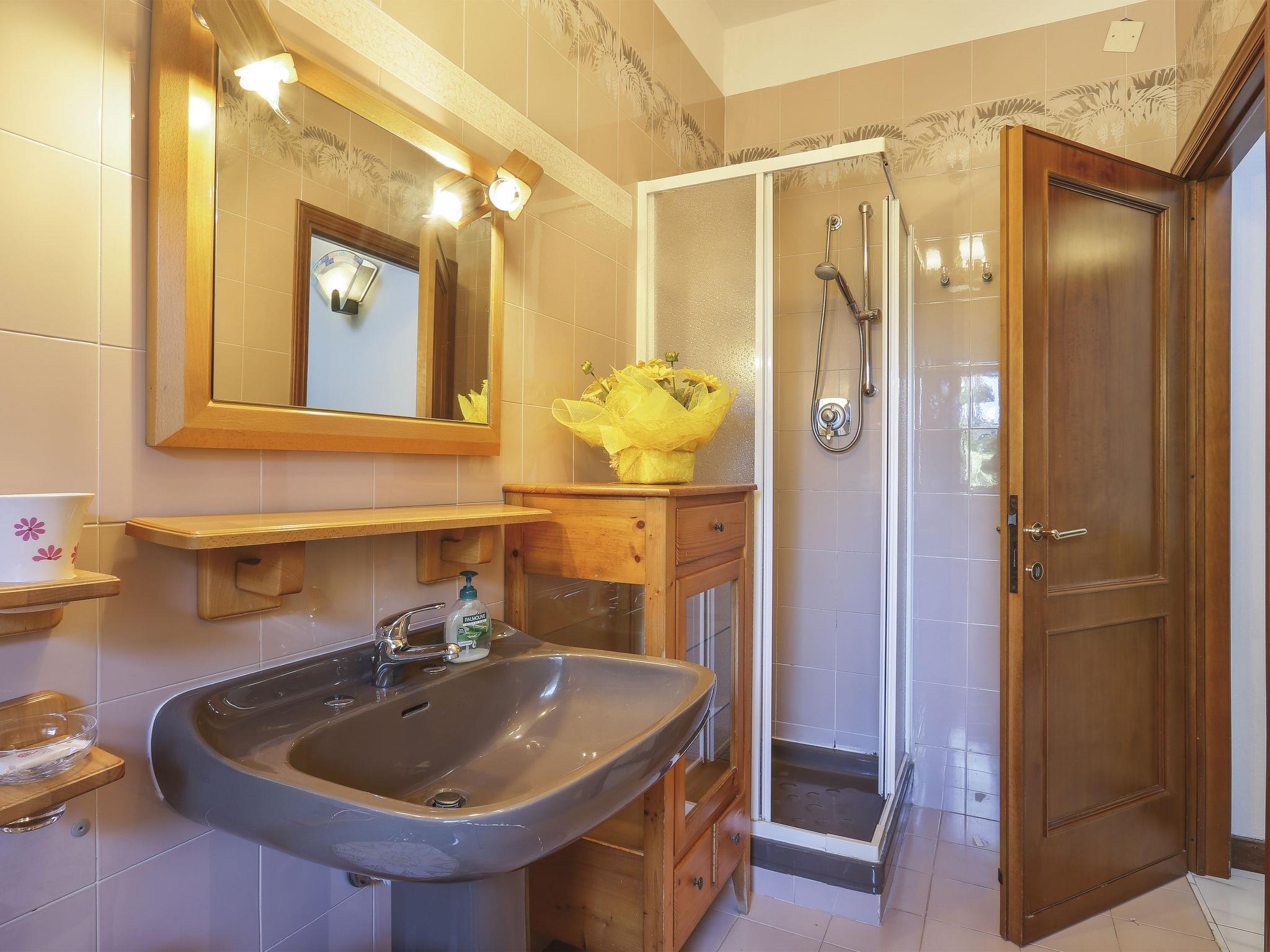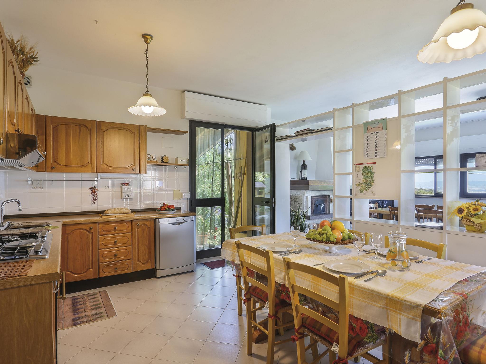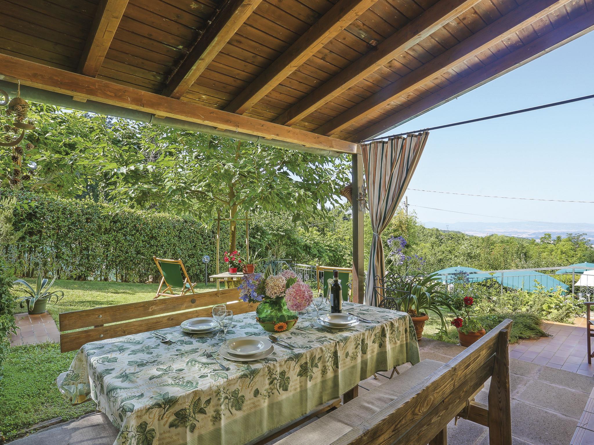"Villetta nel Verde", 5-room semi-detached house 160 m2 on 2 levels. Object suitable for 6 adults + 2 children. Practical and cosy furnishings: living/dining room with open-hearth fireplace, dining table, satellite TV, CD-player and DVD. 1 room with 1 double bed. Kitchen (oven, dishwasher, 4 gas rings, toaster, kettle, microwave, electric coffee machine) with dining table. Exit to the garden. Shower/WC. Upper floor: open walk-through room with 1 double sofabed. Interconnecting room with 2 beds. 1 room with 1 double bed. Shower/WC. Oil heating. Parquet floors. Terrace roofed, large terrace 50 m2. Terrace furniture, deck chairs. Marvellous panoramic view. Facilities: washing machine, safe, mosquito net, baby cot. Internet (WiFi, free). Maximum 1 pet/ dog allowed. When there are less than the maximum number of guests staying at the property, not all of the bedrooms will be available for use. IT048027B44HRDAKKY