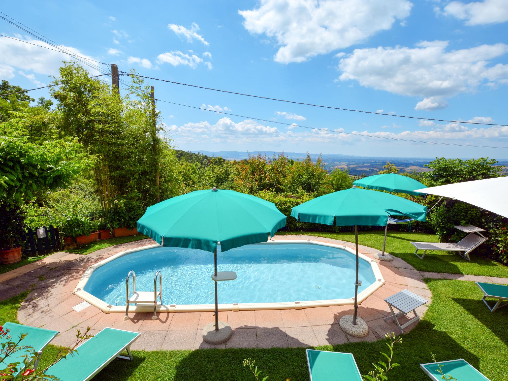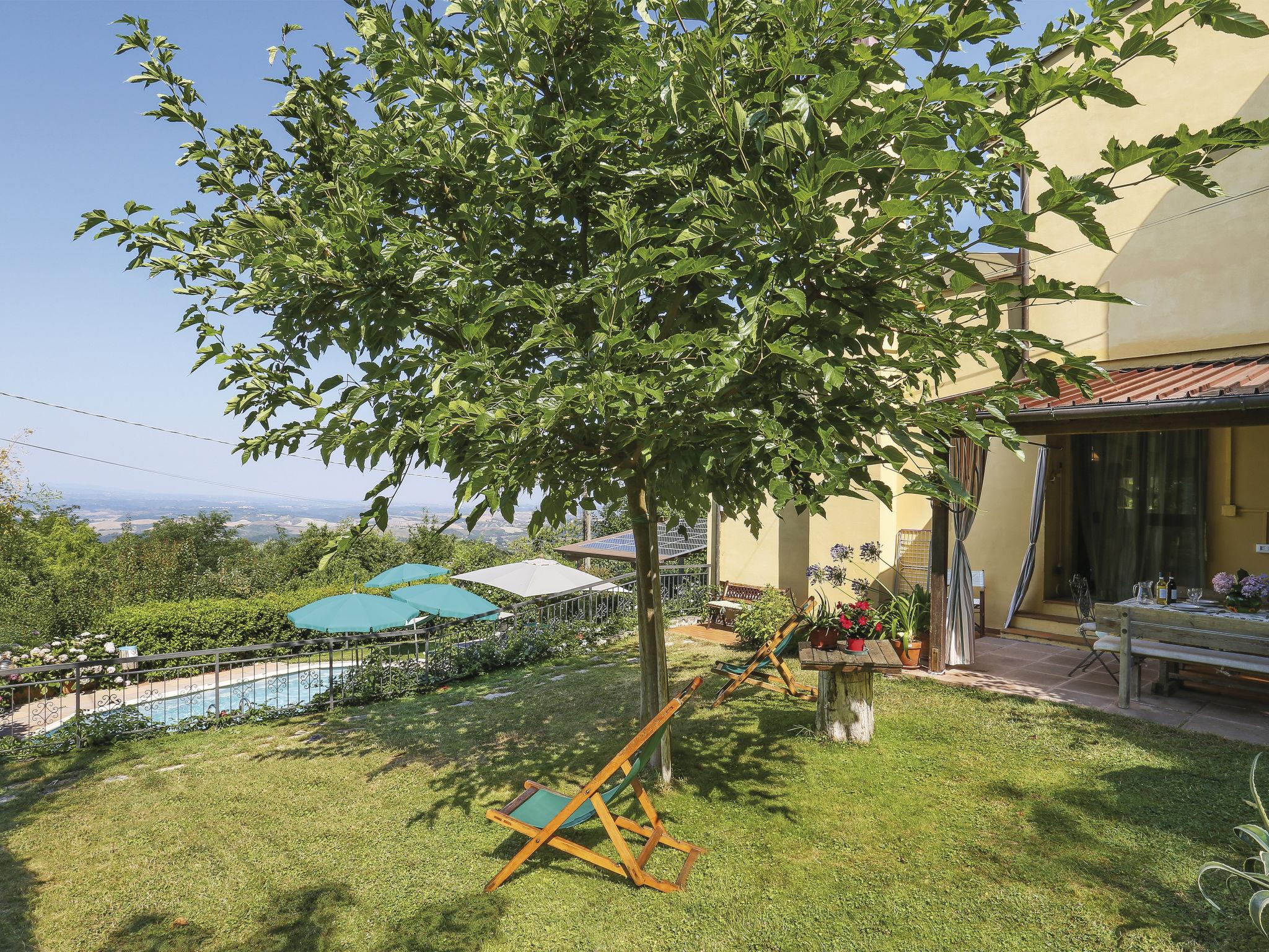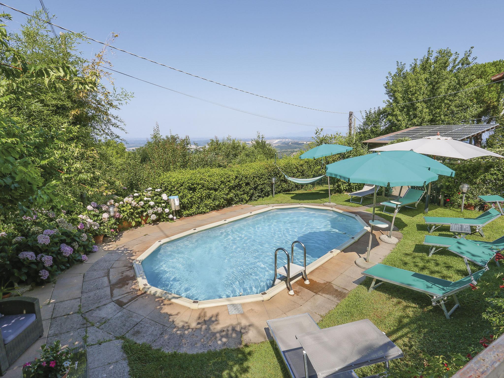 Cottage "Villetta nel Verde". In the hamlet San Vivaldo 7 km from the centre of Montaione, on the outskirts, 9 km from the centre of Castelfiorentino, 50 km from the centre of Florenz, on a slope. Private: property, terraced garden with lawn and wildlife garden, swimming pool (7 x 4 m, depth 140 cm, seasonal availability: 03.Apr. - 16.Oct.). Table tennis, barbecue. In the house: burglar alarm system, heating available only from 01.Nov. - 15.Apr. (extra). Roofed, parking on the premises. E-charging station. Shop 500 m, supermarket 7 km, bus stop 2 km. Golf course (27 hole) 7 km.
