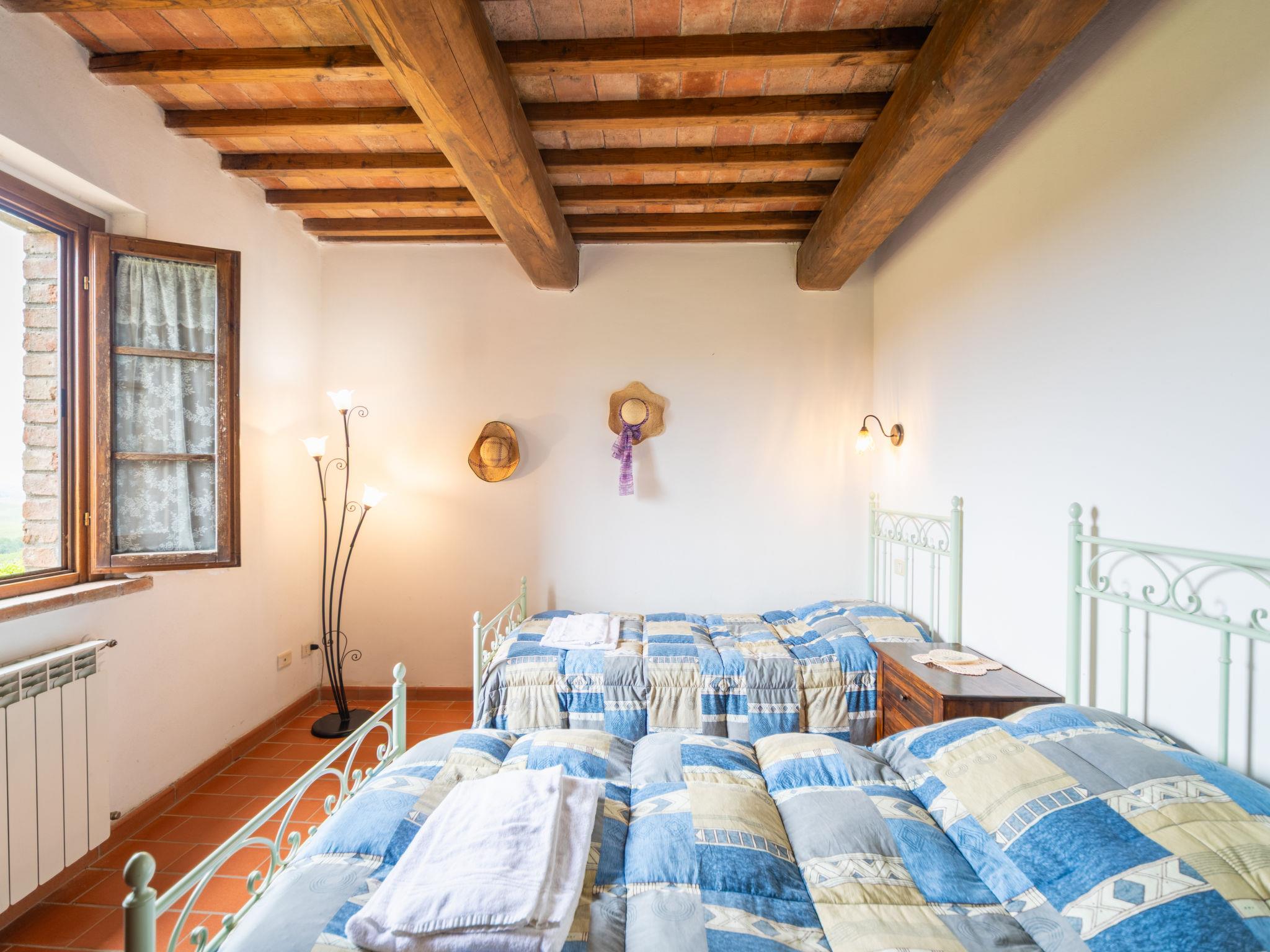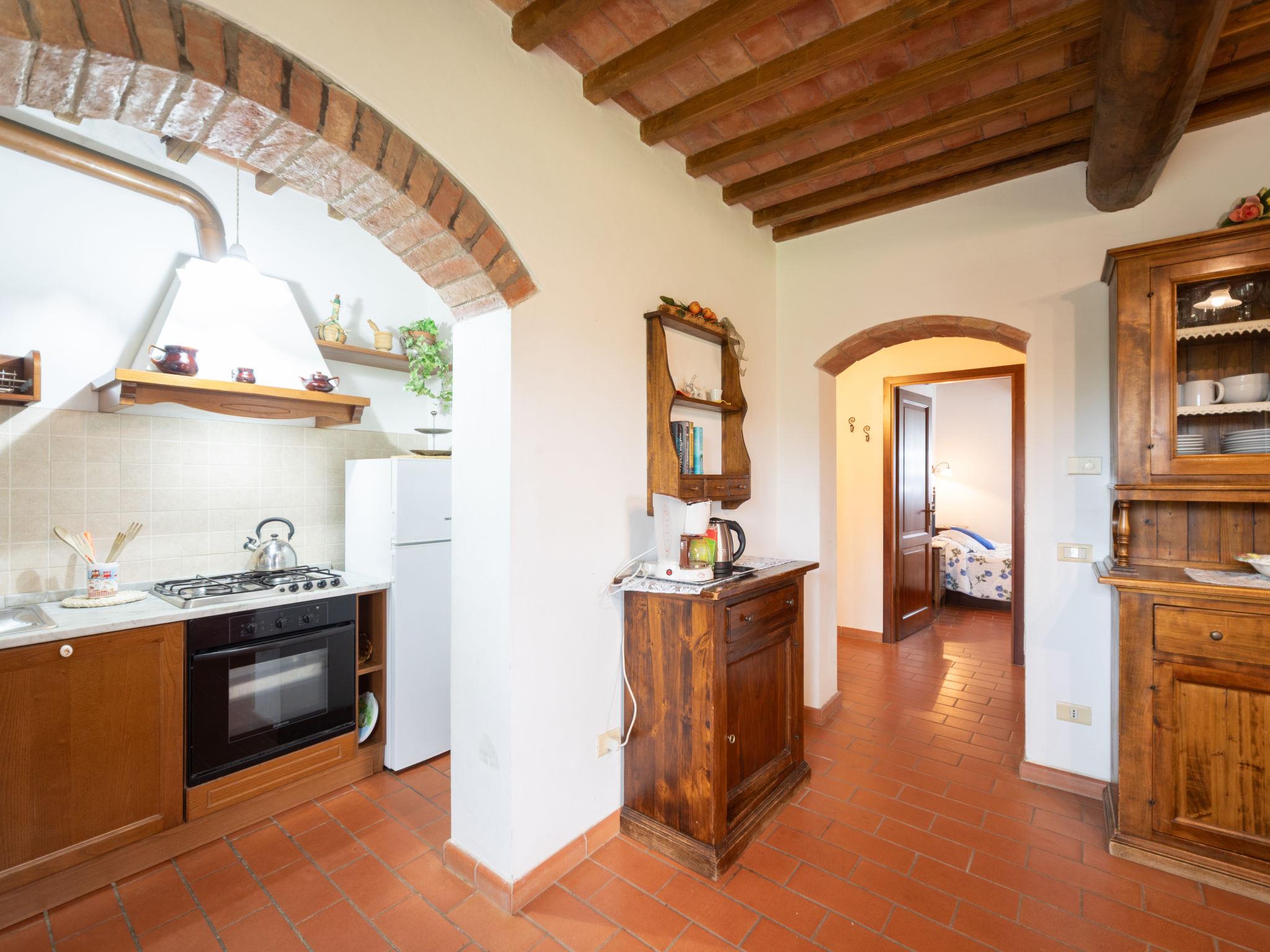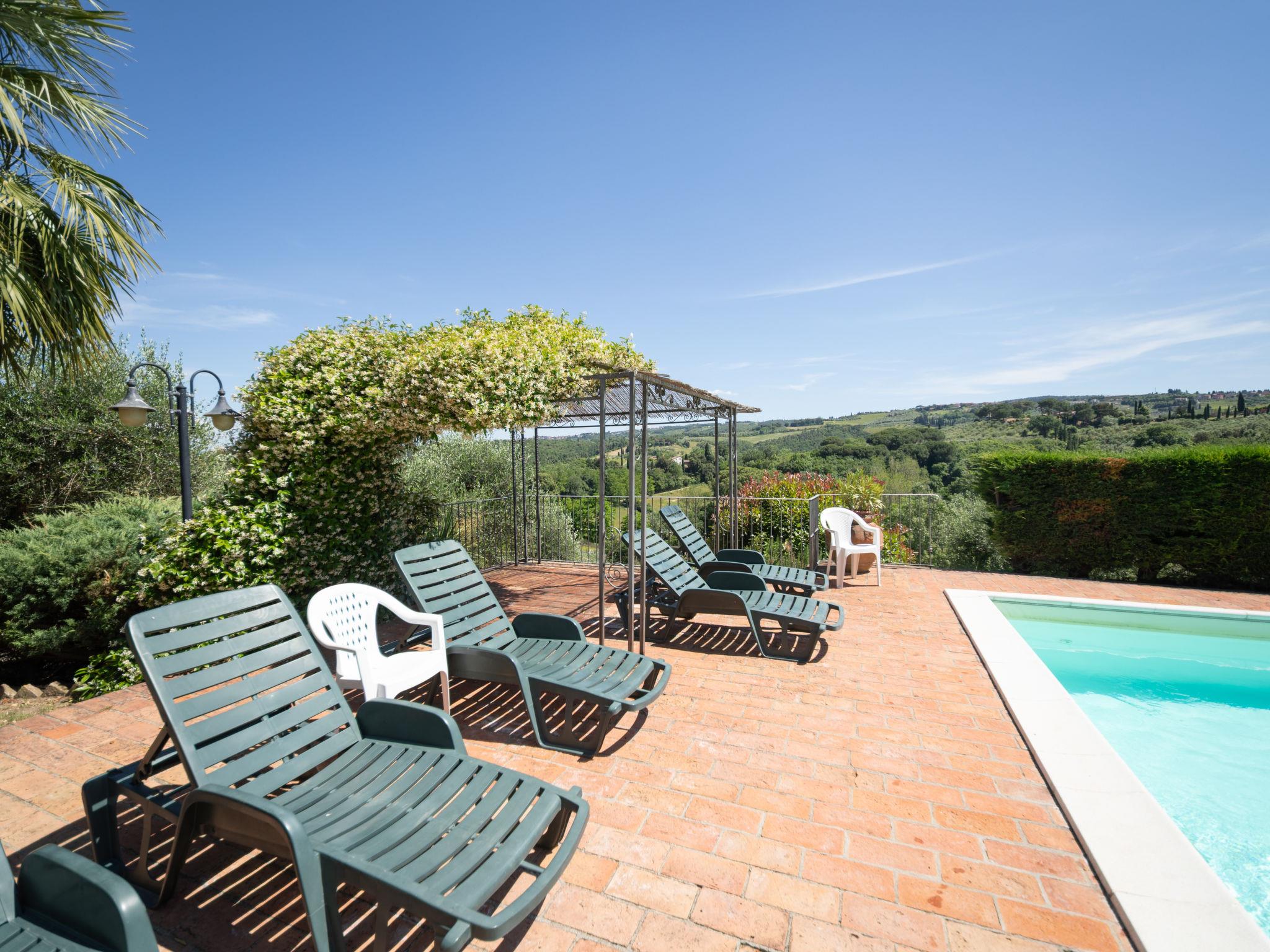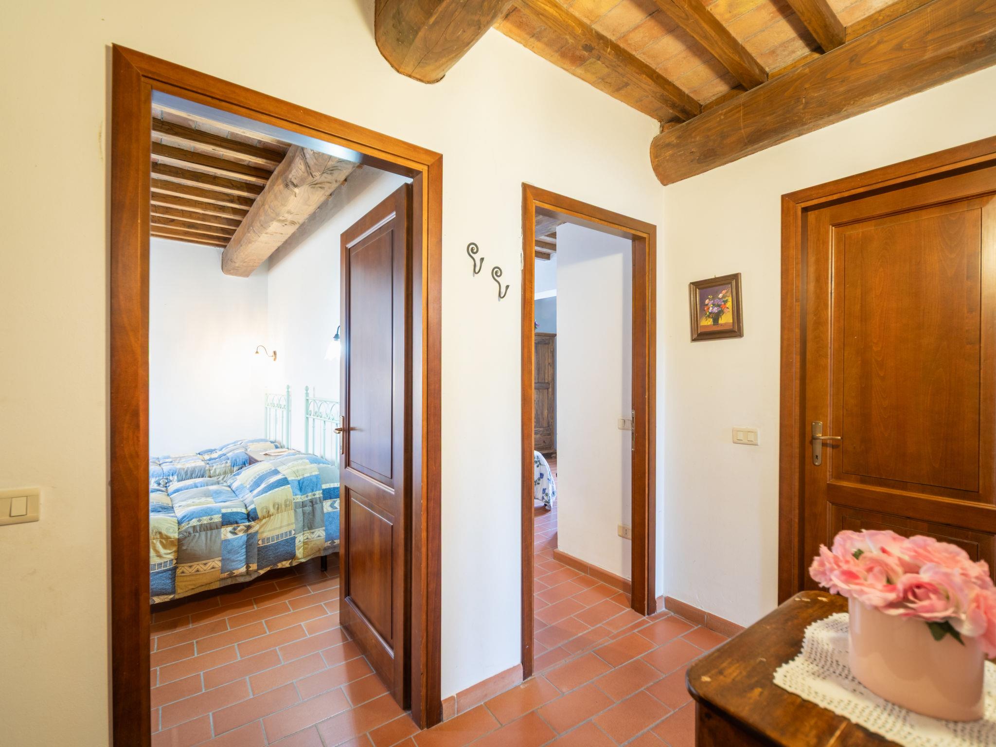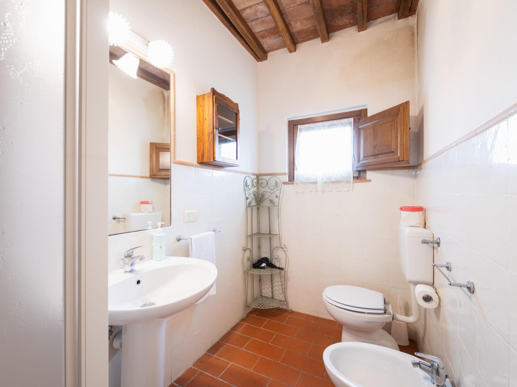 Montaione 19 km from San Gimignano: Agriturismo Casa Bacceli is divided into 7 apartments, one of which is occupied by the owner. The agroturismo is situated on a hill approx. 2 km from the centre of Montaione, in an oasis of peace and tranquility. An ideal place for relaxing holiday walking in the open air and in the Tuscan countryside - a perfect base for visiting the art cities in the region such as Volterra approx. 20 km, Siena and Lucca approx. 50 km, the Etruscan beaches approx. 60 km. Large working farm "Baccelli". 7 apartments in the property. 2 km from the centre of Montaione, 15 km from the centre of San Gimignano, 50 km from the centre of Firenze, in a secluded, quiet, sunny position on top of a hill. For shared use: garden (fenced), swimming pool (15 x 9 m, depth 120 - 200 cm, seasonal availability: 27.Apr. - 28.Sep.). Garden furniture, barbecue. In the complex: WiFi, central heating system, heating to be paid on the spot, heating available only from 01.Nov. - 07.Apr.. Motor access to the house (800 m via unmade road). Parking at the house. Shop 2 km, grocery 2 km, supermarket 2 km, bus stop 2 km, railway station "Castelfiornetino" 12 km. Golf course (18 hole) 17 km, tennis 5 km. Nearby attractions: Certaldo 19 km, San Miniato 30 km, San Casciano in Val di Pesa 40 km, Colle Val d'Elsa 40 km. WI-FI in the pool area and garden.