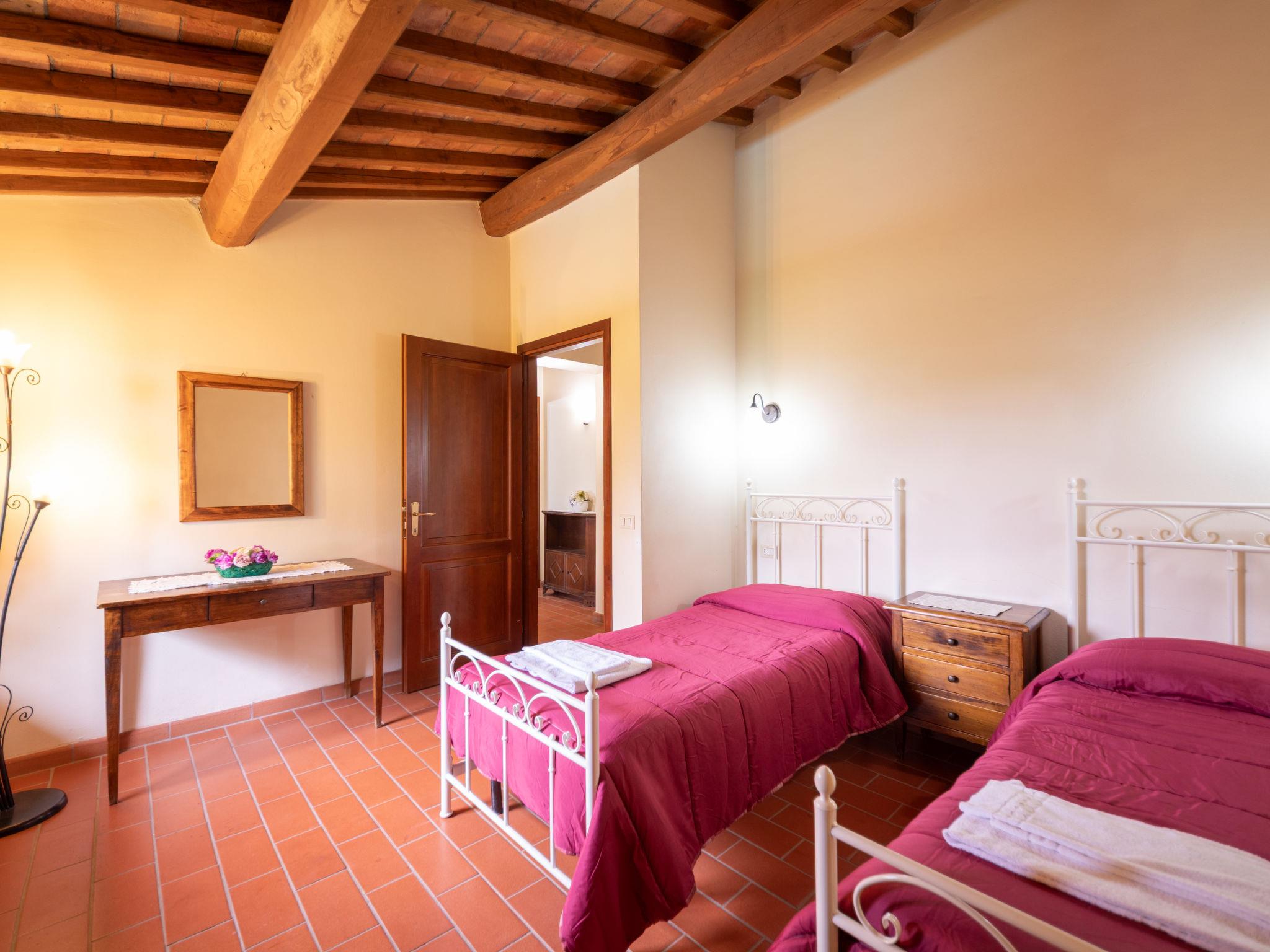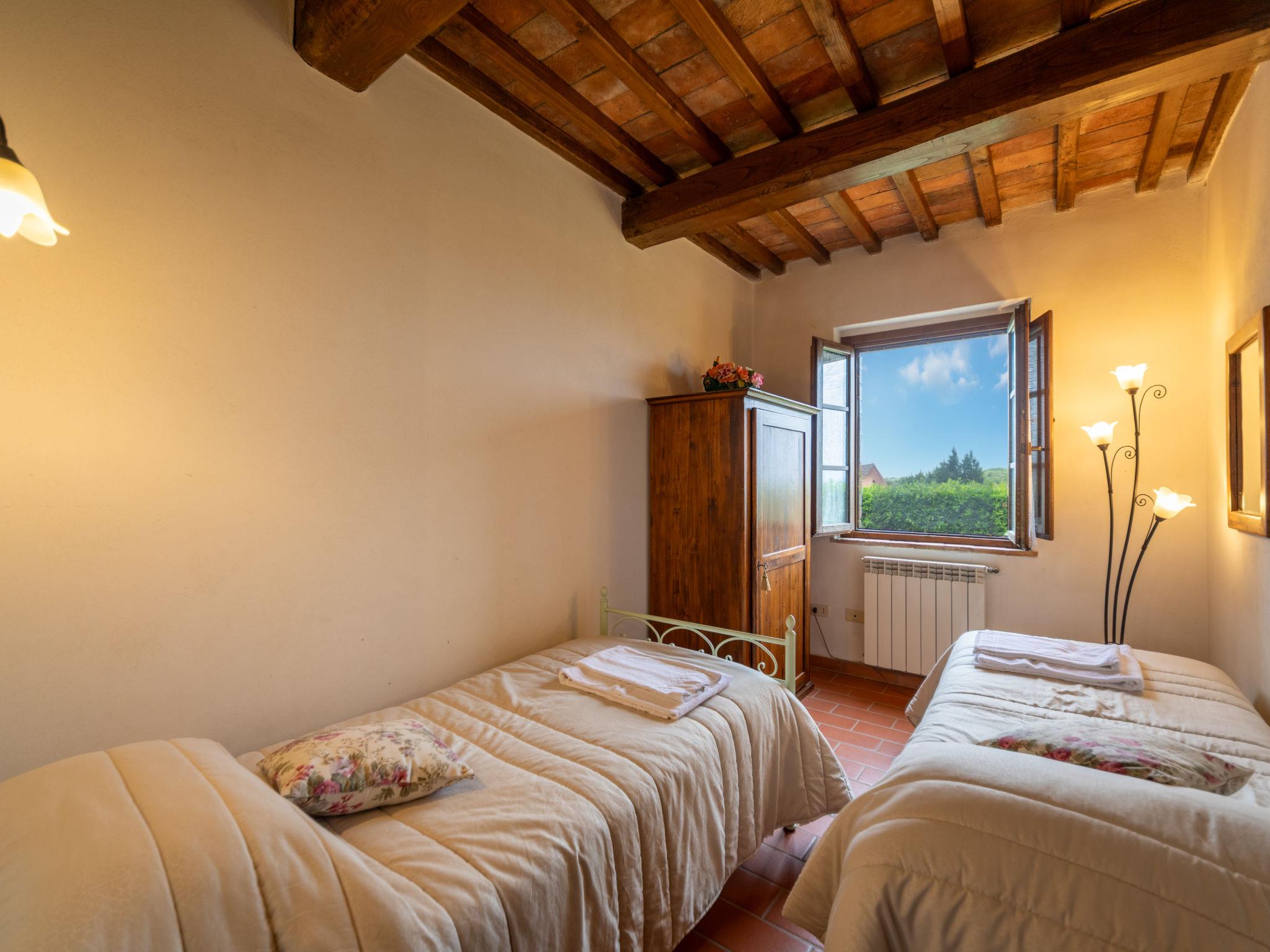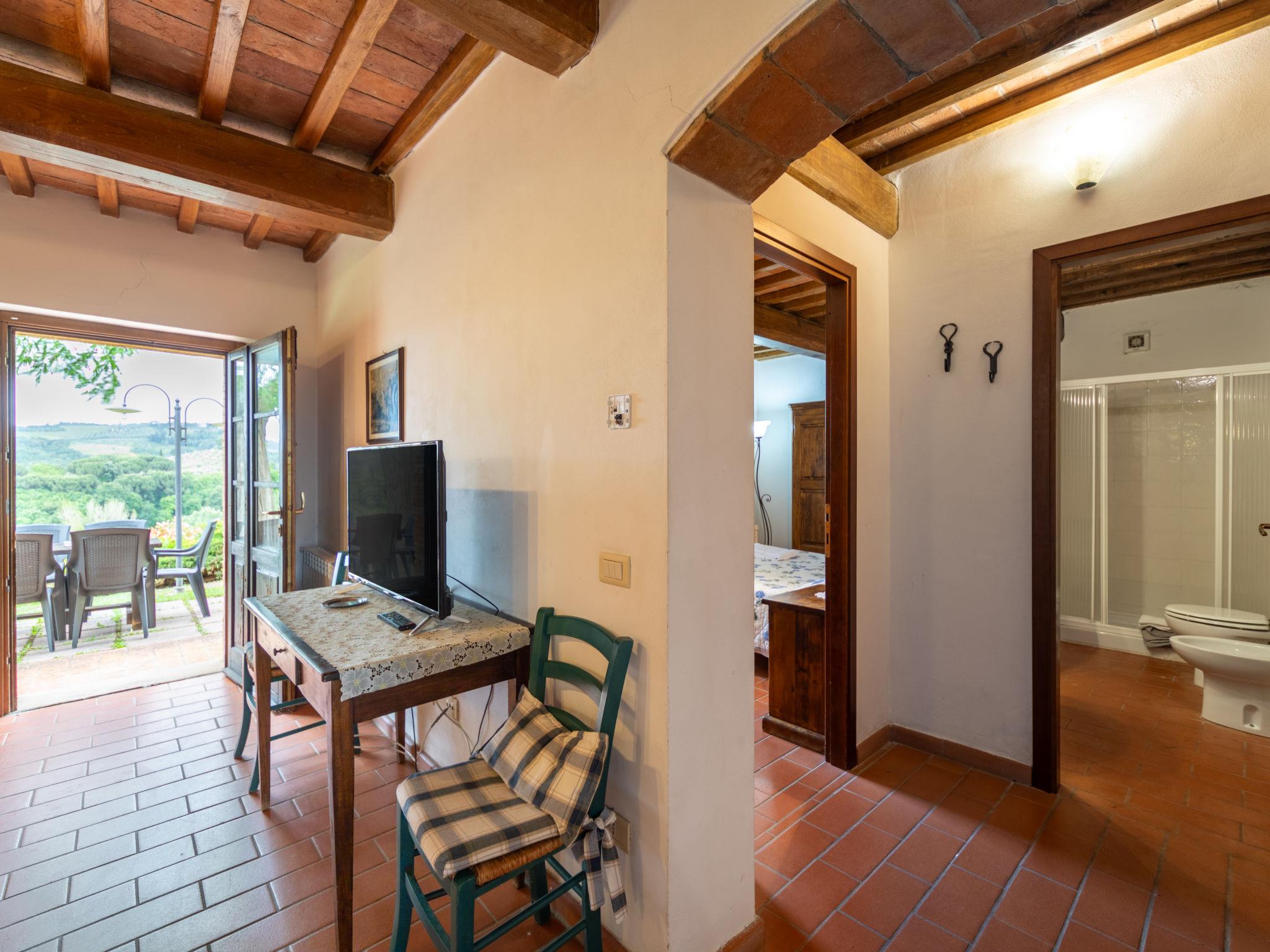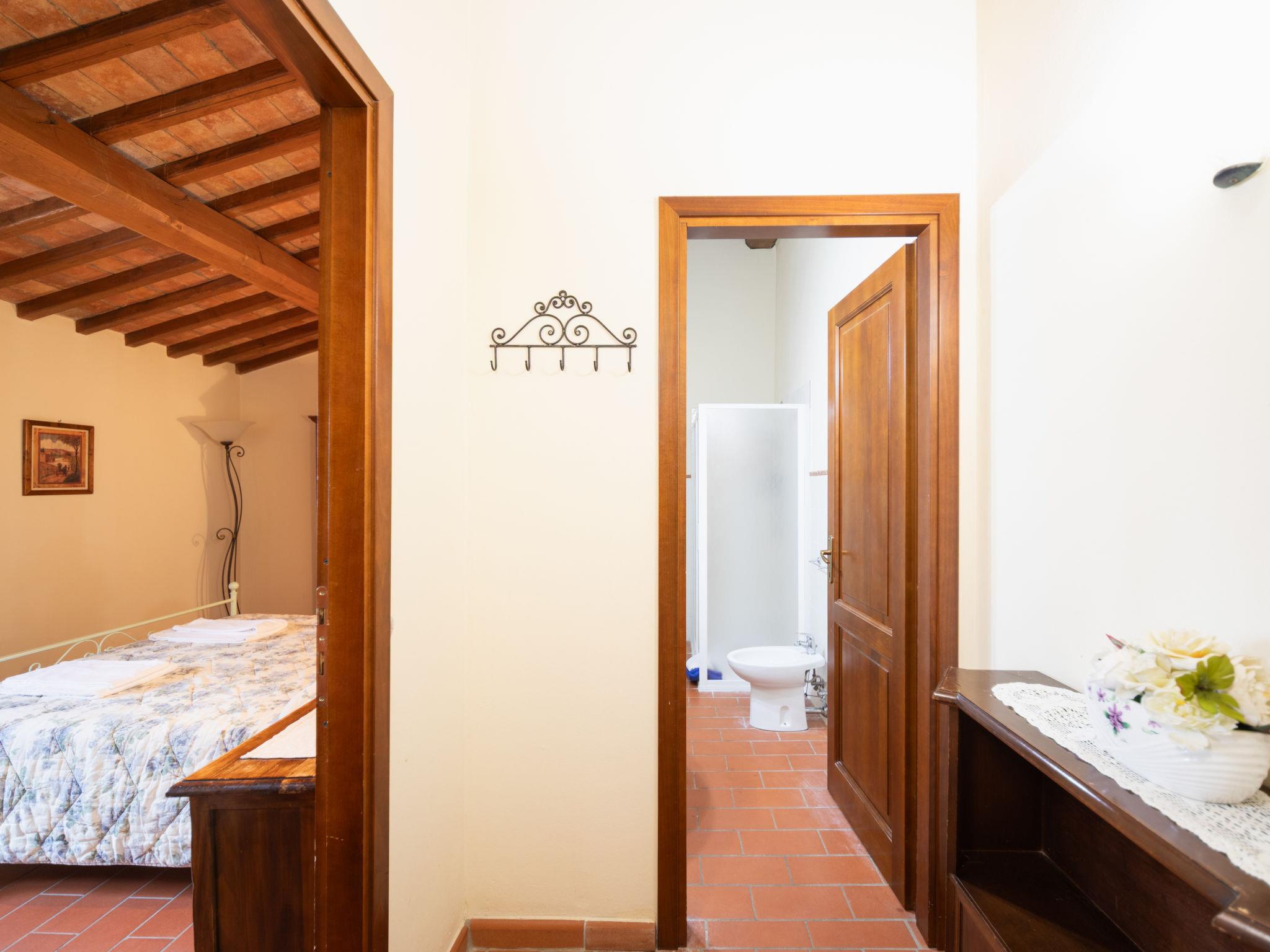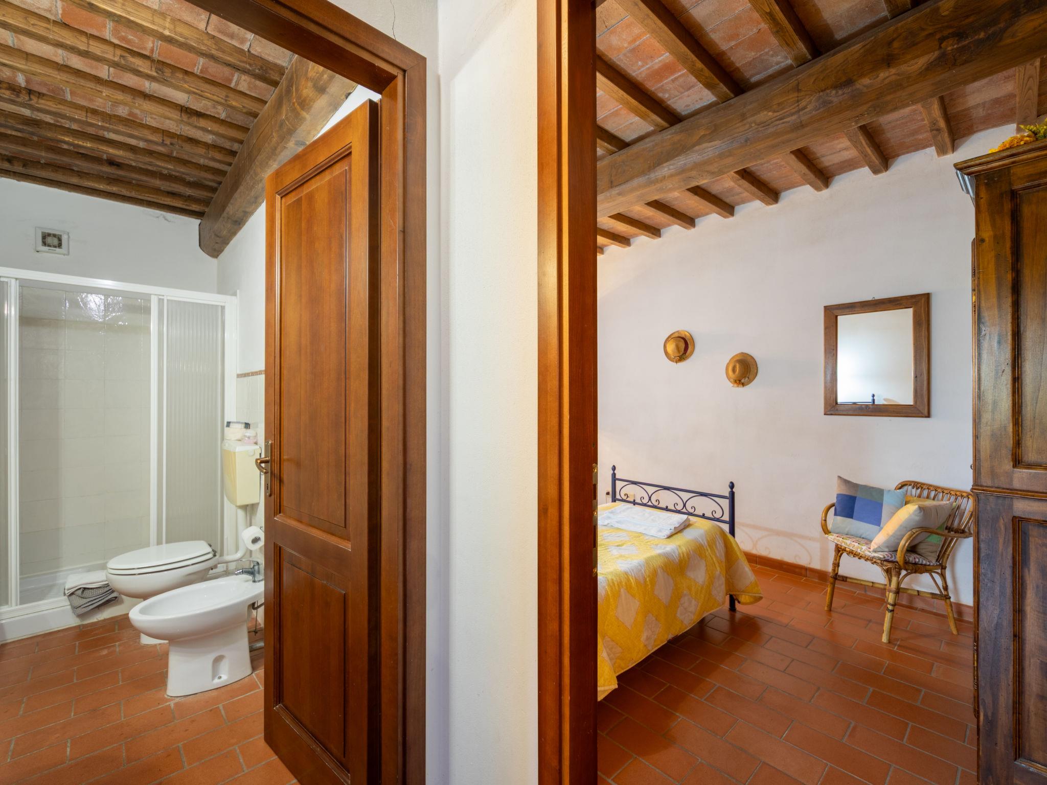Casa Baccelli, an old farmhouse divided into eight apartments, one of which is inhabited by the owners, is proposed by us as an independent house. The seven apartments on the market communicate with each other only from the outside and each of them has its own kitchenette. Large working farm "Baccelli". 7 apartments in the property. 2 km from the centre of Montaione, 15 km from the centre of San Gimignano, 50 km from the centre of Firenze, in a secluded, quiet, sunny position on top of a hill, in the countryside. For shared use: garden (fenced). Private: swimming pool (15 x 9 m, depth 120 - 200 cm, seasonal availability: 27.Apr. - 28.Sep.). Outdoor shower, garden furniture, barbecue. In the complex: WiFi, heating to be paid on the spot, heating available only from 01.Nov. - 07.Apr.. Motor access to the house (800 m via unmade road). Parking at the house. Shop 2 km, grocery 2 km, supermarket 2 km, bus stop 2 km, railway station "Castelfiornetino" 12 km. Golf course (18 hole) 17 km, tennis 5 km. Nearby attractions: Certaldo 19 km, San Miniato 30 km, San Casciano in Val di Pesa 40 km, Colle Val d'Elsa 40 km. Please note: the owner lives on the same property.