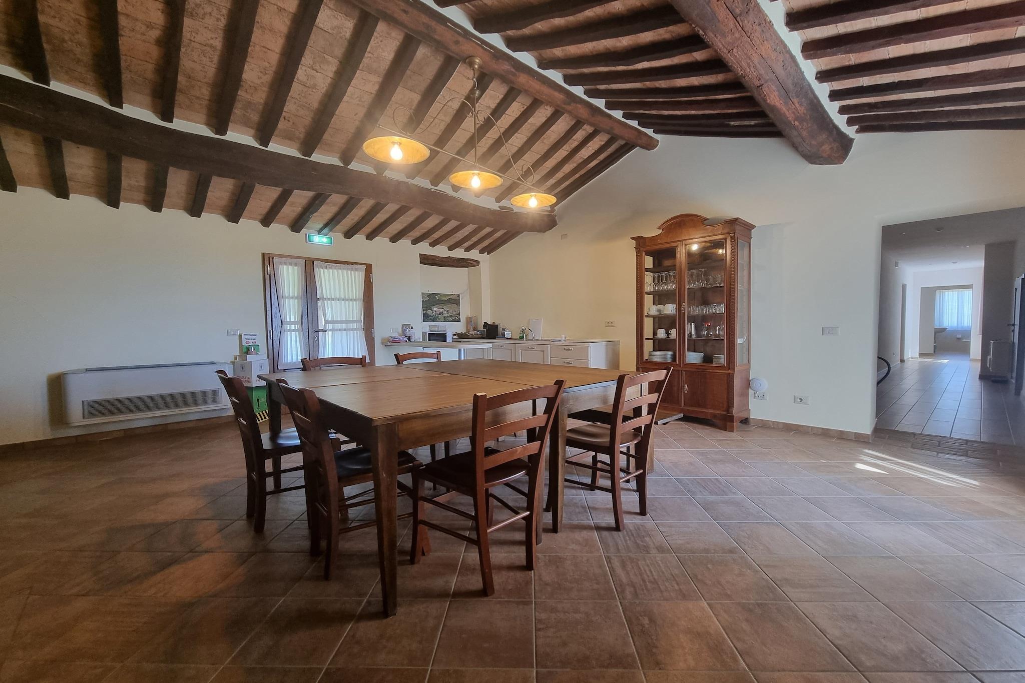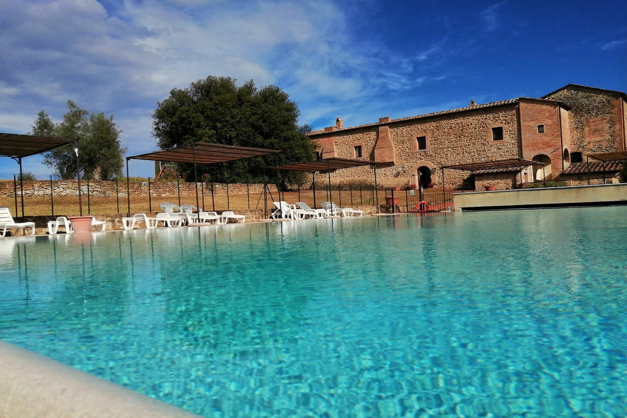 Dette solbeskinnede toscanske feriehus er en rolig oase omgivet af vinmarker, cypresser og gyldne landskaber. Det tilbyder et varmt, rustikt tilflugtssted midt i de berømte vinmarker i Val d'Orcia. Beliggende på en rolig ejendom, blander huset traditionel toscansk karakter med generøse indendørs og udendørs opholdsrum, ideelt for familier eller venner, der ønsker at slappe af i naturen. Selve huset byder dig velkommen med dets indbydende interiør - tænk på terracottagulve, træbjælkelofter og hyggelige fællesrum. Gæsterne kan samles omkring pejsen i den luftige spisestue eller nyde stille stunder på terrassen med panoramaudsigt over landskabet. Fem luftige soveværelser med aircondition giver afslappende nætter, mens flere badeværelser sikrer komfort og privatliv. Træd udenfor ind i 2 hektar smukt vedligeholdte fælles haver. Børn kan svinge sig under træerne eller udfordre hinanden til en venskabelig bordtenniskamp. Voksne kan nyde den toscanske sol på liggestole, dele måltider ved havebordet eller grille over den fælles kulgrill. En stor, indhegnet swimmingpool byder på en forfriskende dukkert på varme eftermiddage, omgivet af olivenlunde og udsigt over vingårdene. Du er kun en kort køretur fra Montalcinos middelaldergader og vingårde, med de bedste spisesteder som Locanda Demetra eller Il Giglio i nærheden. Uanset om du smager den verdensberømte Brunello, udforsker Siena eller kysten eller blot slapper af på stedet med lokal vin i hånden, er dette hjem din fredelige base for en uforglemmelig toscansk flugt.
