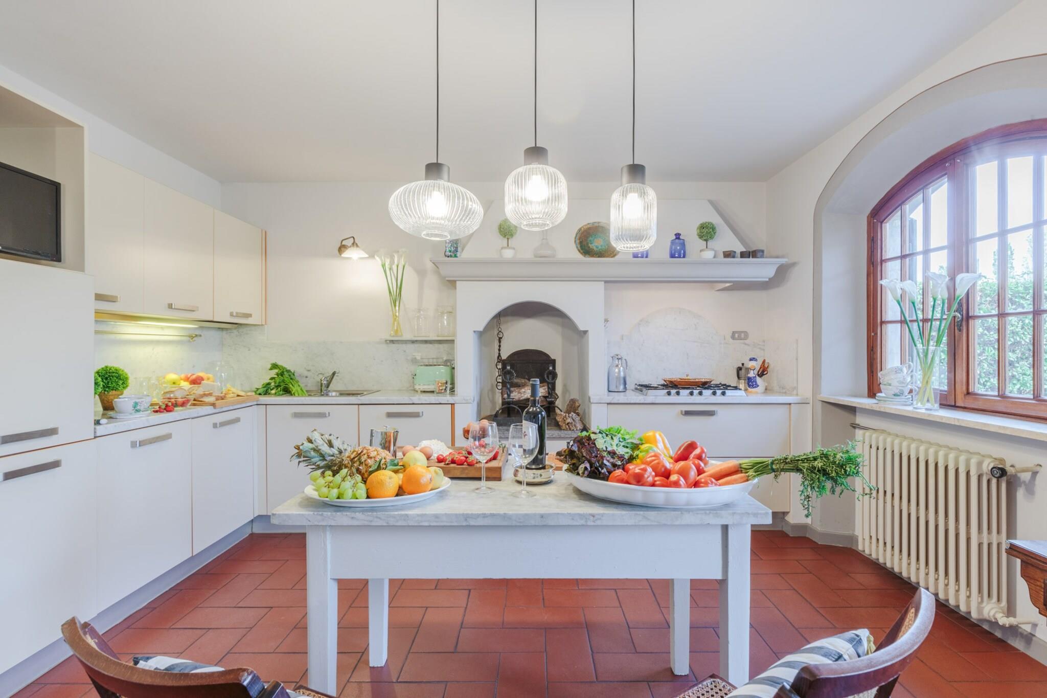 Villa Cesare er et romantisk tilflugtssted på en bjergskråning i Monte San Quirico, kun 3 kilometer fra det historiske centrum og de ikoniske bymure i Lucca. Omgivet af bølgende landskab og charmerende lokale spisesteder tilbyder denne villa med 4 soveværelser en fredelig base for at udforske Toscanas mange skatte, fra Firenze og Pisa til strandene i Versilia og landsbyerne i Cinque Terre. Den bekvemme beliggenhed kombinerer naturens ro med nem adgang til Luccas pulserende gamle bydel. Indvendigt blander villaen rustik elegance med moderne komfort. Store vinduer, originale arkitektoniske detaljer og klassisk 1900-talskarakter fylder værelserne med charme, mens opdaterede faciliteter sikrer et behageligt ophold. Hjemmet har et fuldt udstyret køkken, der åbner ud til haven og poolområdet, rummelige opholds- og spisestuer, udendørs balkoner, fire komfortable soveværelser og tre badeværelser. Den private overjordiske pool tilbyder en forfriskende pause efter en dag med sightseeing. Villa Cesare er ideel til familier, par eller venner, der søger et stilfuldt og afslappende sted at slappe af. Lejen inkluderer sengelinned, håndklæder, Wi-Fi, slutrengøring og forbrug. En høj stol og barneseng er tilgængelige efter anmodning. Bemærk venligst, at pejsen er dekorativ og ikke til brug. Med generøs indendørs og udendørs plads og en førsteklasses beliggenhed nær Lucca er Villa Cesare et charmerende hjem væk fra hjemmet i hjertet af Toscana. Bemærk: Turistskat skal betales på ejendommen.