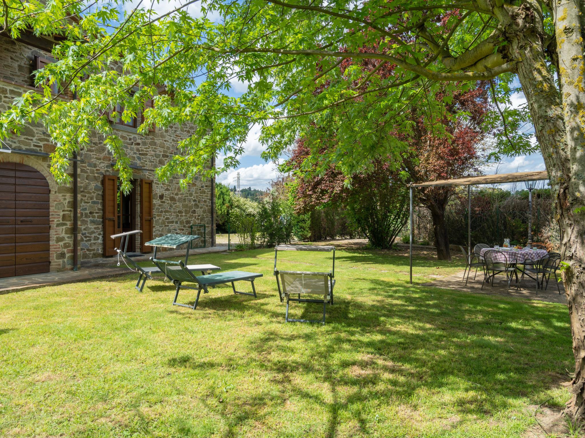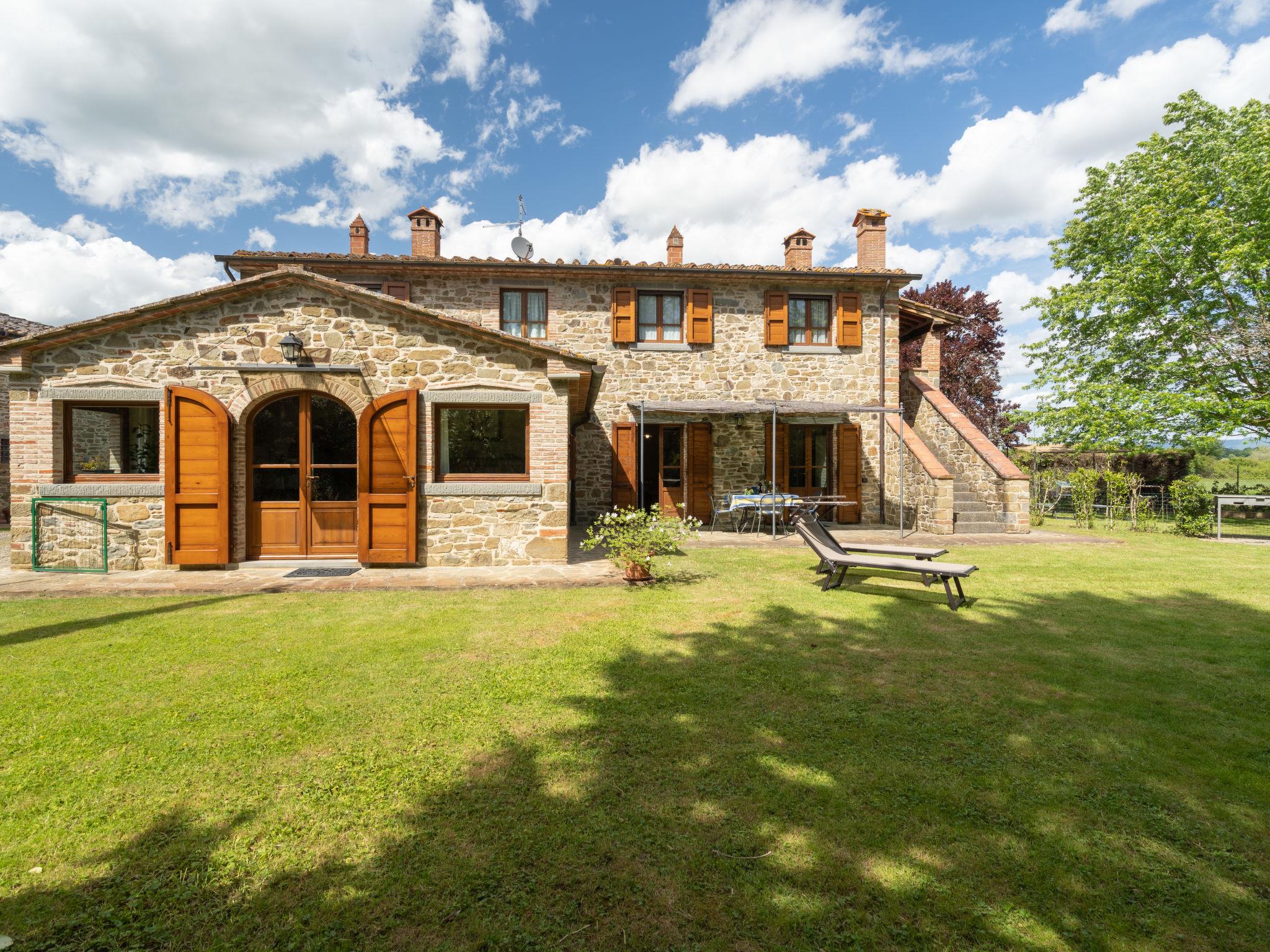 Cosy cottage, recently renovated, divided into two spaciuos parts, each with private garden of 400 m2. Under conservation act. A large fenced garden surrounds this house and the owners house which lay nearby. Swimming pool with outdoor hot water shower. View of the sunflowers fields, typical of the tuscan landcape. Sunset over the famous Gargonza castle. Private gate. Video entry phone for each apartments. The interiors are well kept, have terracotta and parquet floorings, beamed ceilings, stone archways, bedrooms had ceiling fan. Wrought iron beds. Siena 50 km. Florence 60 km. Rome is approx 2 hours by car. Cosy working farm "Casale il Giglio", renovated in 2004. 5 km from the centre of Monte San Savino, 19 km from the centre of Arezzo, 30 km from the centre of Terme di Rapolano, in the countryside. Private: garden 800 m2 (fenced), swimming pool (11 x 5 m, depth 100 - 175 cm, seasonal availability: 27.Apr. - 12.Oct.) with salt-electrolysis pool-cleaning system. Unconventional pool shape. Outdoor shower, table tennis, boules, garden furniture. In the complex: WiFi, table football, heating to be paid on the spot, heating available only from 01.Nov. - 15.Apr.. Available: bicycles (4). Parking at the house. Shop 5 km, restaurant 5 km, café 5 km, bus stop 800 m, railway station "Monte San Savino" 5 km, thermal baths "Rapolano Terme" 28 km. Riding stable 10 km. Nearby attractions: Lucignano 12 km, Rapolano Terme 28 km, Cortona 32 km, Montepulciano 37 km, Gaiole in Chianti 45 km. Please note: car recommended. Suitable for families, suitable for seniors. The owner lives on the same property.