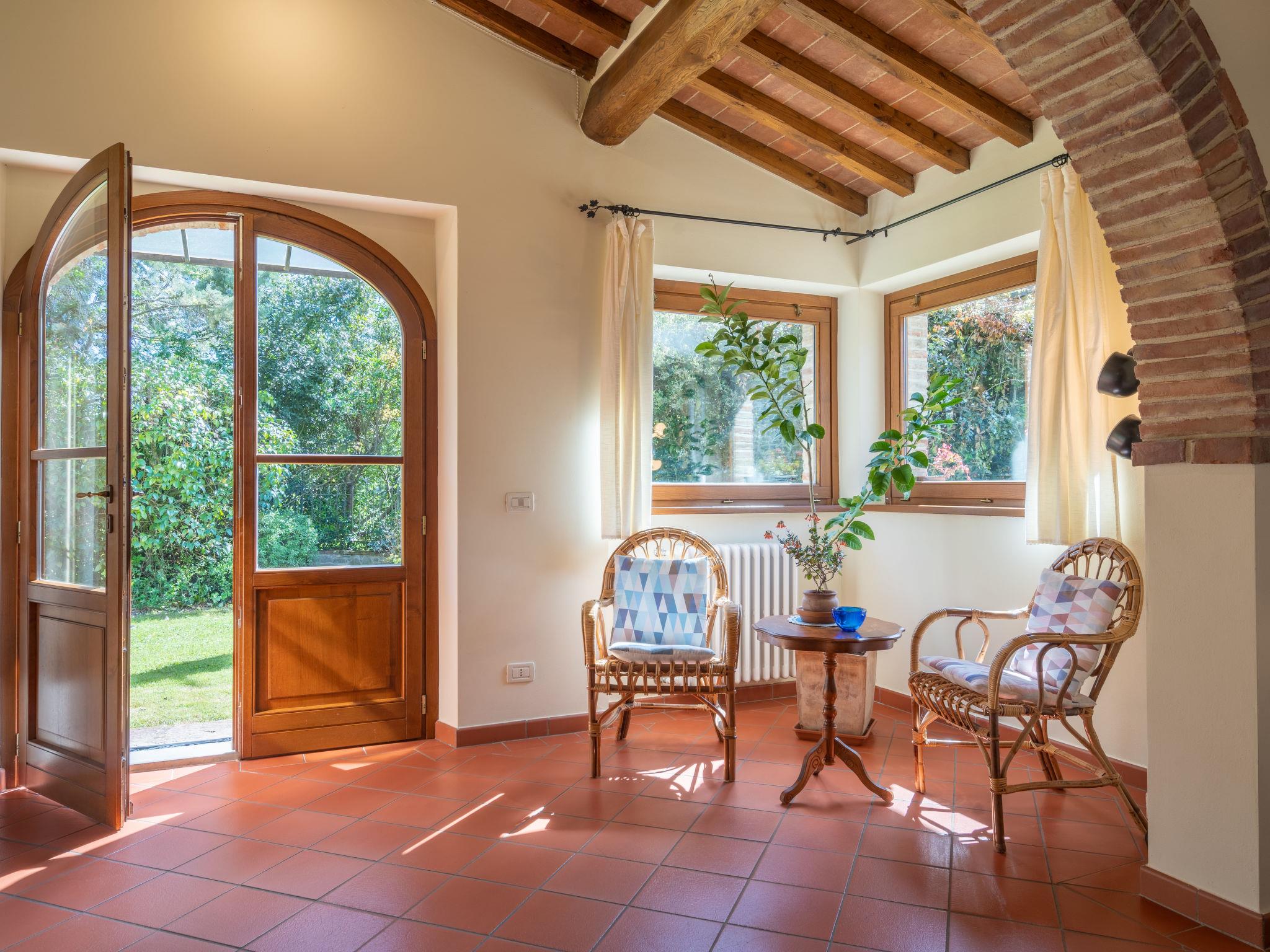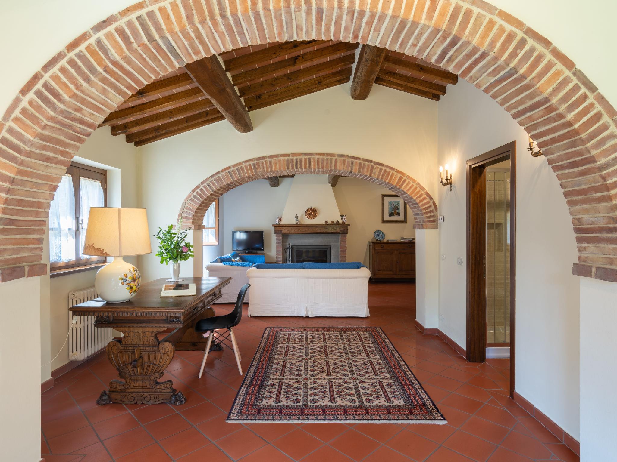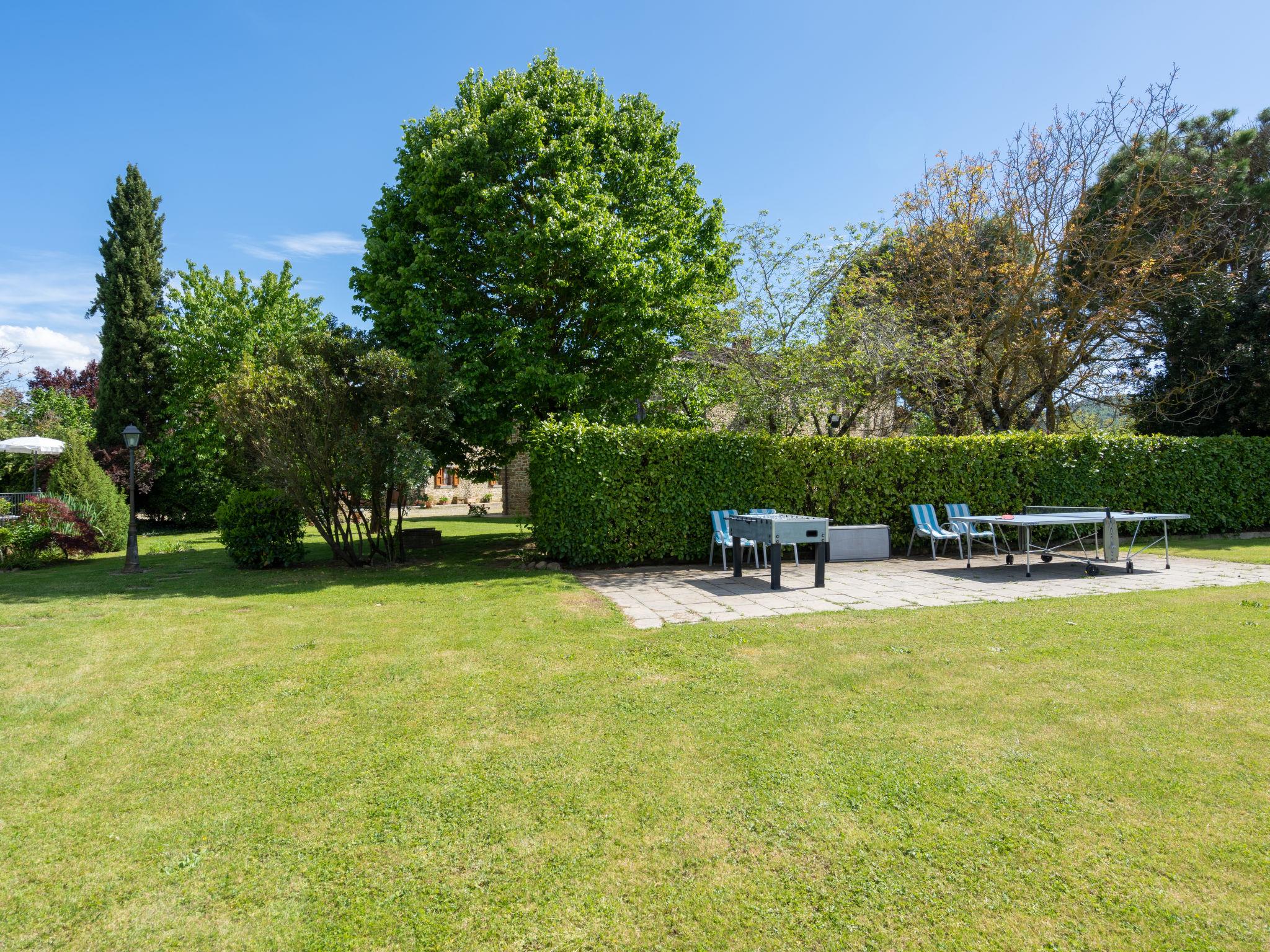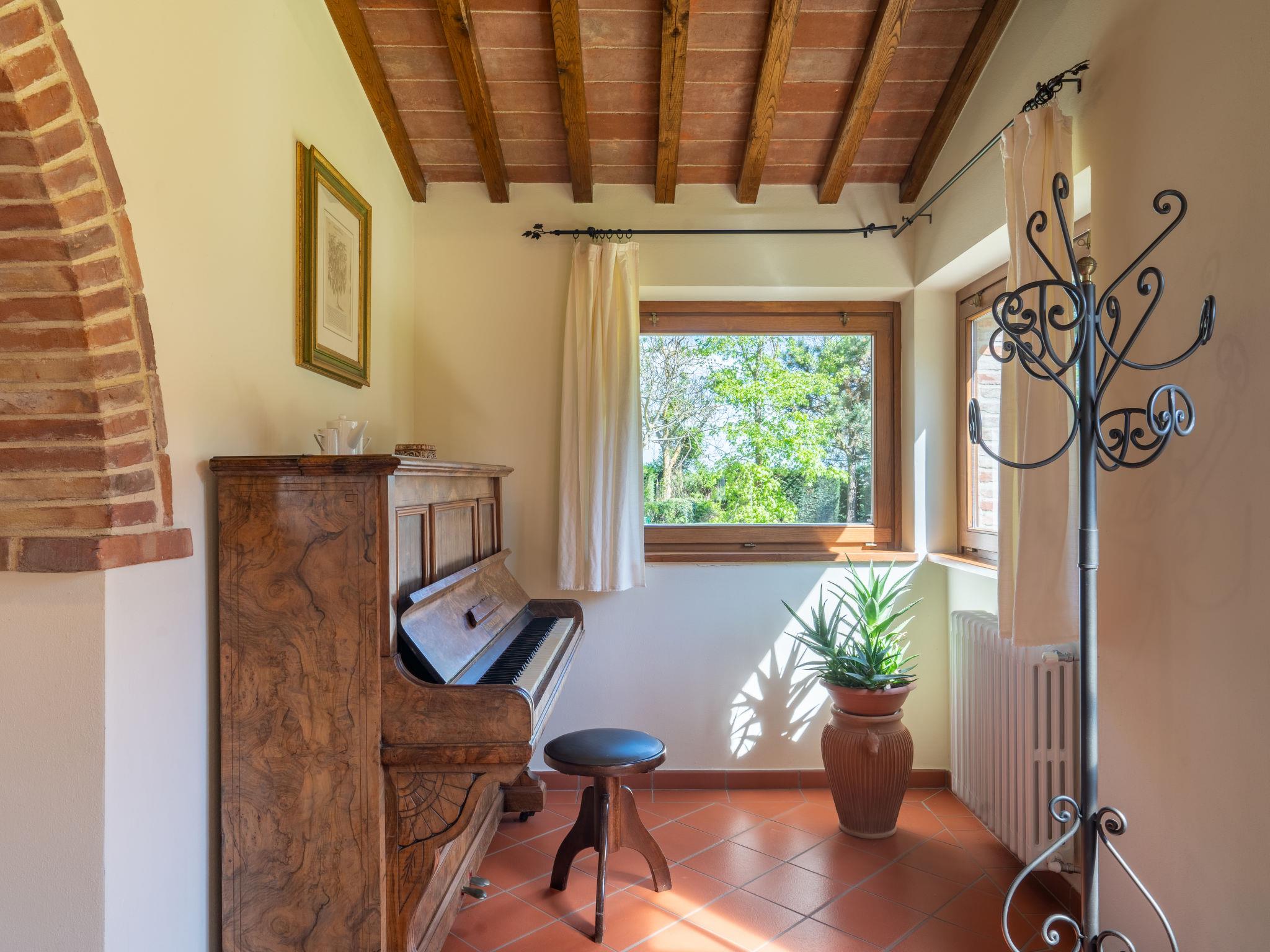 7-room house 270 m2 on 2 levels, on the ground floor. Renovated, comfortable and tasteful furnishings: large living room with open-hearth fireplace, shower/bidet/WC, satellite TV, digital TV and international TV channels (flat screen), CD-player and DVD. Exit to the garden. Large living room with open-hearth fireplace, shower/bidet/WC and satellite TV. Kitchen (5 hot plates, oven, dishwasher, microwave, electric coffee machine) with dining table. Upper floor: 1 double bedroom with shower/bidet/WC. 1 room with 2 beds. 1 room with 1 bed (140 cm). 2 double bedrooms. 2 baths/bidet/WC. Natural stone floors. Garden 800 m2. Terrace furniture, barbecue. Beautiful panoramic view of the countryside. Facilities: washing machine, iron, mosquito net. Internet (WiFi, free). Please note: maximum 1 pet/ dog allowed. TV only IT, DE, EN. No internal connecting door between the separated properties. There is a utility room with sink on the ground floor. The house is equipped with a cleaning system with central filter. IT051016C29YYZ7B4Z - IT051016C2M9TTCUEB