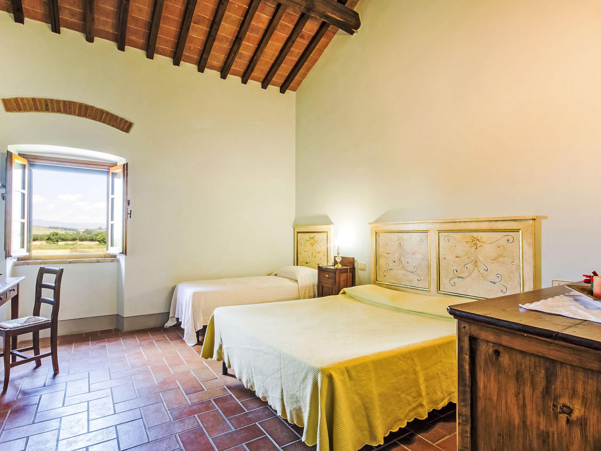 "La Salciaia", 7-room house 450 m2 on 2 levels on 1st floor. Spacious and bright, comfortable and tasteful furnishings: large lounge with open-hearth fireplace, dining table and satellite TV. Exit to the loggia. 1 double bedroom with bath/shower/bidet/WC. 2 double bedrooms. 1 room with 1 bed and 1 double bed. 1 double bedroom. Kitchenette (5 hot plates, oven, dishwasher, toaster, kettle, microwave, freezer, electric coffee machine). 2 showers/bidet/WC, bath/shower/WC. Upper floor: 1 large room with 1 double sofabed, 1 double bed and air conditioning. Terrace. Terrace furniture. Beautiful view of the countryside. Facilities: washing machine, iron, mosquito net, children's high chair, baby cot, hair dryer. Internet (WiFi, free). Suitable for families. Maximum 1 pet/ dog allowed. IT051025B50J6VUYOD