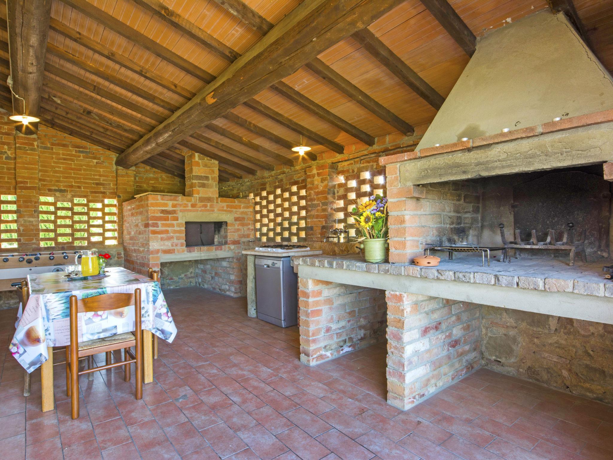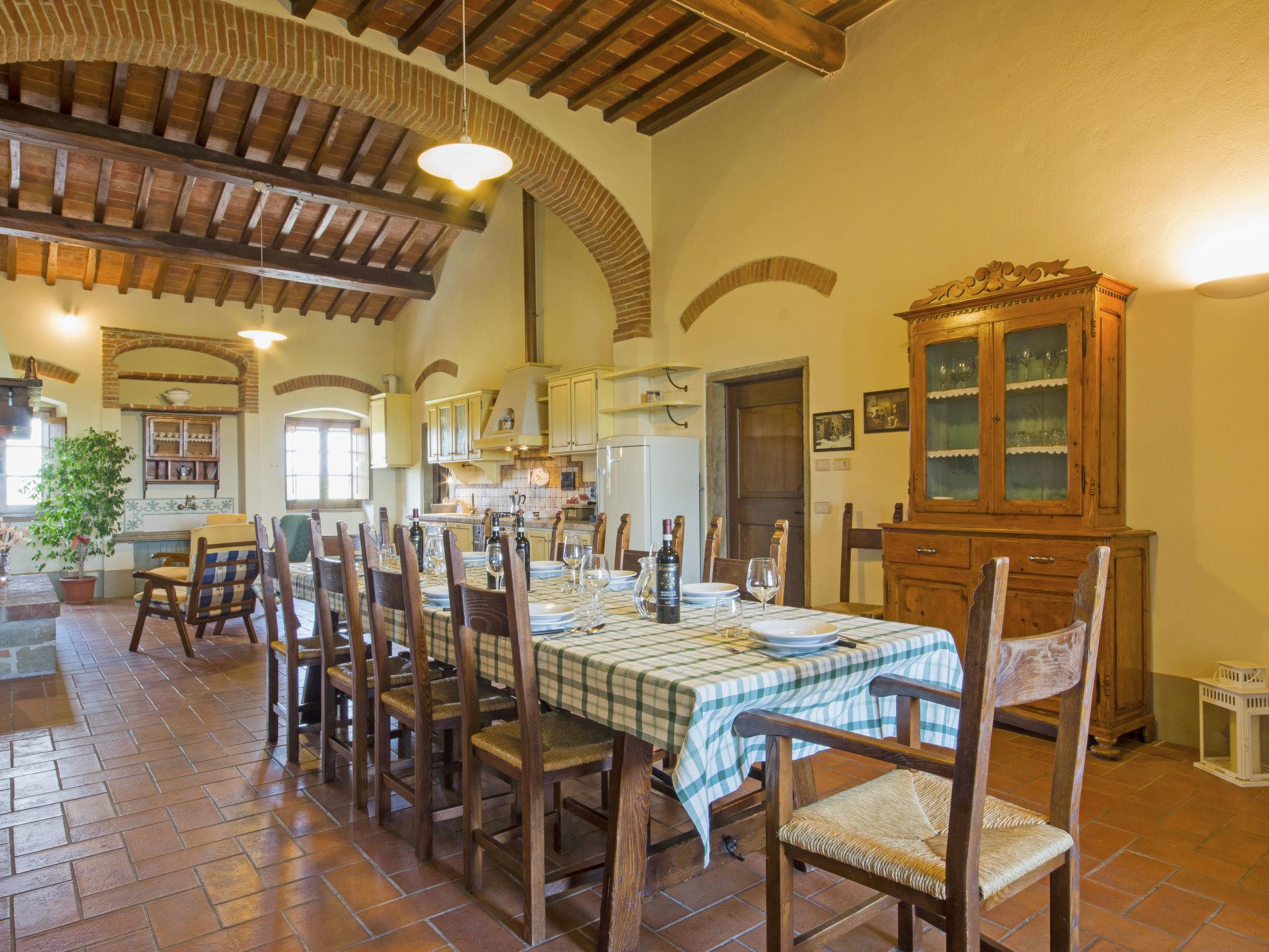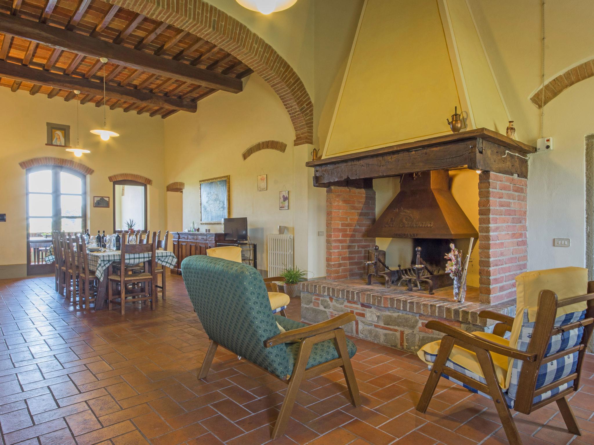 Farm house with characteristic pigeon-loft, beautifully renovated, with large outdoor areas provided with wood burning oven, r and gazebo, under the porch there are barbecue, pizza oven, dishwasher working top for eating al fresco near the swimming pool. It is surrounded by many sunflower fields. The property has automatic gates and offers total privacy beccaue the annex next to it is not for residential use. The interiors are evocative of a period house with a spacious living room with fireplace, big dining table, terracotta floorings, high beamed ceilings. The house is approx 2 km from the motorway access (800 m flying distance) which makes it ideal for visiting the most important towns in Tuscany. Very large, beautiful, comfortable villa, built in 1814, renovated, surrounded by meadows. 3 km from the centre of Monte San Savino, 7 km from the centre of Lucignano, 80 km from the centre of Firenze, in a sunny position, in the countryside. Private: property 6 ha, garden 2'000 m2 (fenced) with lawn, swimming pool fenced (6 x 12 m, depth 120 - 230 cm, seasonal availability: 18.May. - 05.Oct.) with internal staircase. Outdoor shower, table tennis, arbour, garden furniture, barbecue, children's playground (slide). In the house: table tennis, central heating system, washing machine, heating to be paid on the spot, heating available only from 01.Nov. - 07.Apr.. Room cleaning on request (extra). Cook on request (extra). Parking. Supermarket 3 km, shopping centre 12 km, bus stop 4 km, railway station "Monte San Savino" 3 km, thermal baths "Serre di Rapolano" 34 km. Riding stable 12 km. Nearby attractions: Arezzo 12 km, Montepulciano 33 km, Pienza 39 km, Siena 40 km, Cortona 42 km, Montalcino 46 km. Suitable for events.