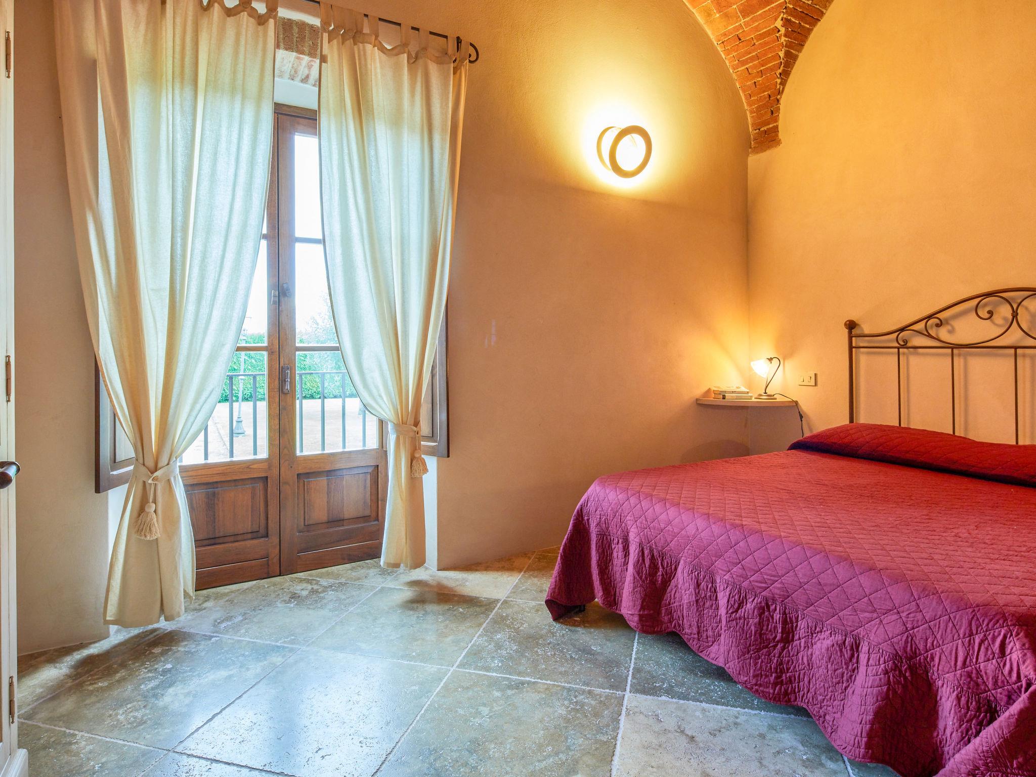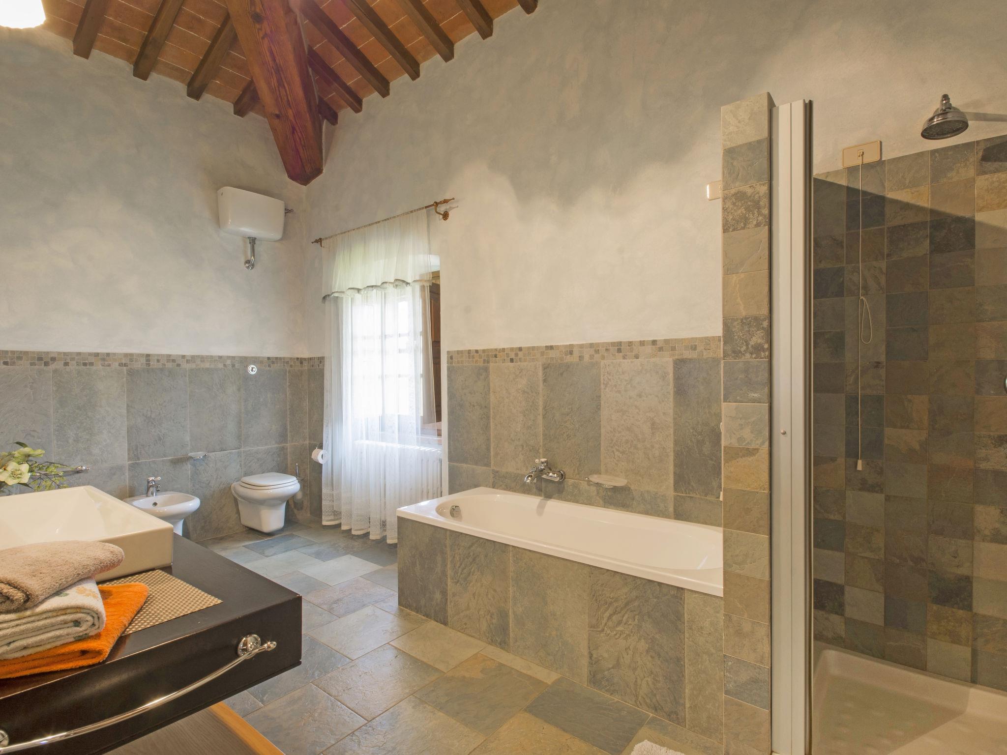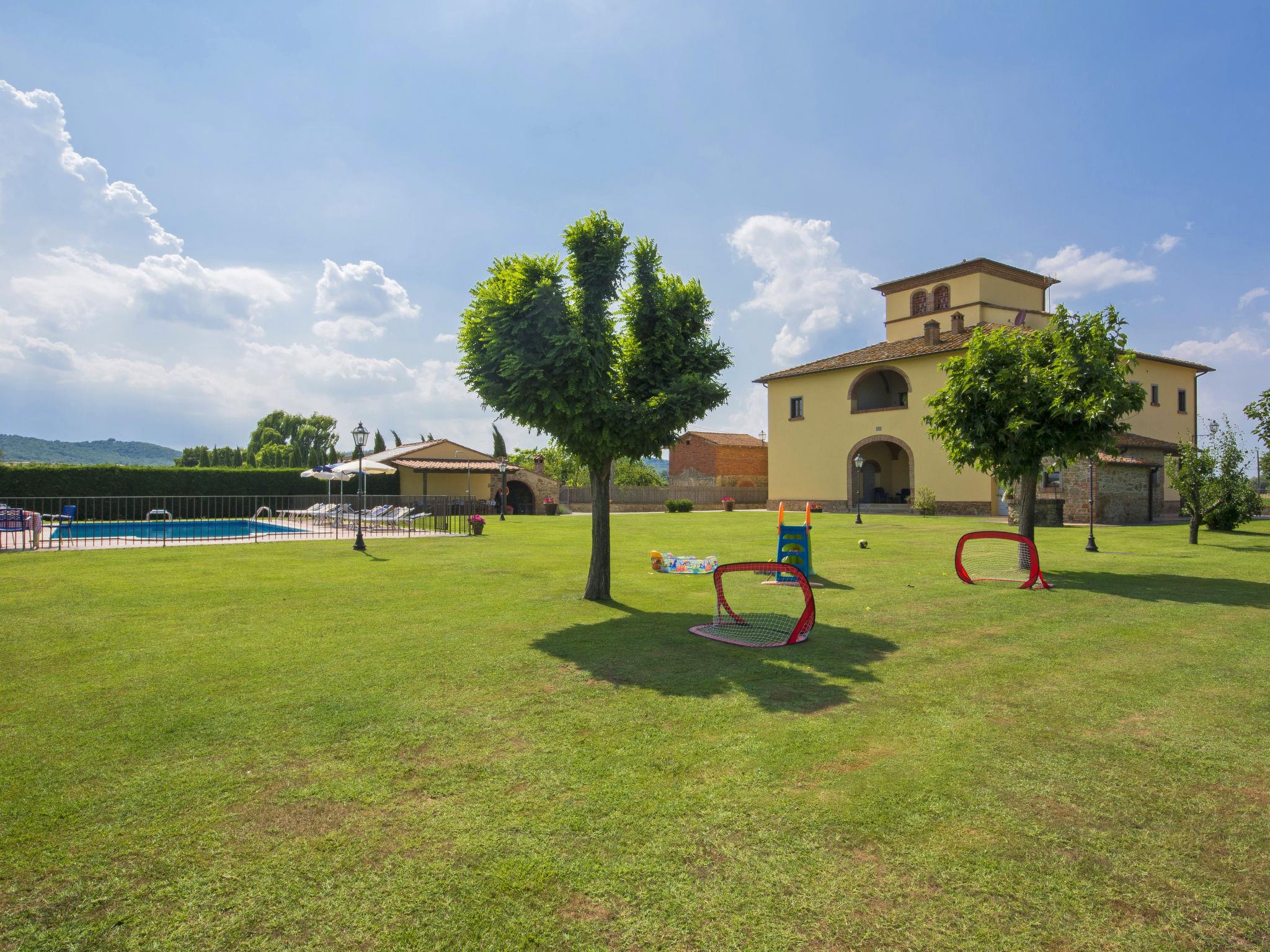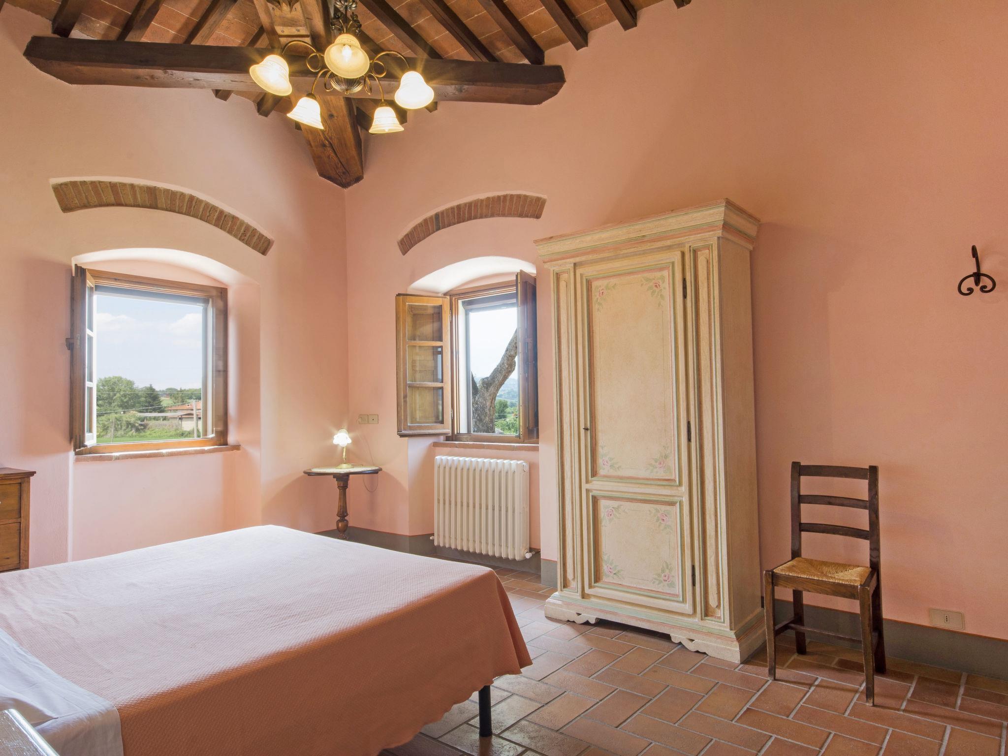Farm house with characteristic pigeon-loft, beautifully renovated, with large outdoor areas provided with wood burning oven, r and gazebo, under the porch there are barbecue, pizza oven, dishwasher working top for eating al fresco near the swimming pool. It is surrounded by many sunflower fields. The property has automatic gates and offers total privacy beccaue the annex next to it is not for residential use. The interiors are evocative of a period house with a spacious living room with fireplace, big dining table, terracotta floorings, high beamed ceilings. The house is approx 2 km from the motorway access (800 m flying distance) which makes it ideal for visiting the most important towns in Tuscany. Very large, beautiful, comfortable villa, built in 1814, renovated, surrounded by meadows. 3 km from the centre of Monte San Savino, 7 km from the centre of Lucignano, 80 km from the centre of Firenze, in a sunny position, in the countryside. Private: property 6 ha, garden 2'000 m2 (fenced) with lawn, swimming pool fenced (6 x 12 m, depth 120 - 230 cm, seasonal availability: 18.May. - 05.Oct.) with internal staircase. Outdoor shower, table tennis, arbour, garden furniture, barbecue, children's playground (slide). In the house: table tennis, central heating system, washing machine, heating to be paid on the spot, heating available only from 01.Nov. - 07.Apr.. Room cleaning on request (extra). Cook on request (extra). Parking. Supermarket 3 km, shopping centre 12 km, bus stop 4 km, railway station "Monte San Savino" 3 km, thermal baths "Serre di Rapolano" 34 km. Riding stable 12 km. Nearby attractions: Arezzo 12 km, Montepulciano 33 km, Pienza 39 km, Siena 40 km, Cortona 42 km, Montalcino 46 km. Suitable for events.