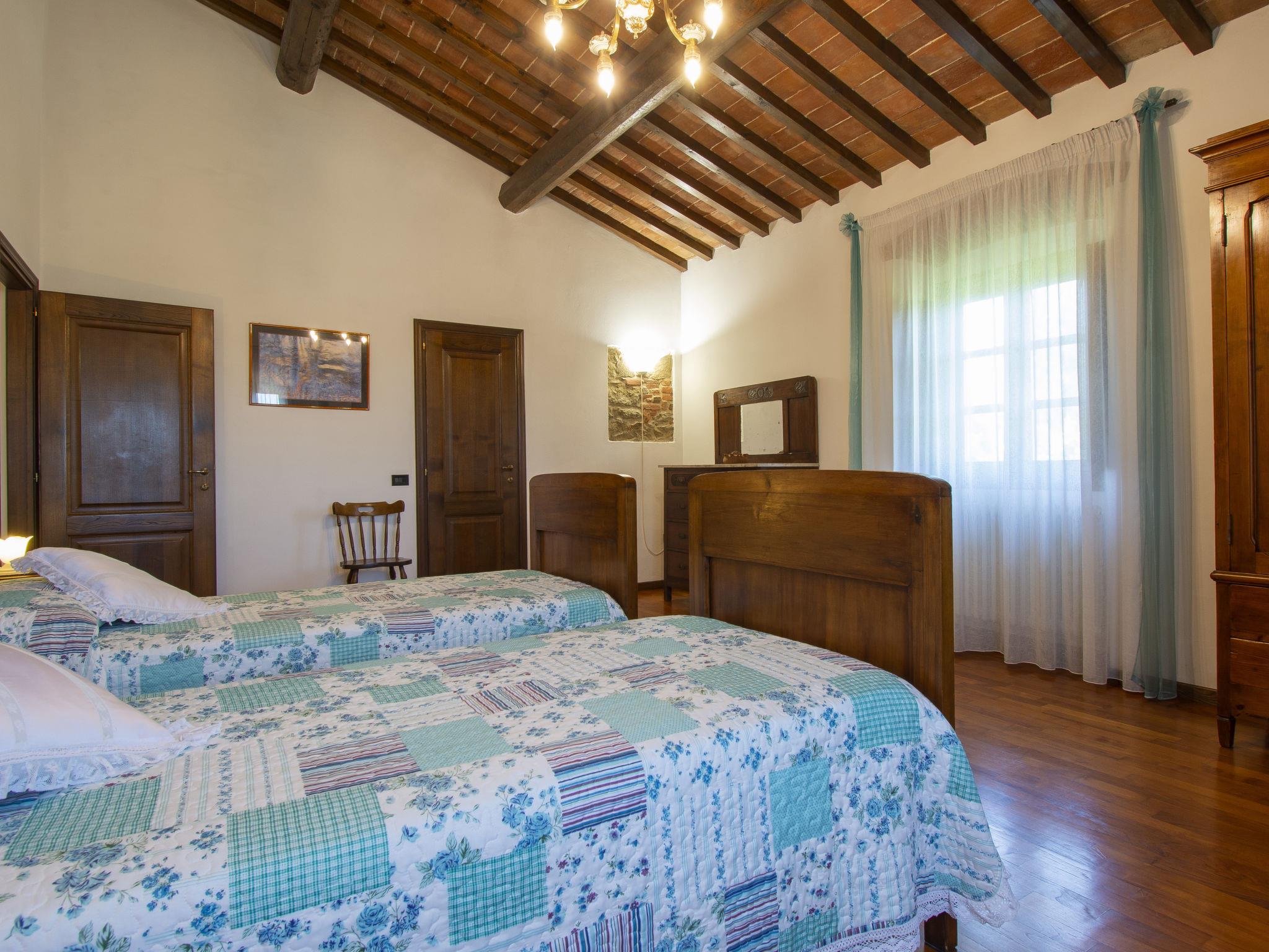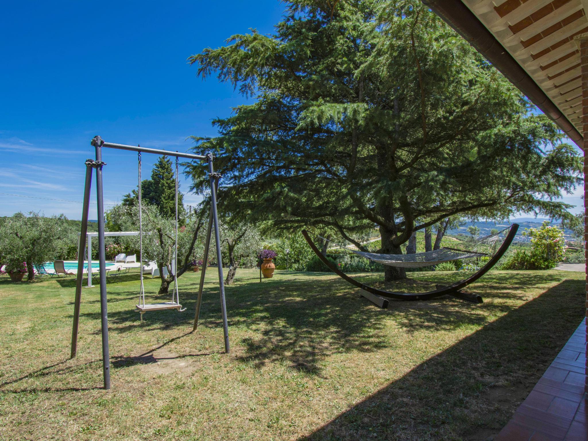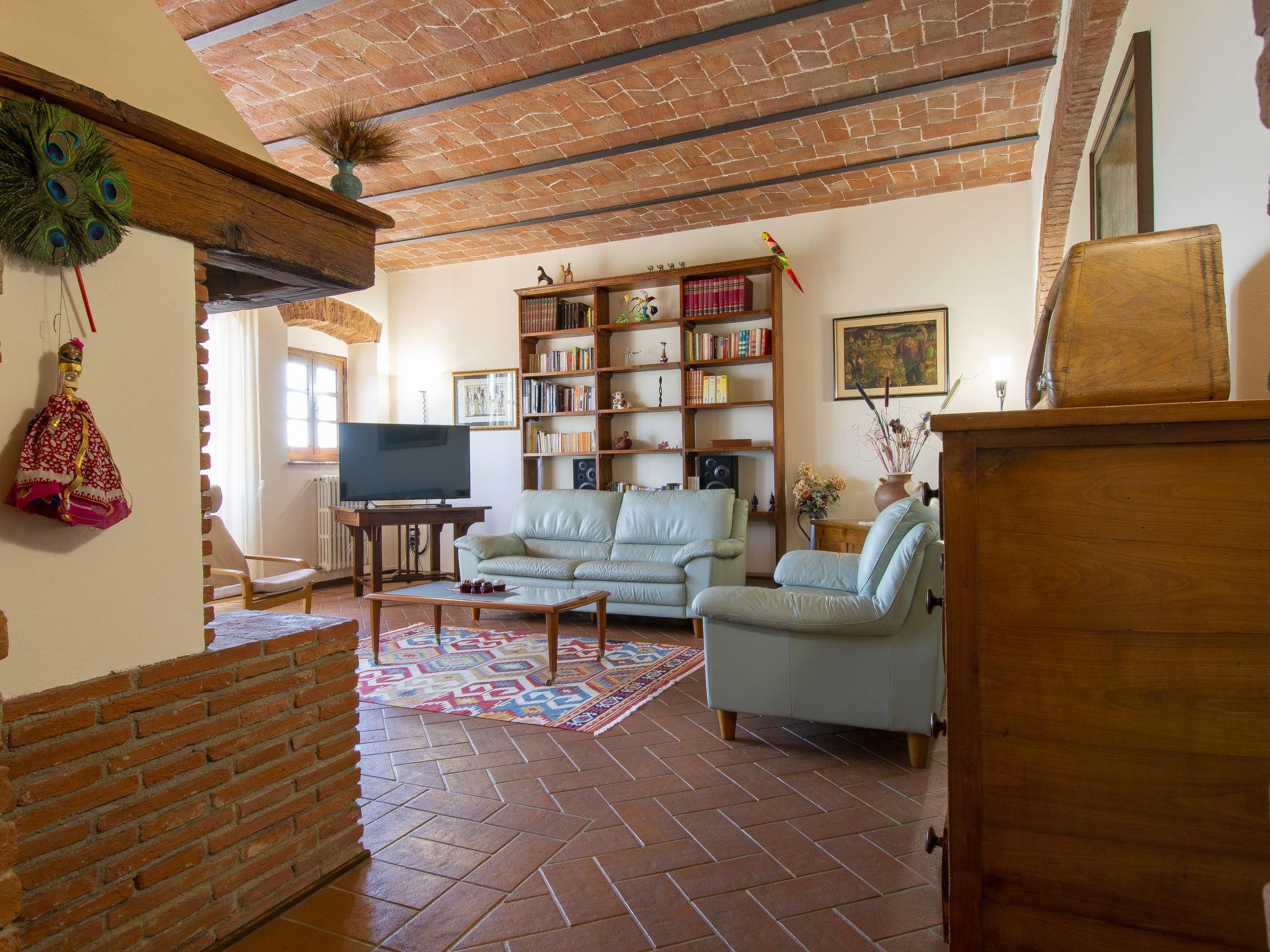 6-room house 220 m2 on 2 levels. Bright, cosy furnishings: living room with open-hearth fireplace, satellite TV and CD-player. Exit to the terrace. Living room. Exit to the garden. Kitchen (oven, dishwasher, 4 gas rings, toaster, kettle, electric coffee machine) with dining table. Exit to the terrace. Shower/WC. Upper floor: 1 room with 1 bed (80 cm), 1 french bed (160 cm). 1 room with 1 bed (80 cm), 1 french bed (160 cm). 1 room with 2 beds (80 cm). Bath/shower/WC. Gas heating. Parquet floors, natural stone floors. Large patio 160 m2. Terrace furniture, barbecue, deck chairs (8). Marvellous view of the countryside. Facilities: washing machine, iron, children's high chair, baby cot for up to 2 year olds. Internet (WiFi, free). Parking (fenced) at the house. Please note: non-smoking house. Private entrance. No mandatory extra charges to be paid on-site except for local tax. IT048008C27ZM853OL