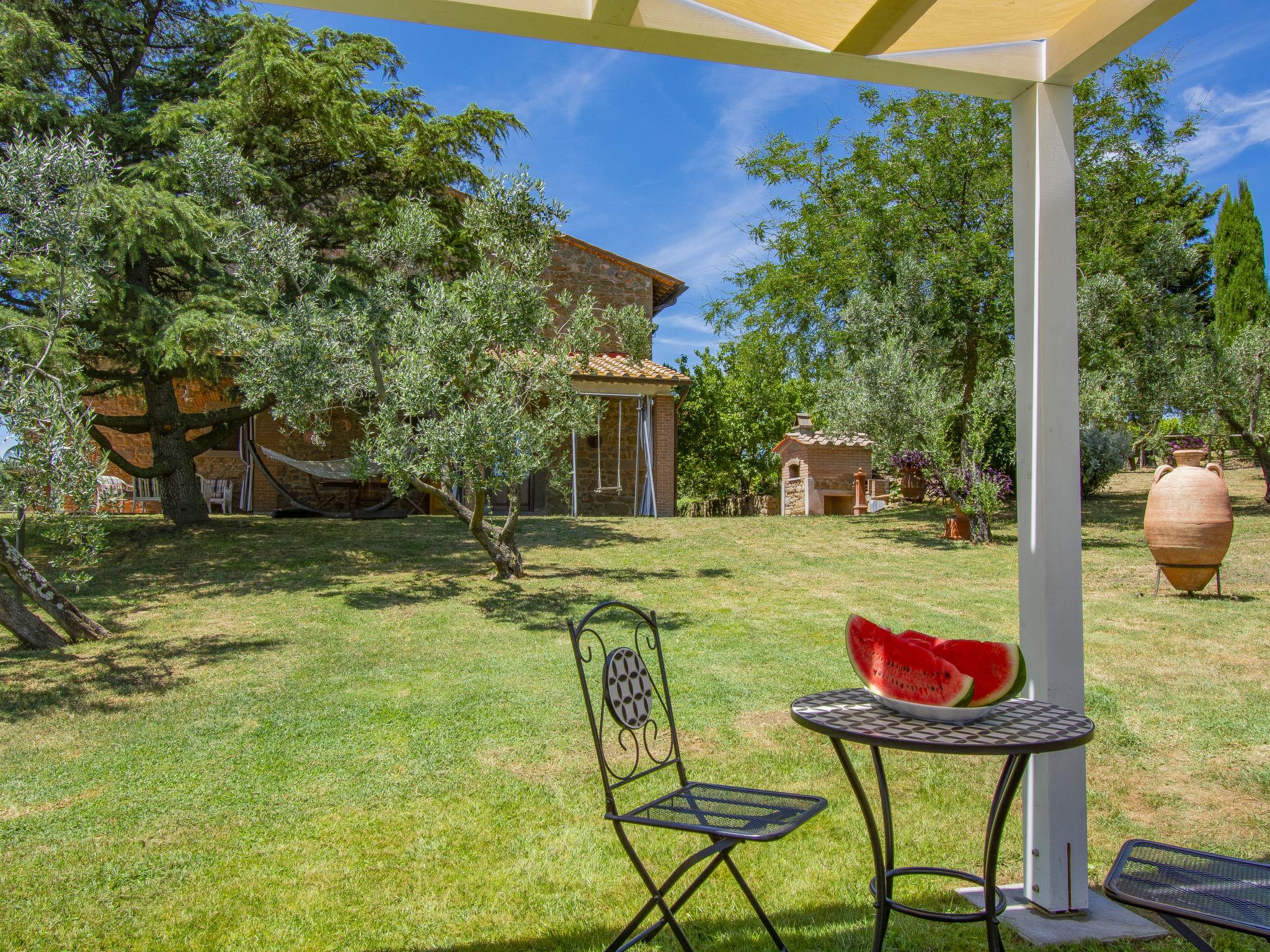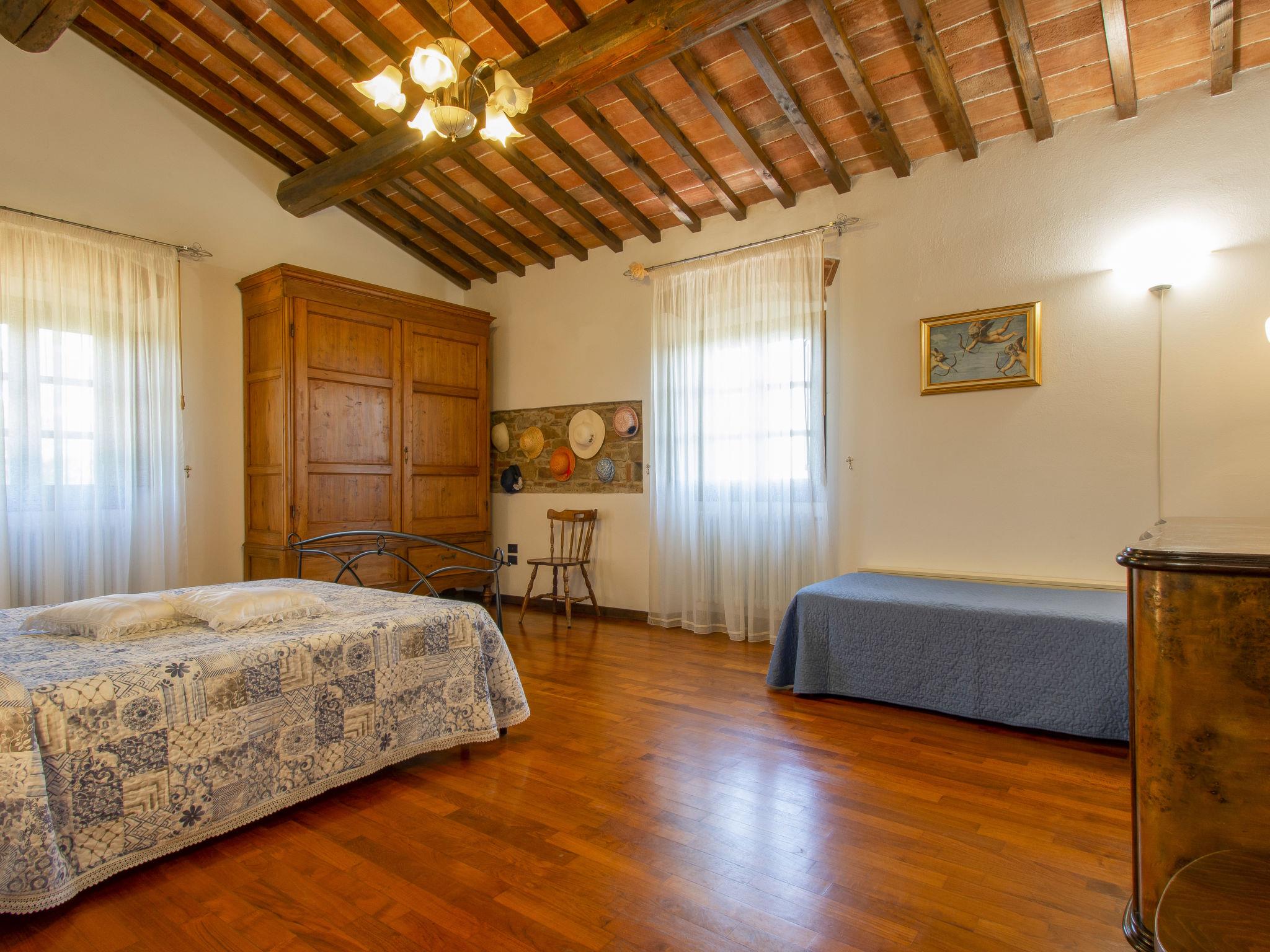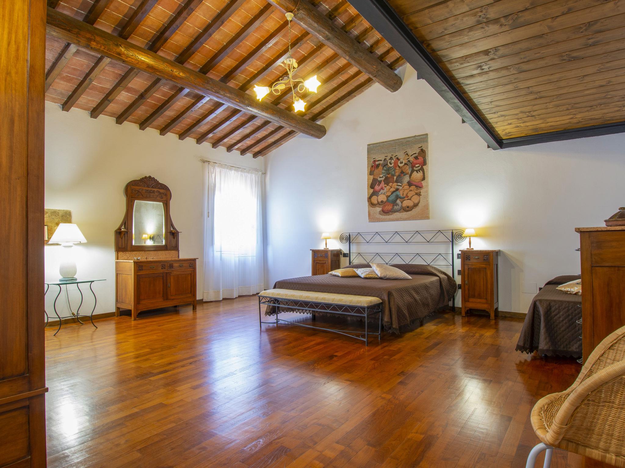 6-room house 220 m2 on 2 levels. Bright, cosy furnishings: living room with open-hearth fireplace, satellite TV and CD-player. Exit to the terrace. Living room. Exit to the garden. Kitchen (oven, dishwasher, 4 gas rings, toaster, kettle, electric coffee machine) with dining table. Exit to the terrace. Shower/WC. Upper floor: 1 room with 1 bed (80 cm), 1 french bed (160 cm). 1 room with 1 bed (80 cm), 1 french bed (160 cm). 1 room with 2 beds (80 cm). Bath/shower/WC. Gas heating. Parquet floors, natural stone floors. Large patio 160 m2. Terrace furniture, barbecue, deck chairs (8). Marvellous view of the countryside. Facilities: washing machine, iron, children's high chair, baby cot for up to 2 year olds. Internet (WiFi, free). Parking (fenced) at the house. Please note: non-smoking house. Private entrance. No mandatory extra charges to be paid on-site except for local tax. IT048008C27ZM853OL