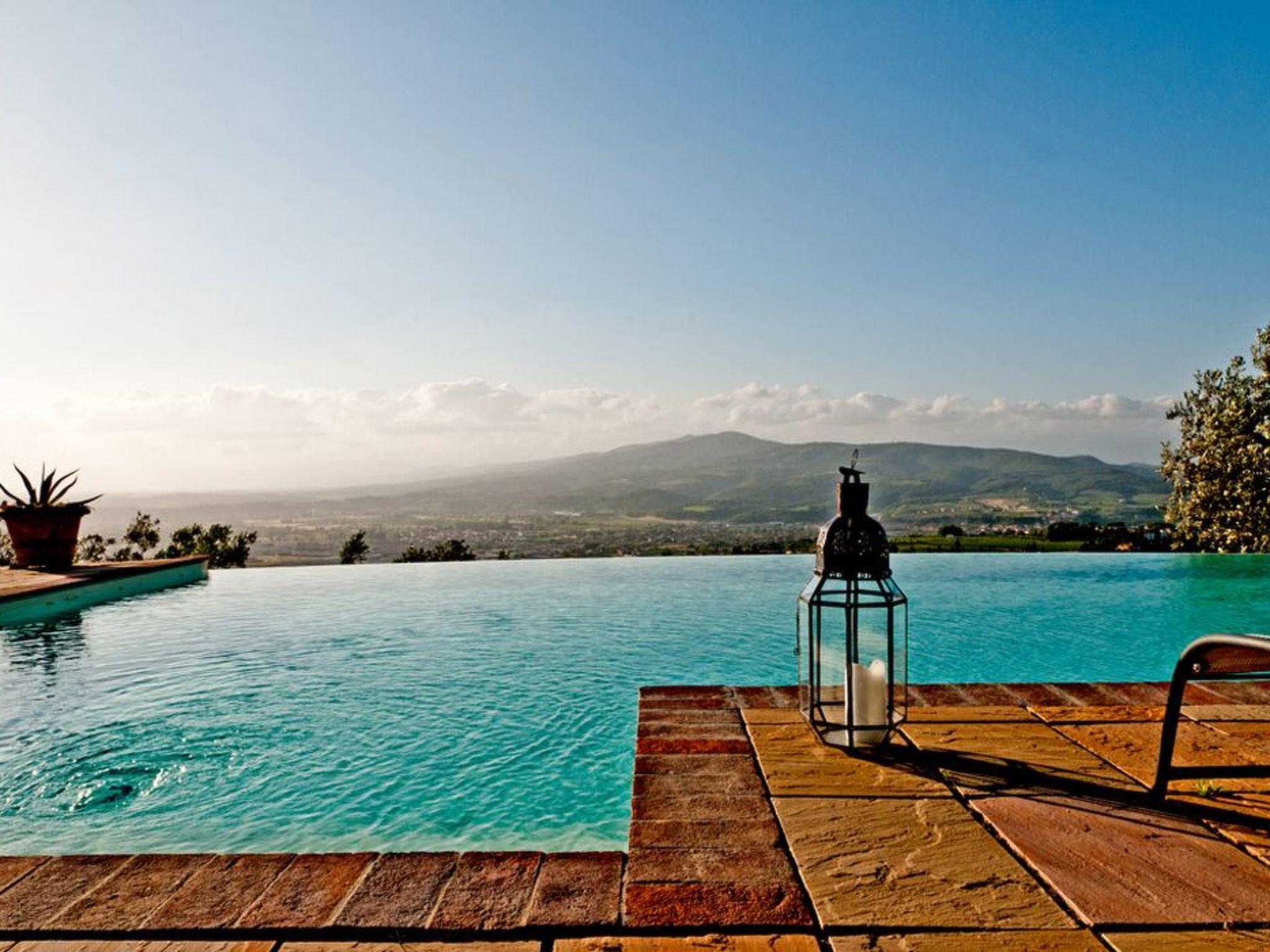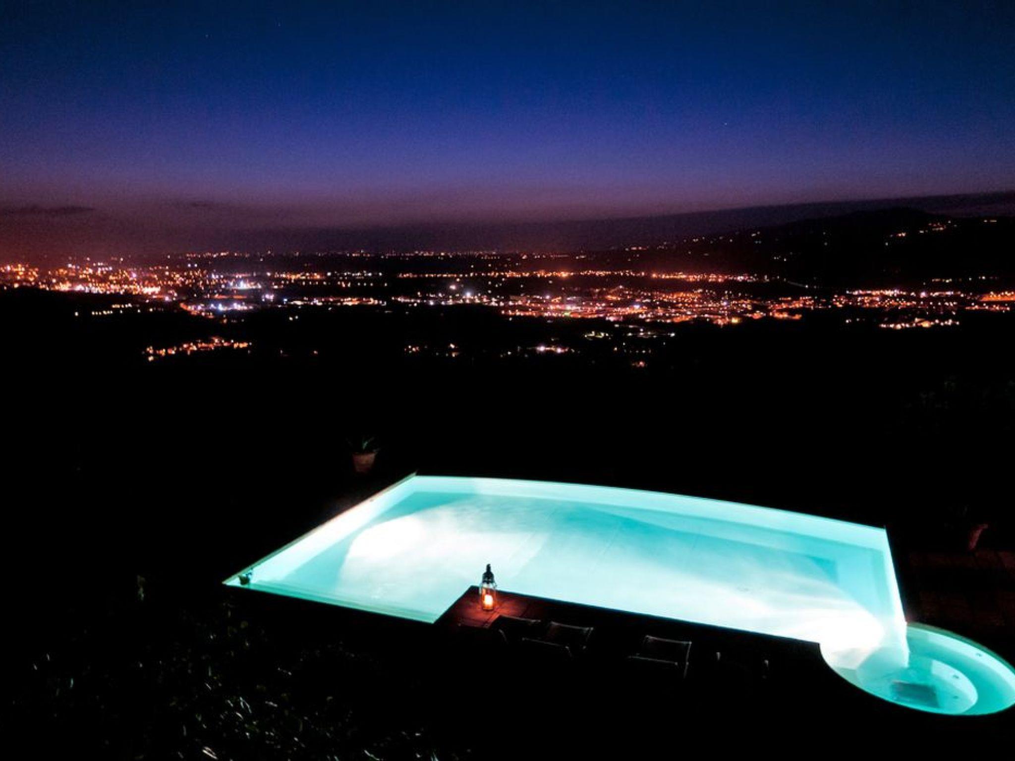 Outside there is a large and bright veranda furnished with table, chairs and deckchairs, where it is possible to sunbathe quietly, have wonderful al fresco breakfasts or romantic dinners, and where our guests can relax whenever they wish, enjoying a suggestive view in complete peace. The beautiful swimming pool (10.5 x 7.5 m) with salt water system and whirlpool area, equipped with sun loungers, table and chairs, is surrounded by lawn and framed by rolling hills, an ideal place to relax and take a refreshing dip. It was built near the olive grove, far from any noise that might disturb the tranquillity of those who prefer to enjoy the quiet of the Tuscan countryside. Use of the pool is reserved for guests and the owners who live in the house next door. The property is also equipped with heating, a mains socket for internet connection, washing machine, iron and ironing board, barbecue, kettle, moka and American coffee machine, safe, alarm system, ceiling fans, first-aid kit, hair dryer, torch, automatic gate, free covered parking and a spacious, independent garden. The house is located in a particularly charming part of Chianti, above the Arno valley and about 230 metres above sea level. The most famous Tuscan cities are all within easy reach: only 20 minutes from Florence, 10 minutes from Vinci and San Miniato, 30 minutes from Pisa, 50 minutes from Siena, Volterra, Monteriggioni and San Gimignano. The structure follows the formula of the 5 basic ingredients: Personality, Courtesy, Tranquillity, Charm, Satisfaction of our guests.