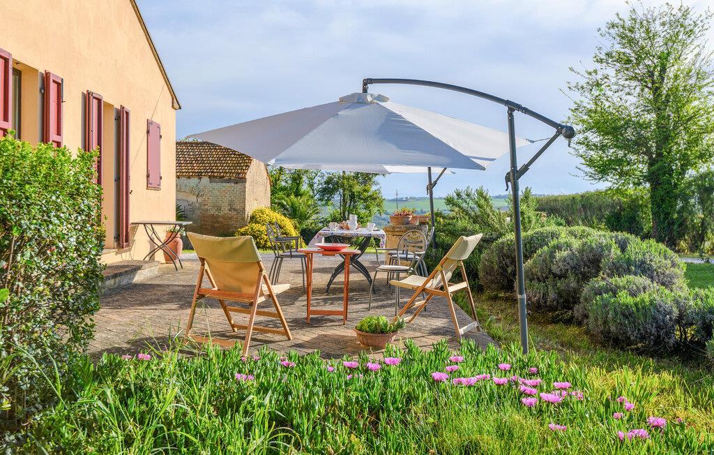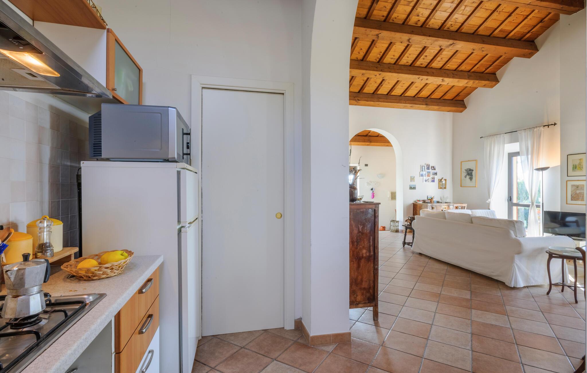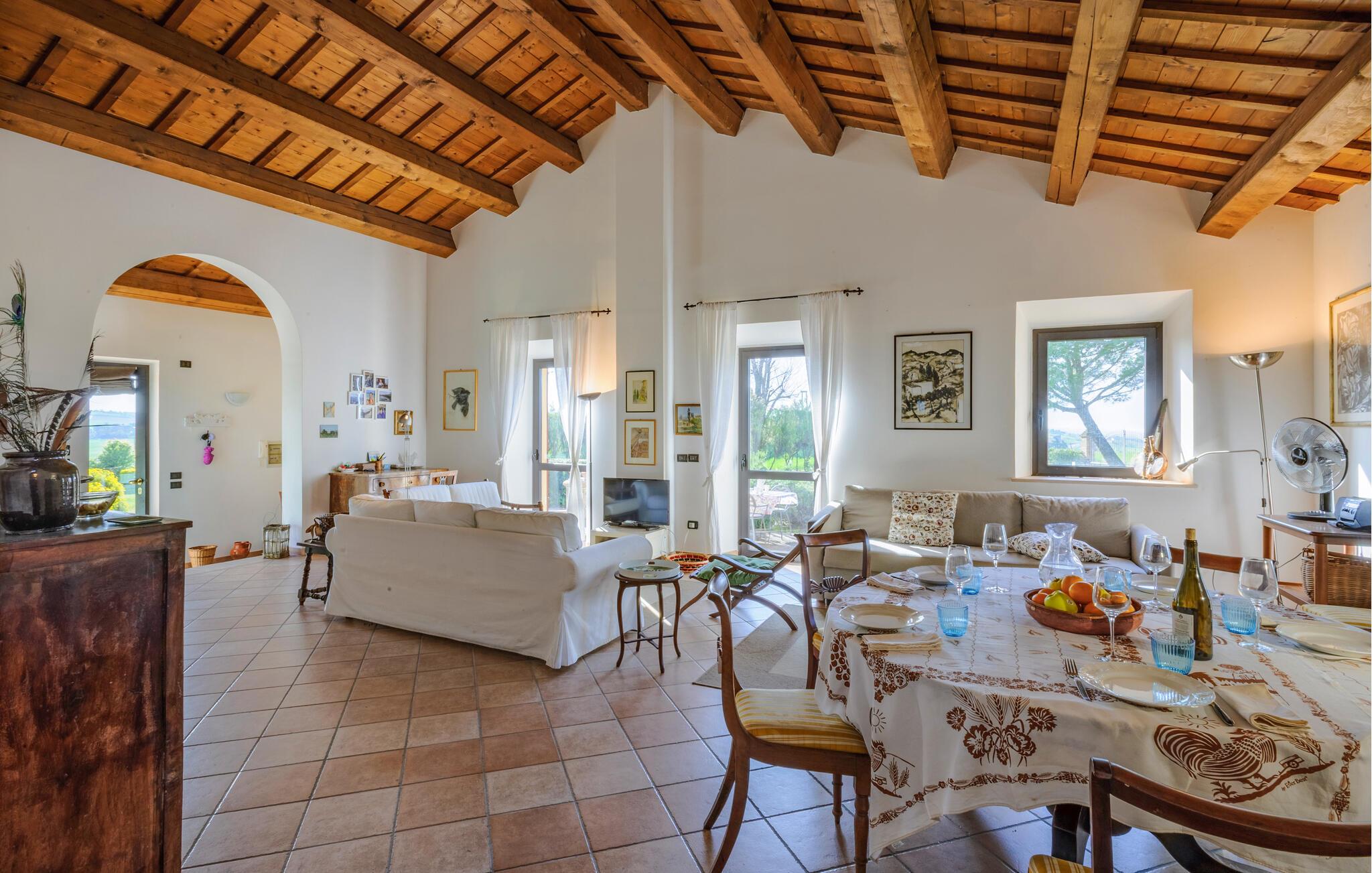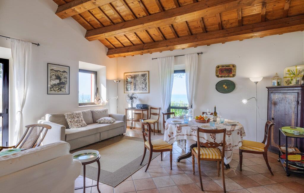 Tilbring en drømmeferie i dette charmerende feriehus i Montemarciano. De lyse rum og de høje trælofter skaber en varm og indbydende atmosfære. Nyd fælles måltider i det hyggelige spiseområde, som harmonisk er forbundet med køkkenet. Lad jer inspirere af den traditionelle indretning og føl jer hjemme. Træd ud på terrassen og start dagen med en afslappet morgenmad under åben himmel, mens I nyder udsigten over den smukt vedligeholdte have. Benyt jer af den rolige atmosfære til afslappede timer udendørs og lyt til bladene, der rasler i vinden.