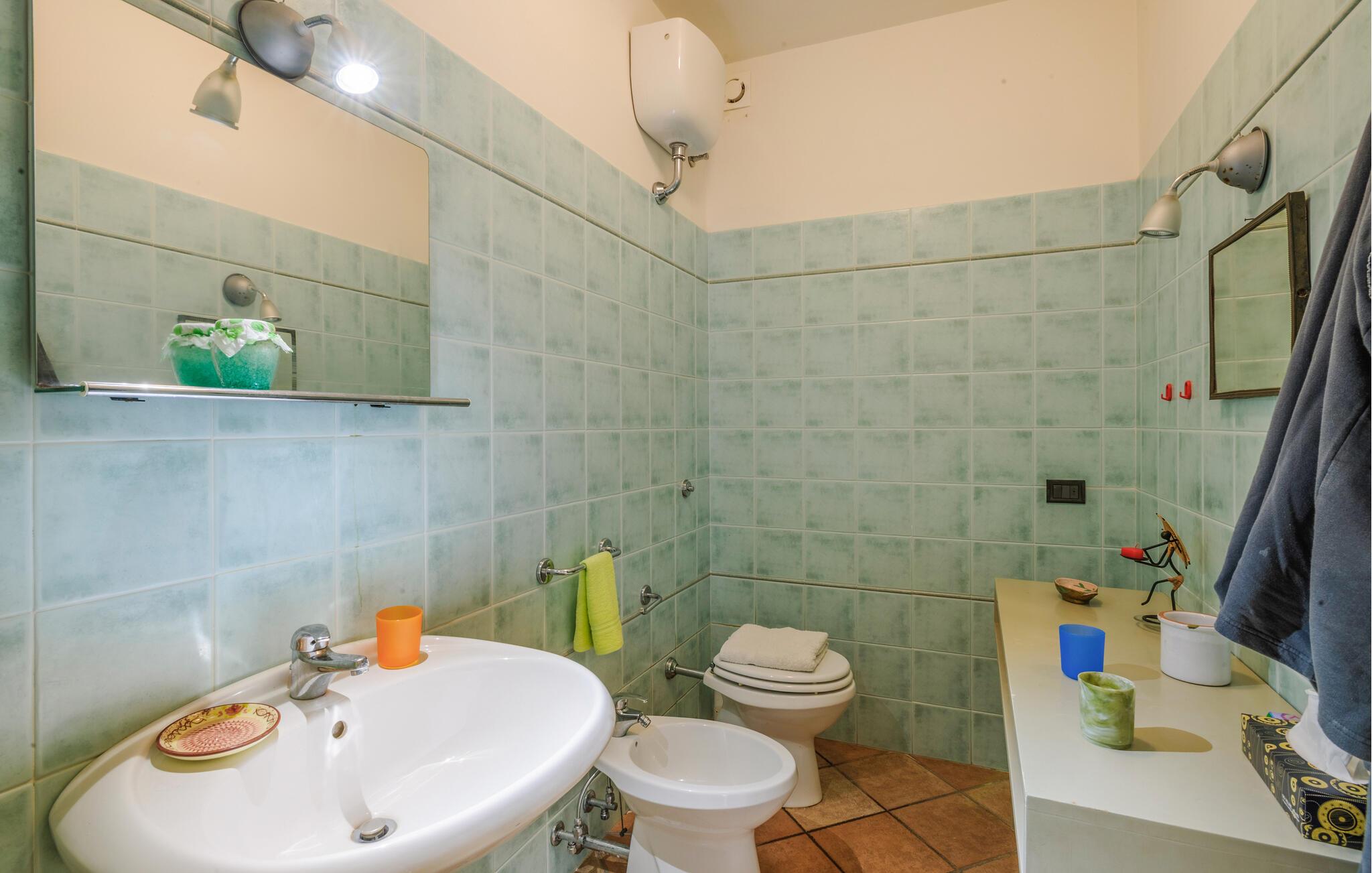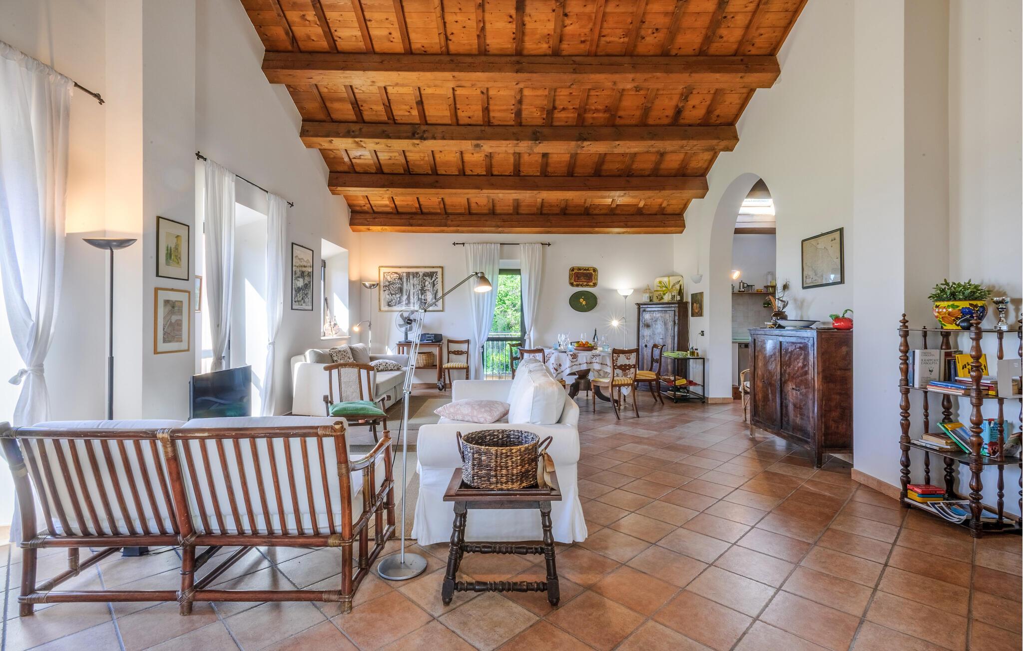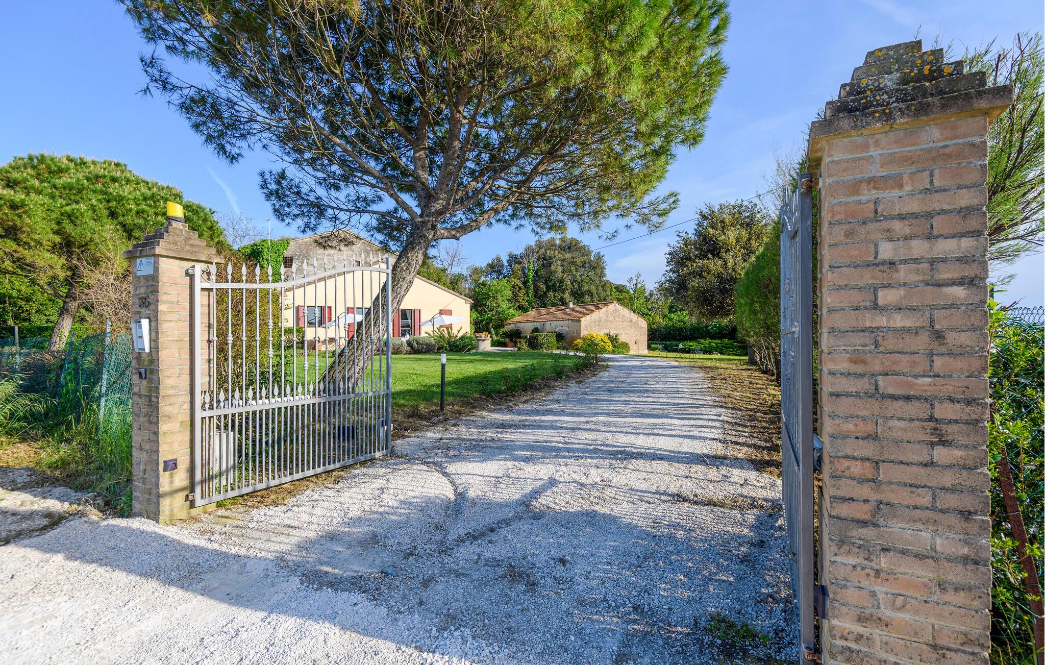 Tilbring en drømmeferie i dette charmerende feriehus i Montemarciano. De lyse rum og de høje trælofter skaber en varm og indbydende atmosfære. Nyd fælles måltider i det hyggelige spiseområde, som harmonisk er forbundet med køkkenet. Lad jer inspirere af den traditionelle indretning og føl jer hjemme. Træd ud på terrassen og start dagen med en afslappet morgenmad under åben himmel, mens I nyder udsigten over den smukt vedligeholdte have. Benyt jer af den rolige atmosfære til afslappede timer udendørs og lyt til bladene, der rasler i vinden.