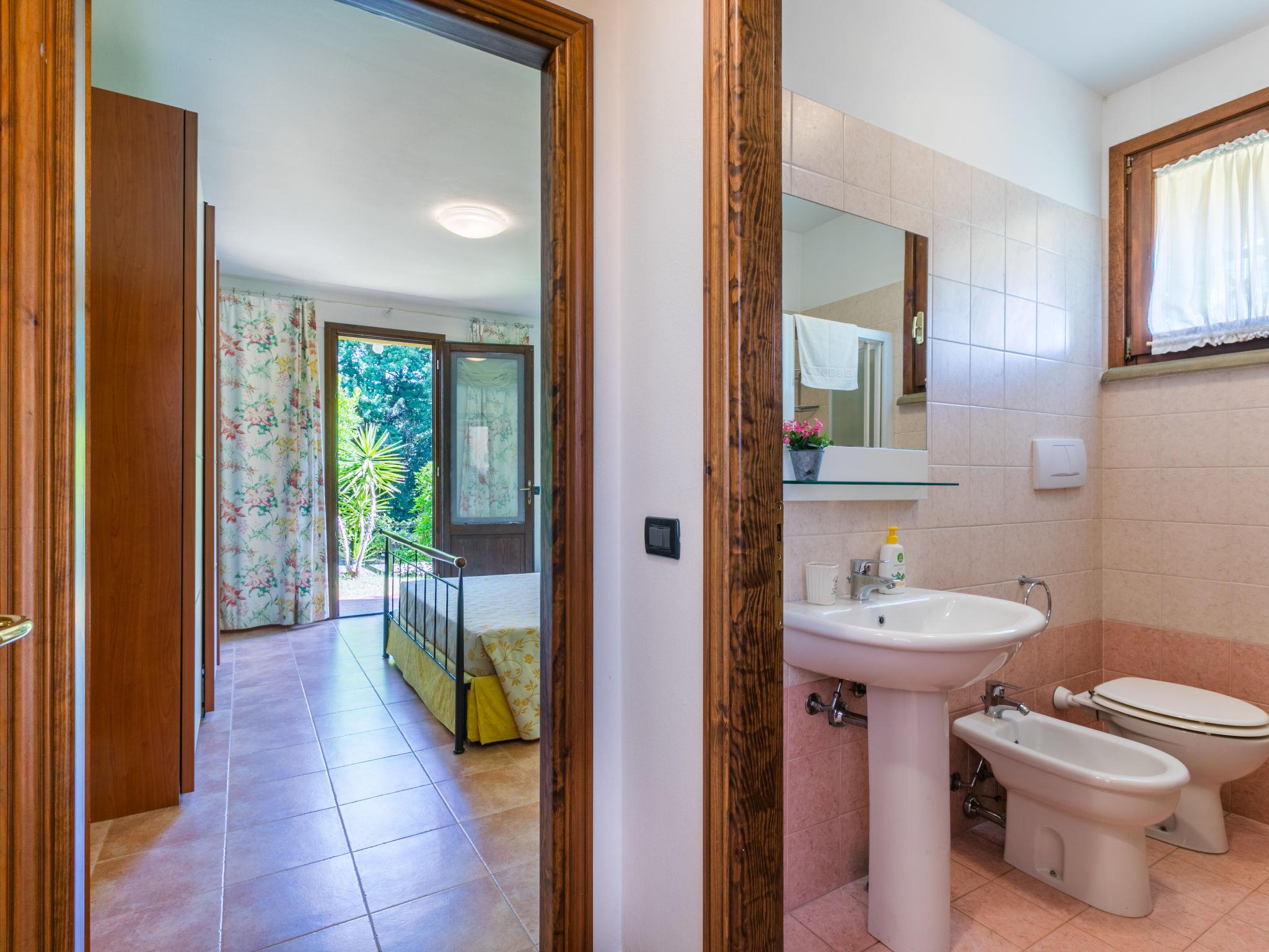 2-room apartment 55 m2, on the ground floor. Spacious, beautiful and stylish furnishings: living/sleeping room with 1 double sofabed, dining table and TV. Exit to the terrace. 1 room with 1 double bed and 1 sleeping facility. Exit to the garden. Open kitchen (oven, Gas stove, 4 gas rings, toaster, kettle, electric coffee machine). Shower/bidet/WC. Electric heating, air-conditioning. Patio. Terrace furniture, deck chairs. Facilities: washing machine, children's high chair, baby cot for up to 2 year olds (extra), hair dryer. Internet (WiFi, free). Parking space n 1 A. Please note: fire extinguisher. IT050020C2SL5H7ZUV