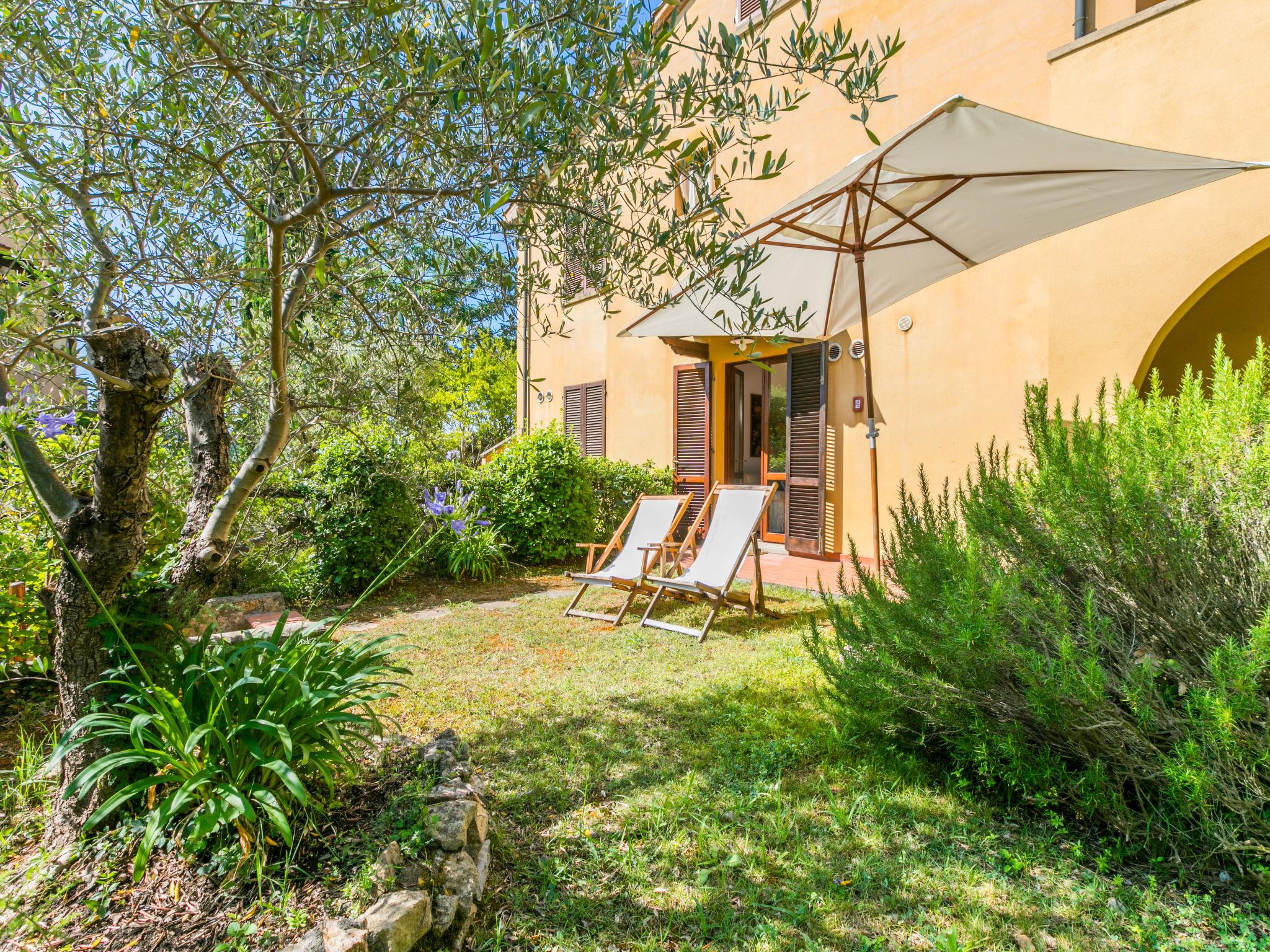 Residence "Il Castello", 2 storeys. 4 houses in the residence. 16 apartments in the property. On the outskirts, 700 m from the centre of Montescudaio, 11 km from the sea, 11 km from the beach. For shared use: property, swimming pool (10 x 20 m, seasonal availability: 15.Jun. - 15.Sep. pool opening hours: 09:00-14:00 and 16:00-19:00). Private: garden 50 m2 (fenced). Linen change (suppl. charge extra). Towel change (suppl. charge extra). Parking. Shop, grocery 700 m, restaurant 150 m, bus stop 80 m. Residence with electric gates.