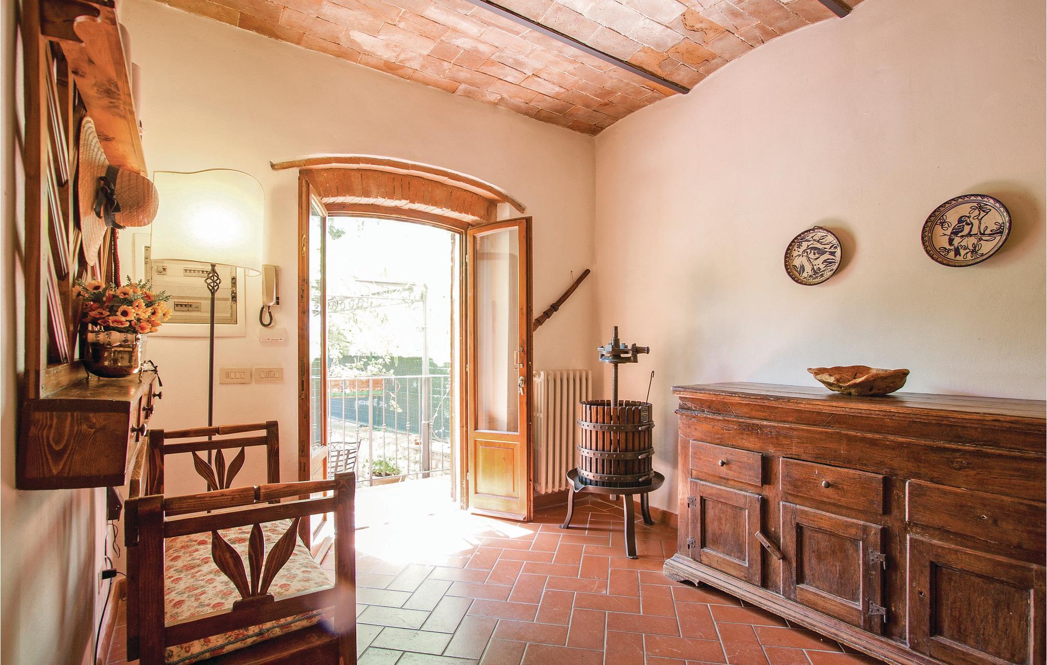 Bo i det smukke bakkelandskab der omgiver Chianti i dette charmerende feriehus, der engang var en landbrugsejendom. Huset ligger i panoramaomgivelser med en dejlig udsigt over det omliggende landskab. Afstande: Byerne Lucardo og Montalbino med egnstypiske restauranter, ca. en km, den lille by Fiano med dagligvarebutik og pizzeria 3 km, Montespertoli med alle former for butikker 7 km, Firenze ca. 30 km og Siena ca. 45 km. Til huset hører en have med havemøbler, en pool (der står på jorden), grill og en pavillon med bord og stole. Der er ca. 30 m til nærmeste landevej. Der barnestol og –seng i huset.