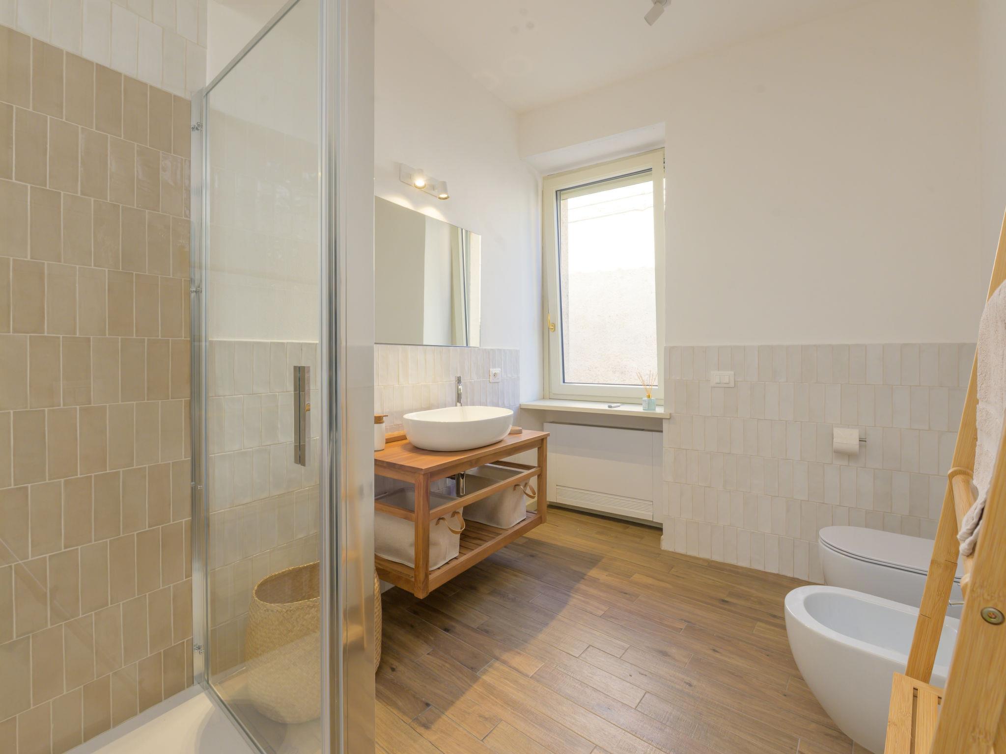 6-room house 200 m2 on 2 levels. Spacious and bright, modern and tasteful furnishings: 3 rooms, each room with 1 double bed (160 cm). 1 room with 2 beds (80 cm). 1 room with 1 french bed (140 cm). 5 showers/bidet/WC. On the lower ground floor: open large living/dining room with panoramic window with dining table and TV. Exit to the garden. Large, open kitchen (oven, dishwasher, 4 induction hot plates, electric coffee machine, cooking island) with dining table. Patio partly roofed, garden. Very beautiful panoramic view of the sea and the countryside. Facilities: washing machine, iron, baby cot for up to 2 year olds, hair dryer. Internet (WiFi, free). Parking at the house. E-charging station. Please note: maximum 1 pet/ dog allowed. Private entrance, fire extinguisher. IT053013C2WCFK9D2M
