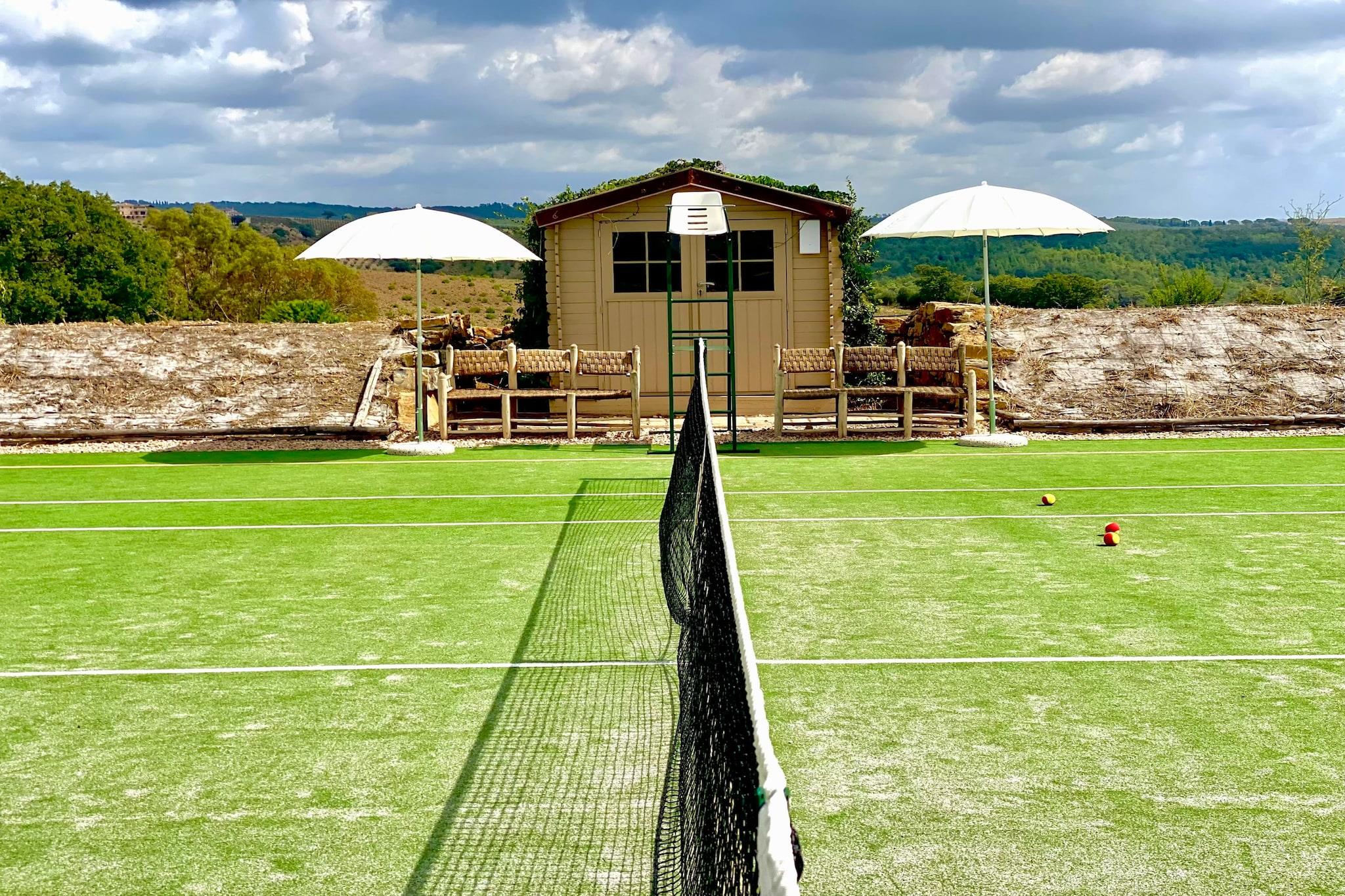 Beliggende i hjertet af Toscana og kun en kort køretur fra Middelhavskysten, er denne ekstraordinære villa, hvor tidløs italiensk charme møder luksuriøs komfort. Fuldt bemandet og smukt vedligeholdt, er det et paradis for familier eller grupper på op til seksten gæster, der søger afslapning, rekreation og raffineret livsstil - alt sammen mindre end to timer fra Rom. Beliggende i storslåede haver indrammet af gamle træer og med en betagende udsigt mod havet, inviterer ejendommen gæsterne til at slappe af midt i naturen. Dagene kan tilbringes med at svømme i den olympiske pool, perfektionere din serv på den private tennisbane eller forynge dig i fitnesscentret og saunaen. Din private kok og opmærksomme personale sørger for, at hvert øjeblik er ubesværet - fra afslappende morgenmad på terrassen til middage i stearinlysets skær under stjernerne. Villaens interiør er varmt og elegant med en rummelig stue med pejs, tv og spiseplads samt et fuldt udstyret køkken med moderne apparater. På tværs af syv smukt indrettede soveværelser og seks badeværelser kan gæsterne nyde afslappende privatliv - fra kingsize-suiter med eget badeværelse til hyggelige twin- og køjesengeværelser, der er ideelle til familier. Hver detalje er designet til komfort: aircondition, WiFi, grillplads, vaskeri, pengeskab og ladestander til elbiler. Børn er velkomne med et legeområde, en vugge, en høj stol og sikkerhedsgitre. Uanset om du nyder lokal vin på balkonen, udforsker de nærliggende landsbyer eller ser solnedgangen over de toscanske bakker, tilbyder denne villa den ægte italienske flugt - luksuriøst, roligt og uforglemmeligt.