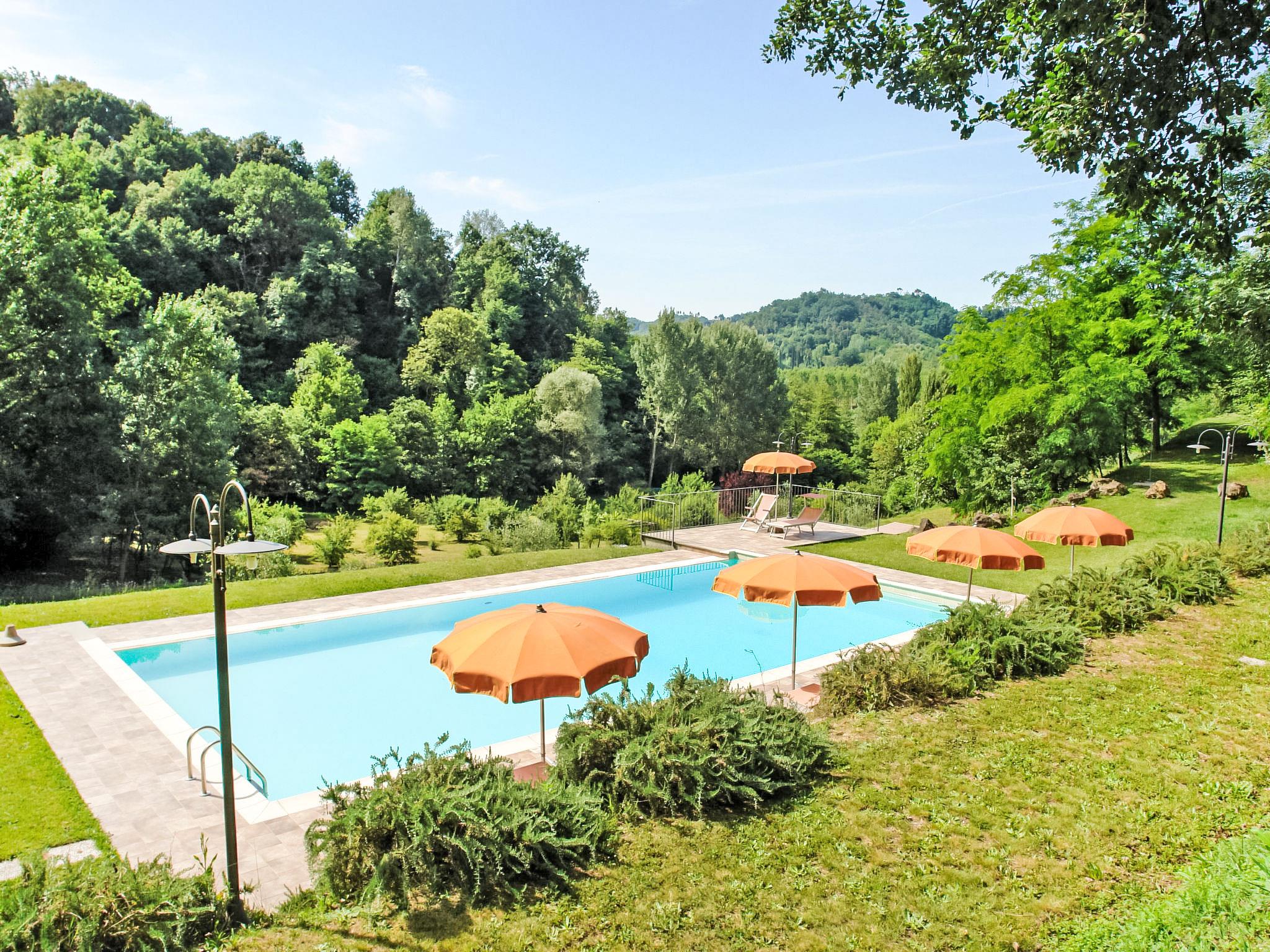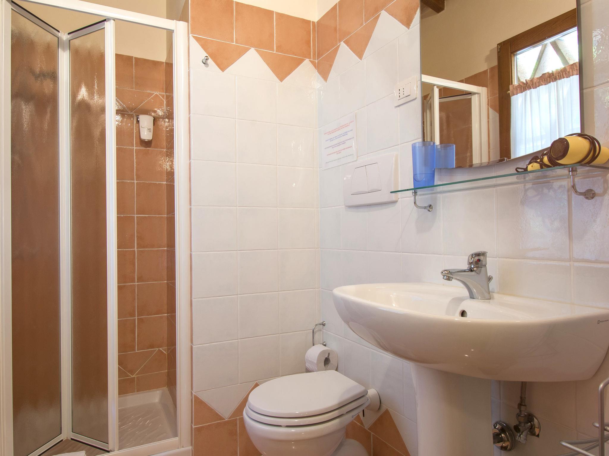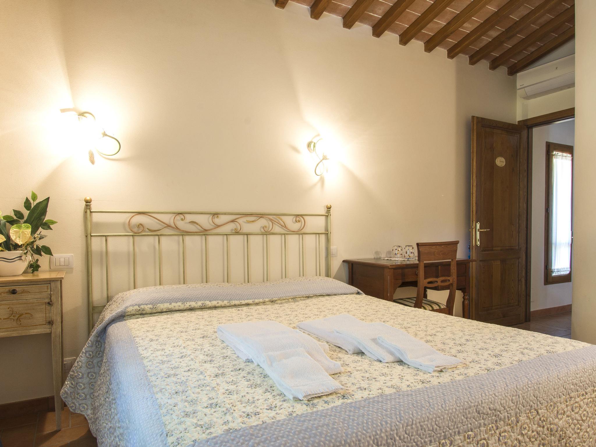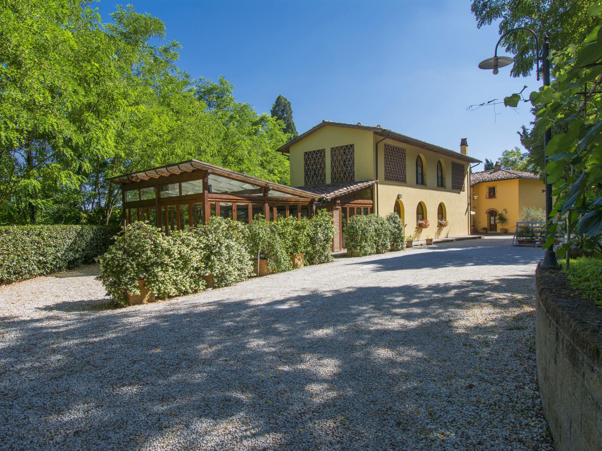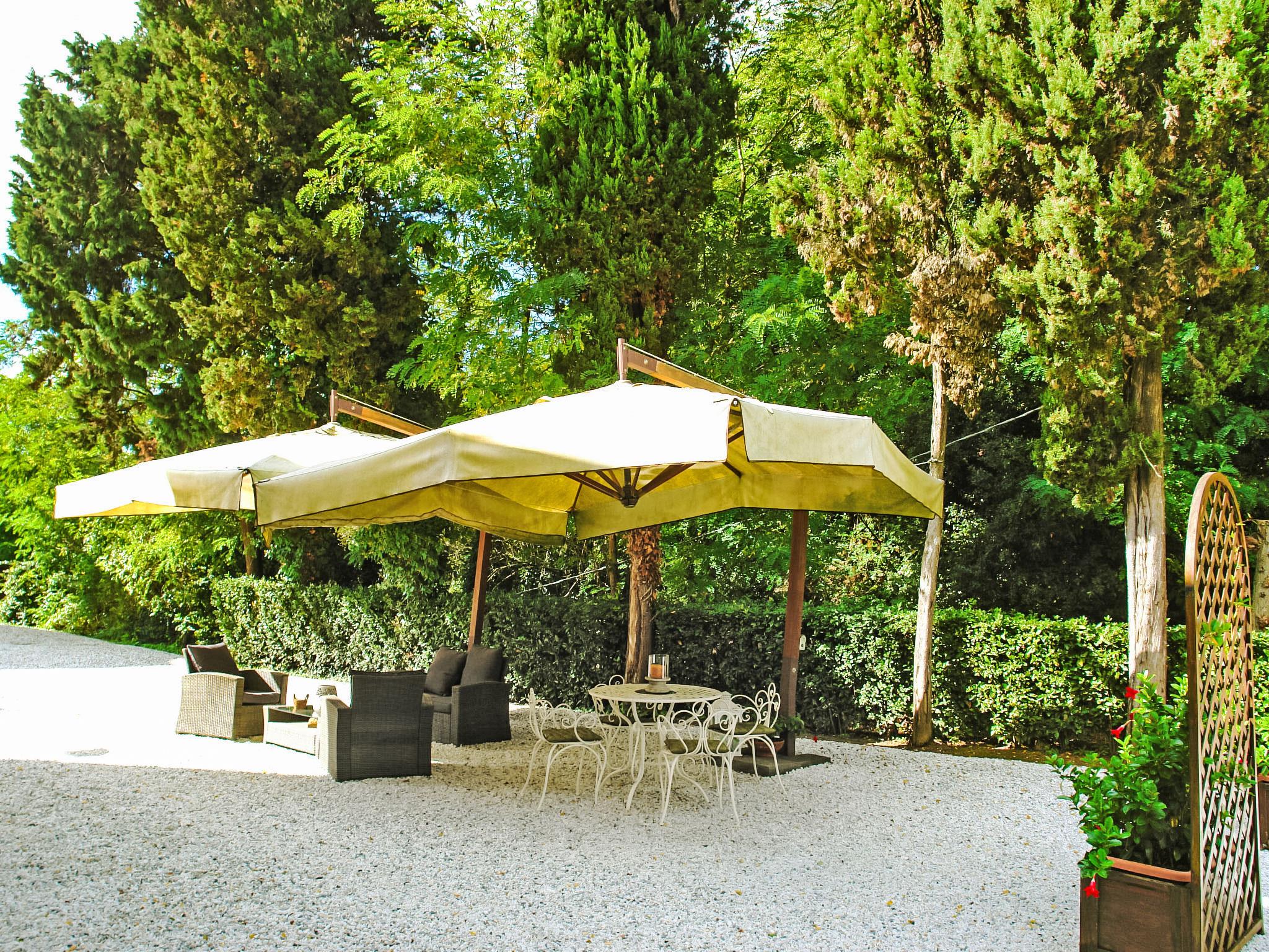 7-room villa 230 m2 on 2 levels, on the ground floor. Spacious, fully renovated, very tasteful furnishings: large living/dining room with open-hearth fireplace, satellite TV and hi-fi system. Exit to the garden. Living room with winter garden. Exit to the garden. Kitchen (5 hot plates, oven, dishwasher, microwave, freezer, electric coffee machine). Exit to the terrace. Sep. WC. Upper floor: 4 double bedrooms, each room with shower/WC and air conditioning. 1 double bedroom with sloping ceilings with shower/WC and air conditioning. Natural stone floors. Large terrace, large patio. Terrace furniture. Beautiful view of the garden and the countryside. Facilities: iron, children's high chair, baby cot for up to 2 year olds. Internet (WiFi, free). Parking. Maximum 1 pet/ dog allowed. When there are less than the maximum number of guests staying at the property, not all of the bedrooms will be available for use. IT050022B4EII72DB3