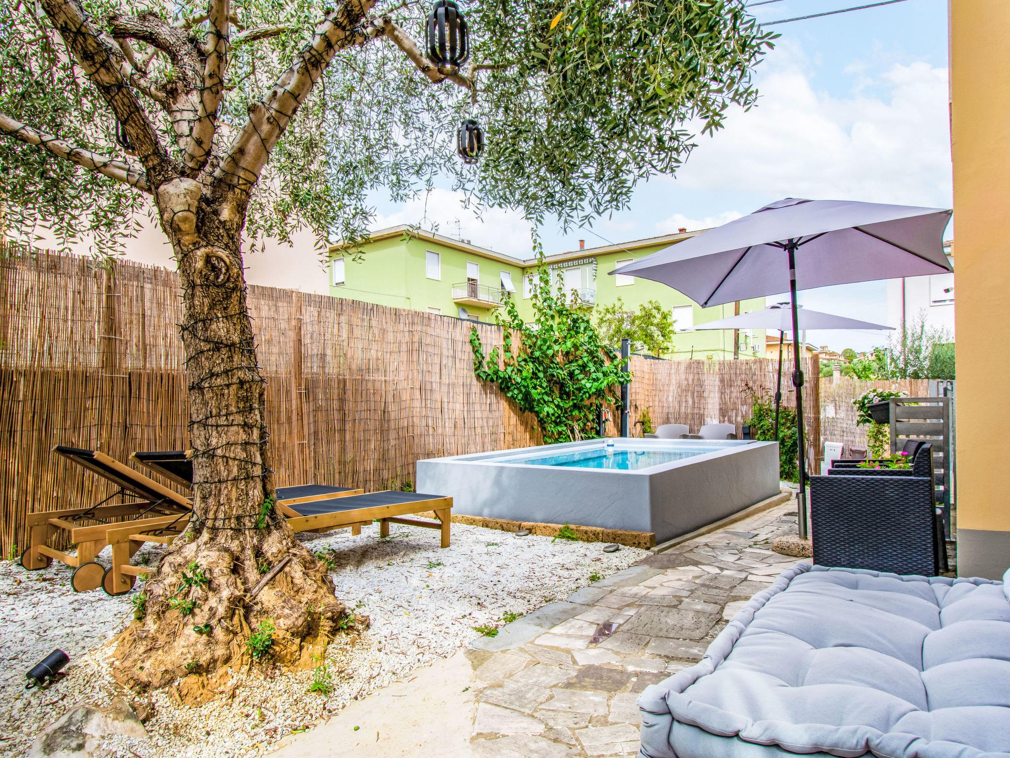 Modern, cosy 2-family house "Michelle", detached, renovated in 2024. In a quiet position in the residential district. Private: courtyard, swimming pool (6 x 3 m, depth 80 - 80 cm, seasonal availability: 01.May. - 15.Oct.). Planted inner courtyard. In the house: air conditioning, heating available only from 15.Nov. - 15.Apr.. Parking at the house at 10 m. Grocery 500 m, supermarket 1 km, shopping centre 1 km, bar 1 km, bus stop 1 km, railway station 600 m. Nearby attractions: Torre di Pisa 35 km, Volterra 50 km, San Gimignano 45 km, Firenze 50 km, Lucca 40 km. Please note: baby equipment on request (included). Owner lives in separate semi-detached house.