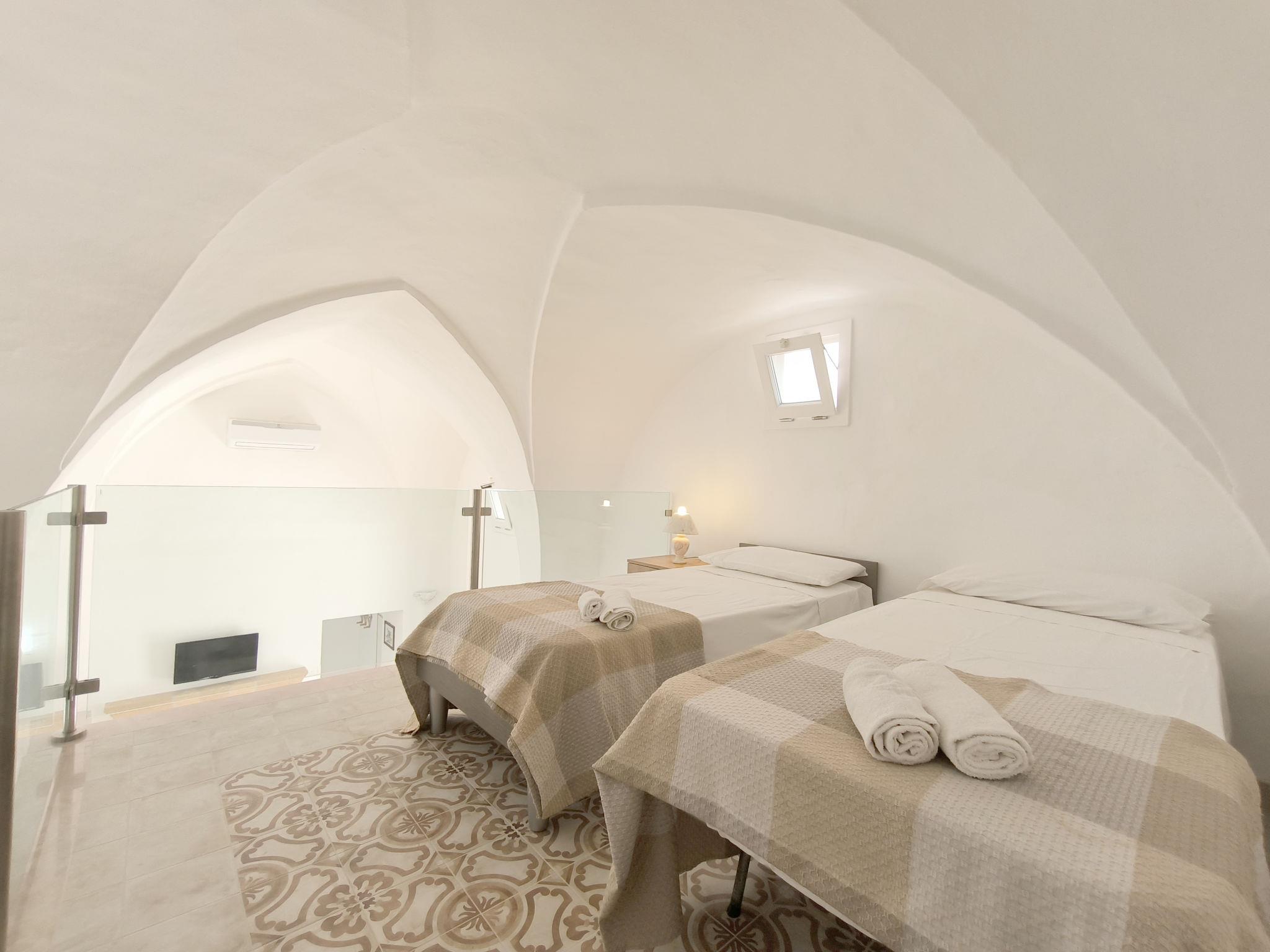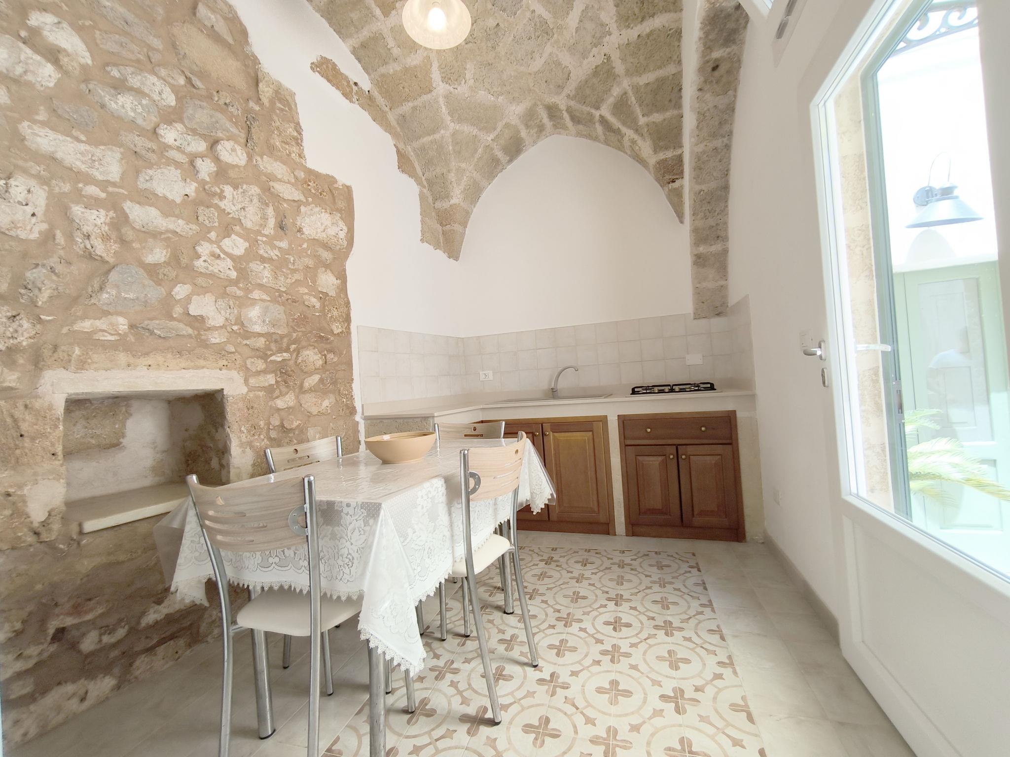 Salento: Historical 3-family house "Le Cementine", from the 19th century, renovated. 3 apartments in the property. In the resort 400 m from the centre of Morciano di Leuca, 2.5 km from the centre of Salve, 4.5 km from the centre of Torre Vado, 4.5 km from the sea, 4.5 km from the beach. For shared use: courtyard. Room cleaning on request (extra). Airport transfer (extra). Public parking on the road. Shop, grocery 250 m, restaurant 150 m, bus stop "Morciano di Leuca" 400 m, sandy beach "Marina di Pescoluse" 7 km. Nearby attractions: Santa Maria di Leuca 12 km, Gallipoli 43 km, Otranto 57 km, Lecce 79 km. On request: airport transfer to the holiday accommodation.