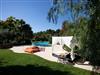The pool has a total size of 90 square metres. The maximum depth is 2.50 metres, while the minimum depth is at ground level as the entrance to the water is via a sloping walkway.