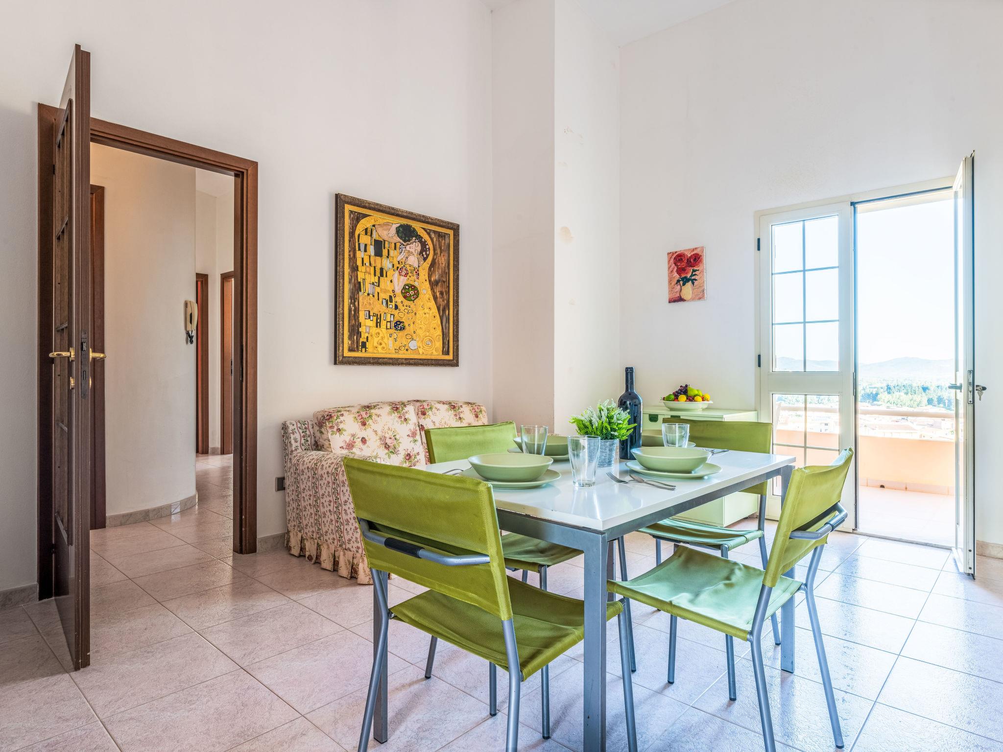 "Casa Arangiu 2", 4-room apartment 70 m2 on 2nd floor. Simple and cosy furnishings: living/dining room with TV and air conditioning. Exit to the balcony. 1 double bedroom with air conditioning. Exit to the balcony. 1 room with 2 beds and 1 pull-out bed. Exit to the balcony. 1 room with 1 bed. Large kitchen (oven, 4 gas rings, kettle) with dining table. Exit to the balcony. Bath/bidet/WC, hydro massage bath. Air-conditioning, forced-air heating. Heating not available in all rooms. Balcony. Balcony furniture, barbecue. View of the countryside. Facilities: washing machine, iron, children's high chair, baby cot (extra), hair dryer. IT111042C2000T1621
