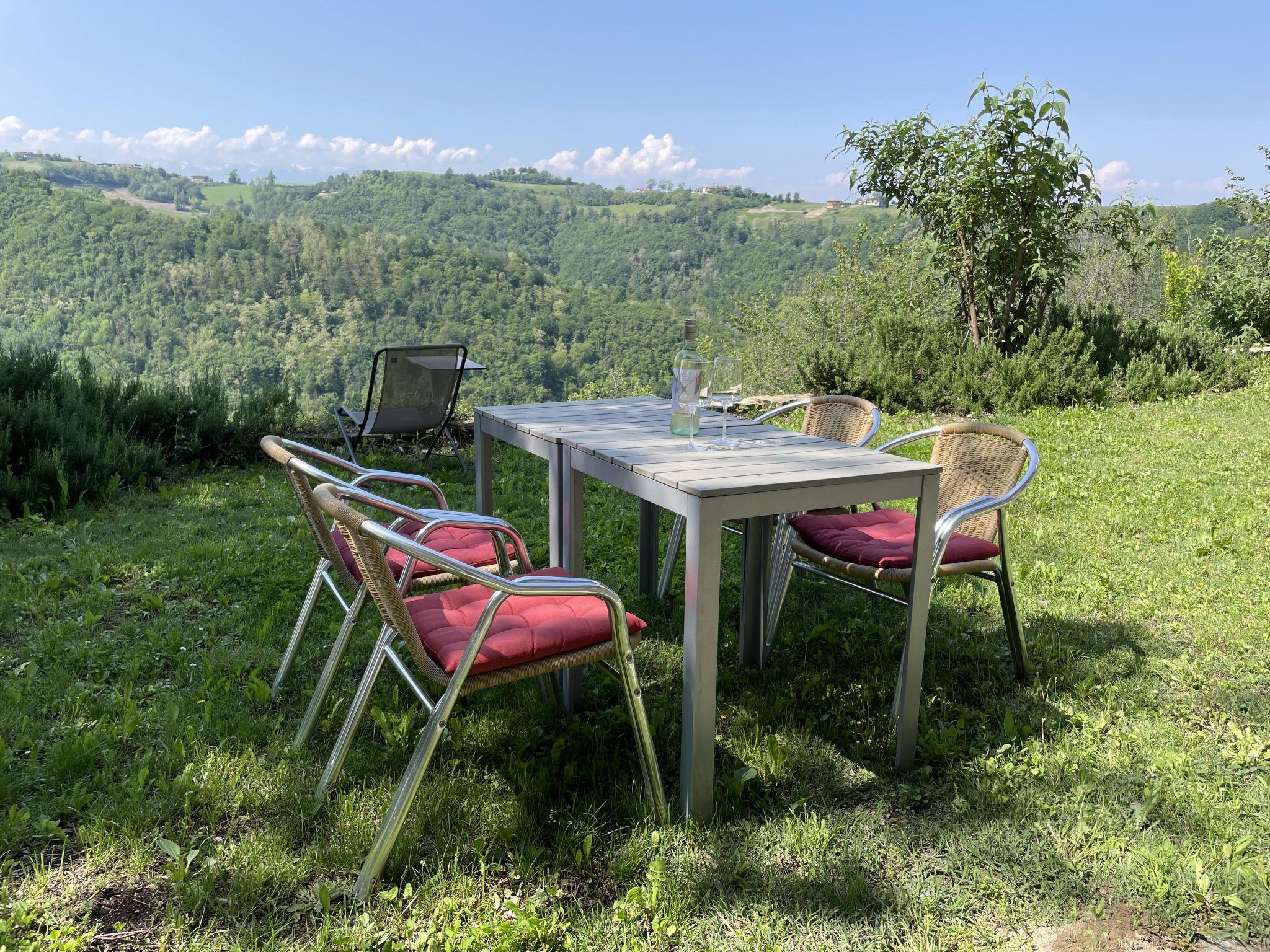 House "Casa Vacanza Cascina Lovera", 650 m a.s.l., surrounded by meadows, fields and vineyards. 4 apartments in the property. 3 km from the centre of Murazzano, 10 km from the centre of Dogliani, 20 km from the centre of Barolo, in a secluded position on a slope, 56 km from the sea. For shared use: property 15'000 m2, terraced garden (not fenced) with lawn and plants, natural garden, swimming pool (8 x 4 m, depth 140 cm, seasonal availability: 01.May. - 03.Oct.). Outdoor shower, terrace, garden furniture, planted inner courtyard pool maintenance by the owner/gardener. In the house: table football. Parking at the house on the premises. E-charging station. Shop 3 km, supermarket 10 km, bus stop 200 m, railway station "Bra" 34 km. Please note: the owner lives on the same property.