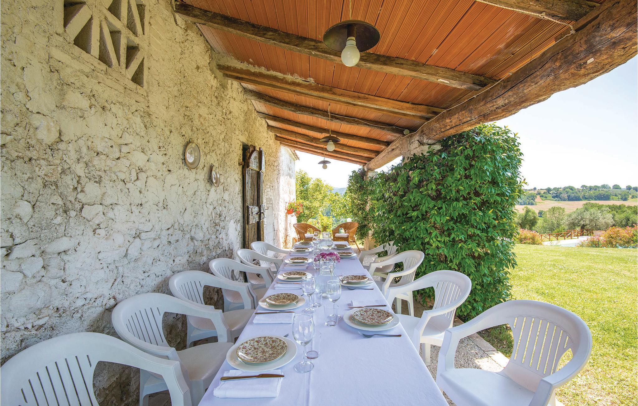 Skønt, typisk umbrisk landhus i rolige omgivelser med smuk udsigt ud over landskabet. Foran huset er der en stor græsplæne og swimmingpool (åben 7.5-30.9), og ved siden af huset ligger der en olivenlund. Huset har en komfortabel indretning. Et par tips til byer og seværdigheder: Narni med den karakteristiske, gamle bydel (alle slags butikker og tog mod Rom) 10 km, Spoleto 48 km, Rom 65 km. I bil kan I desuden på bare 1 time komme til byerne Orvieto, Todi, Assisi, Perugia og den smukke Piedilucosø. Umbrien nyder virkelig godt af sin gode beliggenhed, som bogstaveligt talt er 'Italiens hjerte'. Uanset hvad I vælger at se; bjerge eller bakker, søer eller kunstbyer, så vil I med garanti få opfyldt alle jeres drømme. Umbrien er rig på bjergbyer, som sprudler af historie, flot arkitektur og imponerende kunstskatte.