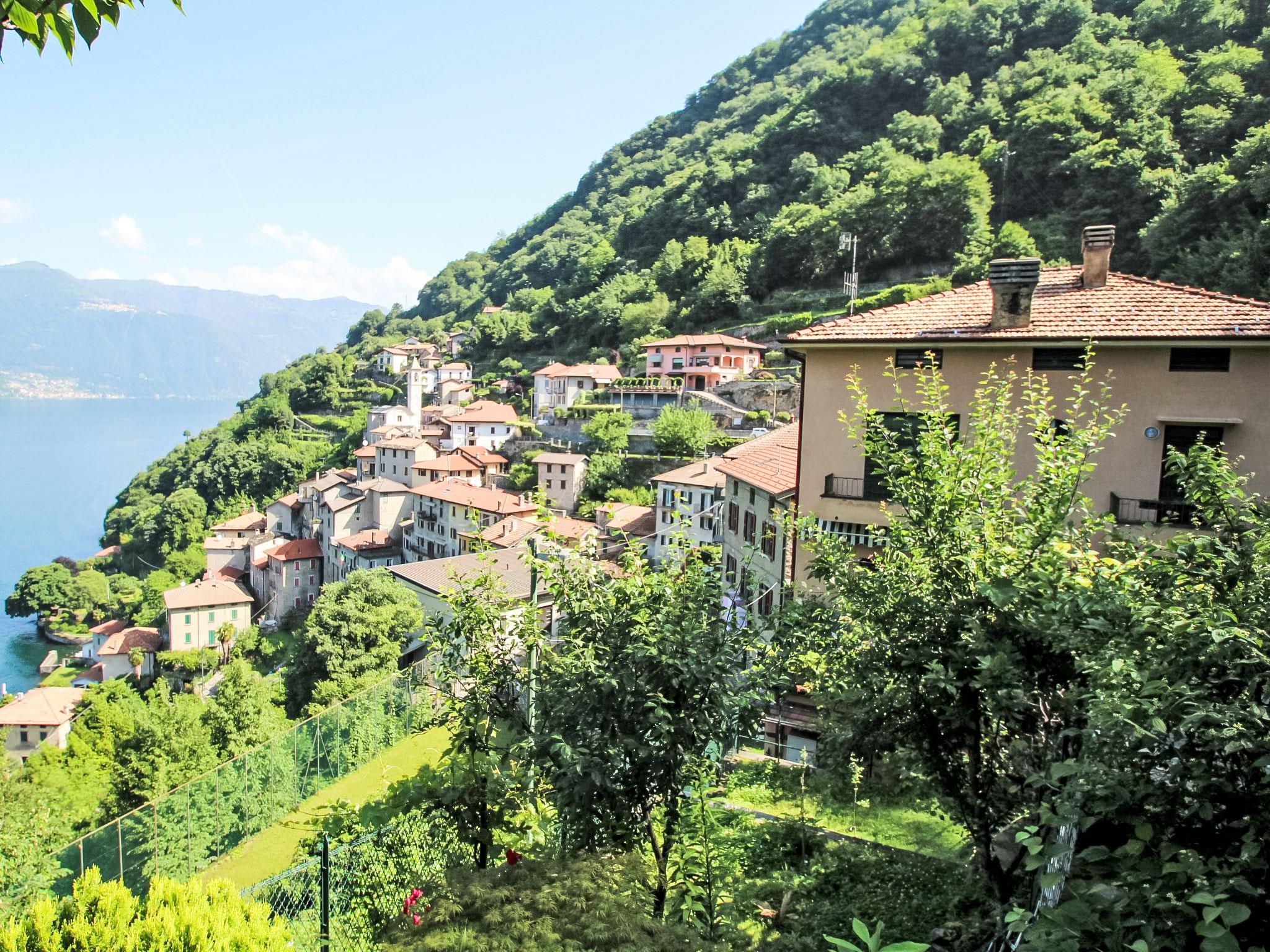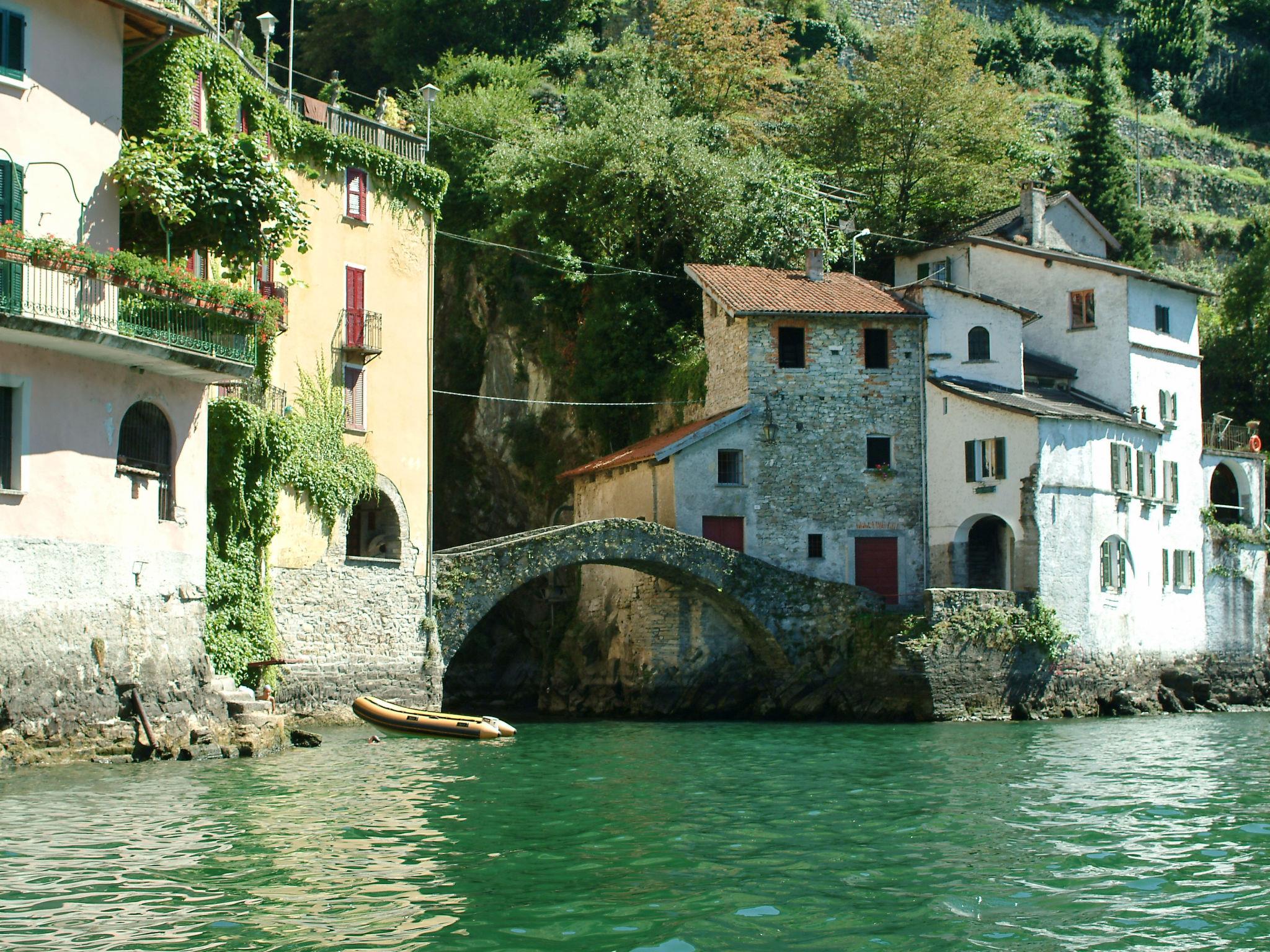 3-family house "Sabrina", 3 storeys. In the hamlet Careno 1 km from the centre of Pognana Lario, 2 km from the centre of Nesso, on a slope, 300 m from the lake, located by a road. Private: small terraced garden (fenced) with flowers and trees. In the house: storage room for bicycles. Stepped path to the house. Parking at 20 m. Grocery 1 km, restaurant 500 m, bus stop "Como - Bellagio" 20 m, pebble beach 300 m (small). Nearby attractions: Boat service Como - Bellagio 300 m, Orrido di Nesso 2 km, Bellagio 15 km. Hiking paths: Piani del Tivano 12 km, Ghisallo 25 km. Please note: car recommended.