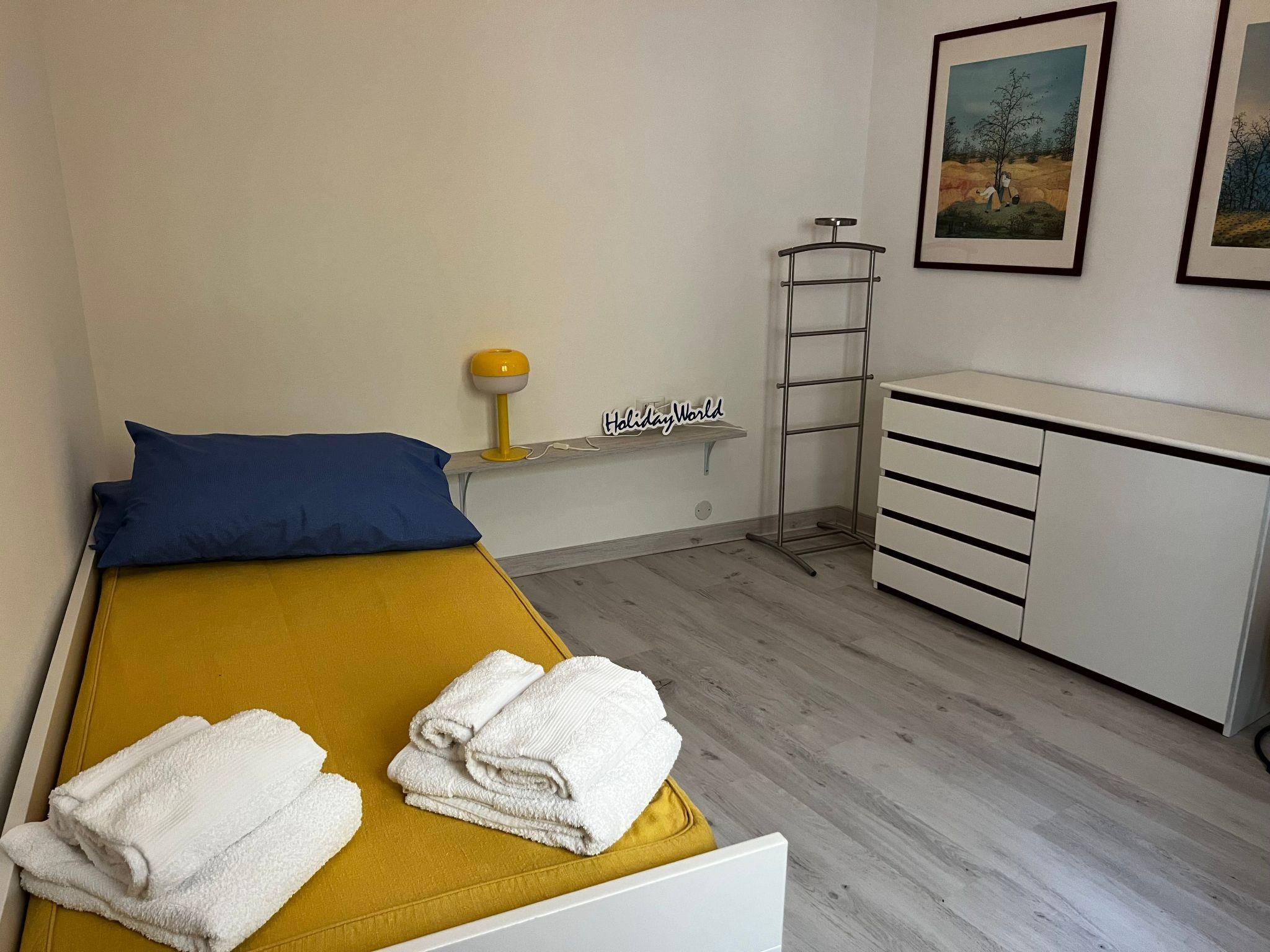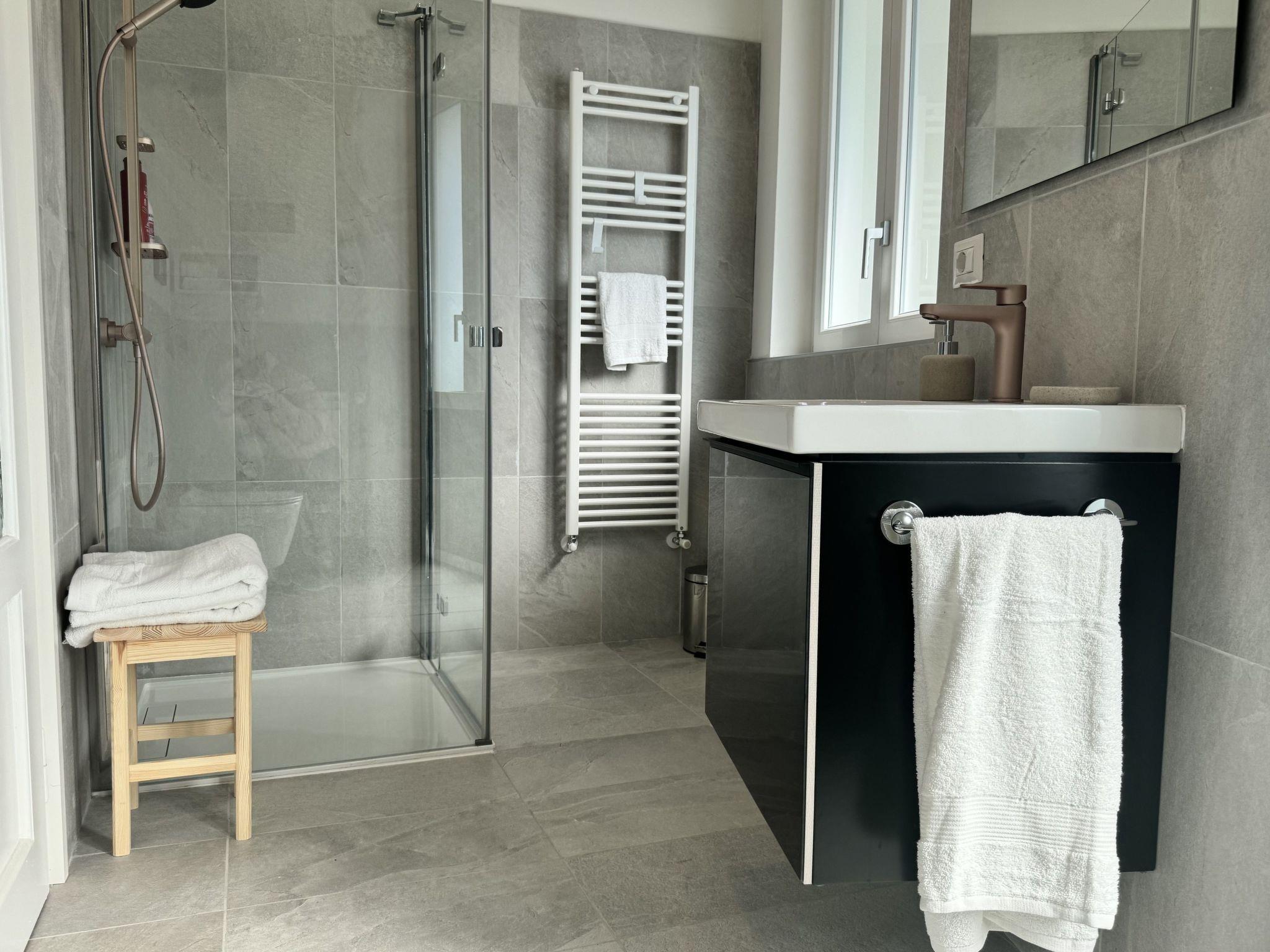 Breva e Tivan is a comfortable and practical flat located in one of the most picturesque and peaceful locations on Lake Como, Blevio. This location offers a spectacular view of the lake and a tranquil atmosphere, ideal for those seeking an elegant and modern retreat, without sacrificing the surrounding natural beauty. L'appartamento è caratterizzato da una zona giorno open space, che include un soggiorno e un angolo cottura. La finestra offre una vista mozzafiato sul lago, che arricchisce l'environment with plenty of natural light. This spacious and bright space is perfect for enjoying moments of relaxation, dinners with friends, or simply admiring the beauty of Lake Como. L'appartamento dispone di due bagni, uno con doccia, entrambi situati in prossimità dell'entrance, for convenient accessibility. Next to the living area, we find a small study area with desk, ideal for those who need a quiet space to work or study, separate from the relaxation area. This area is located next to the master bedroom, and offers an intimate and refined corner. The master bedroom has a private balcony, which offers a panoramic view of the lake, making it the perfect place to relax or enjoy the sunset. Finally, there is a cosy and functional bedroom, ideal for optimising space. In the middle of the room is a single bed, elegant and practical, with a pull-out bed.