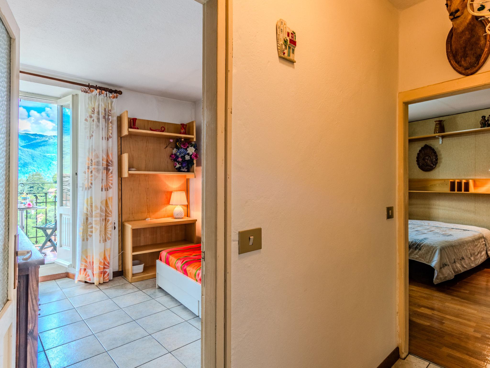 "Casa Vista Cascata", 3-room apartment 55 m2 on 1st floor. Simple and rustic furnishings: dining room with dining table. 1 double bedroom with panoramic window. 1 room with 1 bed (80 cm, length 190 cm). Exit to the balcony. Kitchen-/living room (oven, Gas stove, 4 gas rings, microwave, freezer) with dining nook and TV. Shower/bidet/WC. Gas heating. Heating available only from 15.10. to 15.04. Parquet floors, natural stone floors. Small balcony. Balcony furniture. Very beautiful view of the lake, the mountains and the resort. Facilities: washing machine. Please note: non-smokers only, no parking. IT013161C28456Q8W5