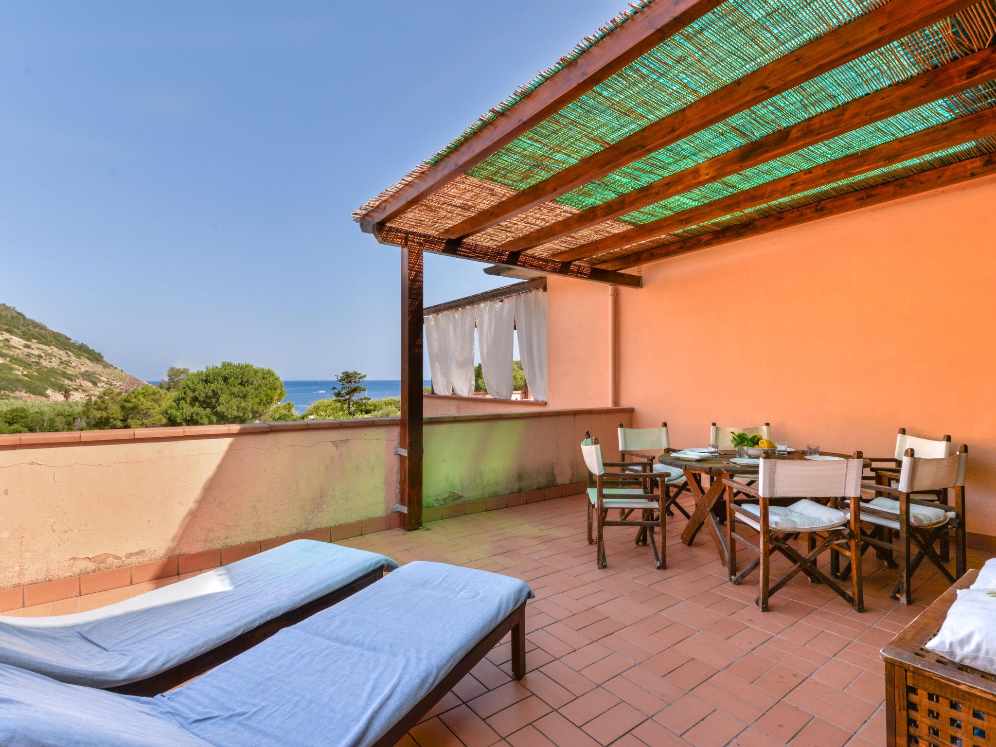 Residence "Altaluna". 24 apartments in the property. In the hamlet Nisporto 5 km from the centre of Bagnaia, 7 km from the centre of Rio nell'Elba, in a sunny position, 100 m from the sea, 100 m from the beach. For shared use: property (fenced), swimming pool (10 x 20 m, depth 150 cm, seasonal availability: 02.Jun. - 30.Sep.). Outdoor shower, garden furniture, children's playground, parking space n 7. Grocery 100 m, supermarket 7 km, restaurant 100 m, bus stop 5.2 km, ferry "Rio Marina" 10 km, sandy beach, shingle beach 100 m. Nearby attractions: Porto Azzurro, Porto Ferraio 16 km, Capoliveri 22 km. Please note: car recommended. Residence with electric gates.