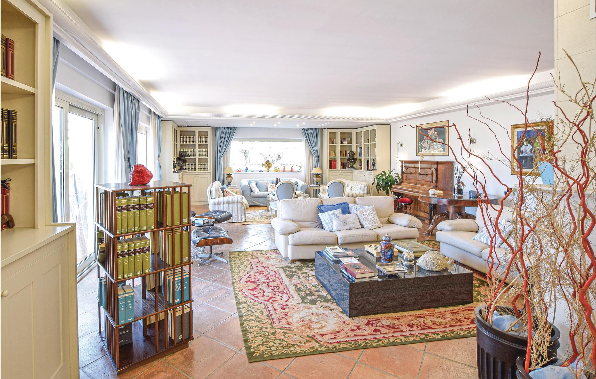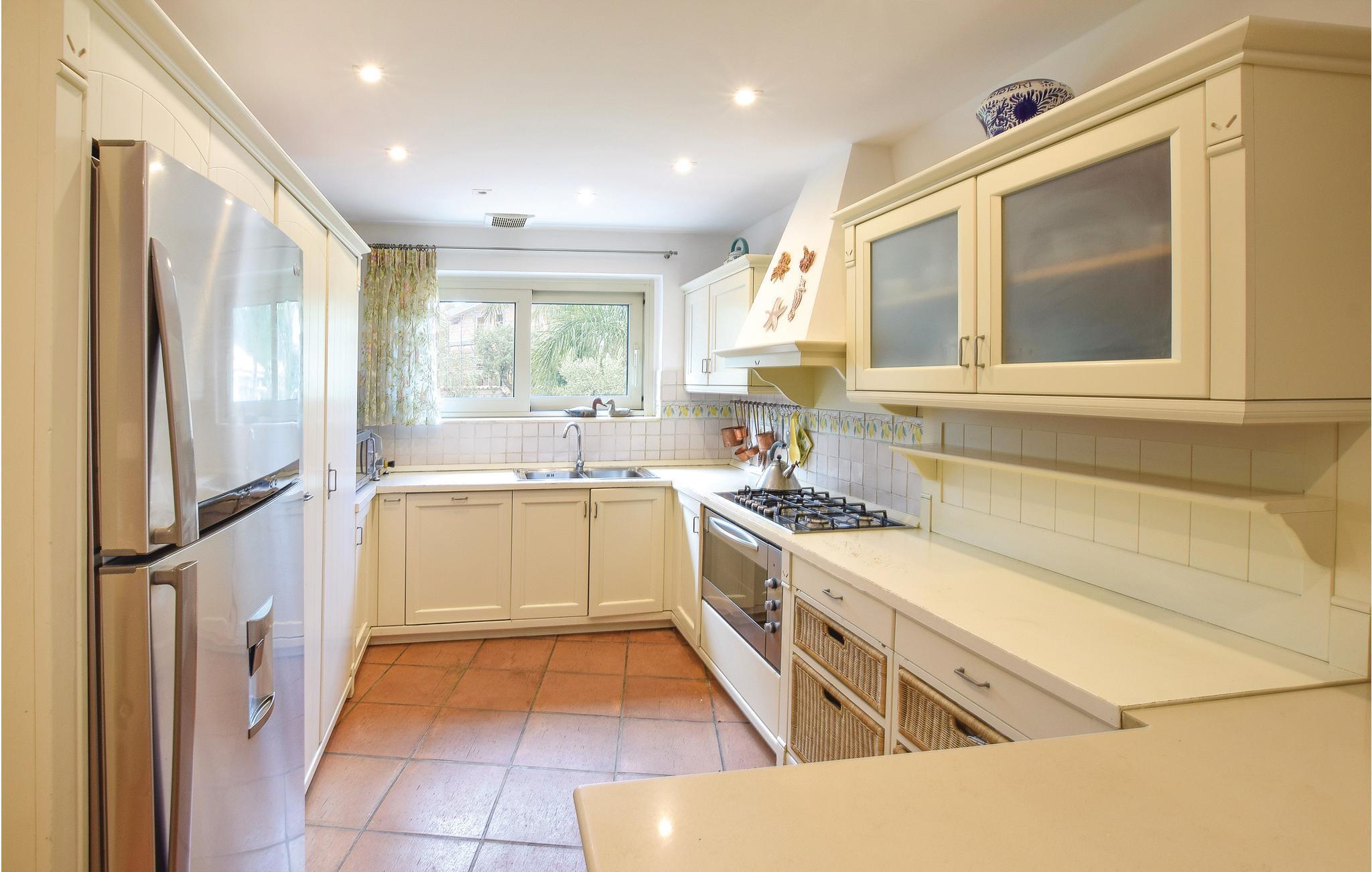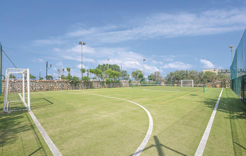 I stueplan er der et fitnessrum med whirlpool til fire personer og en sauna. Fra stuen er der udgang til veranda med borde og stole, hvor I kan nyde dagens måltider i det fri, eller bare slappe af med en bog og et godt glas vin. Til huset hører også et anneks med en køkkenafdeling, soveværelse og badeværelse. I har adgang til en pool med vandmassage, en fodbold- og tennisbane, et udendørs brusebad, liggestole og solparasoller.