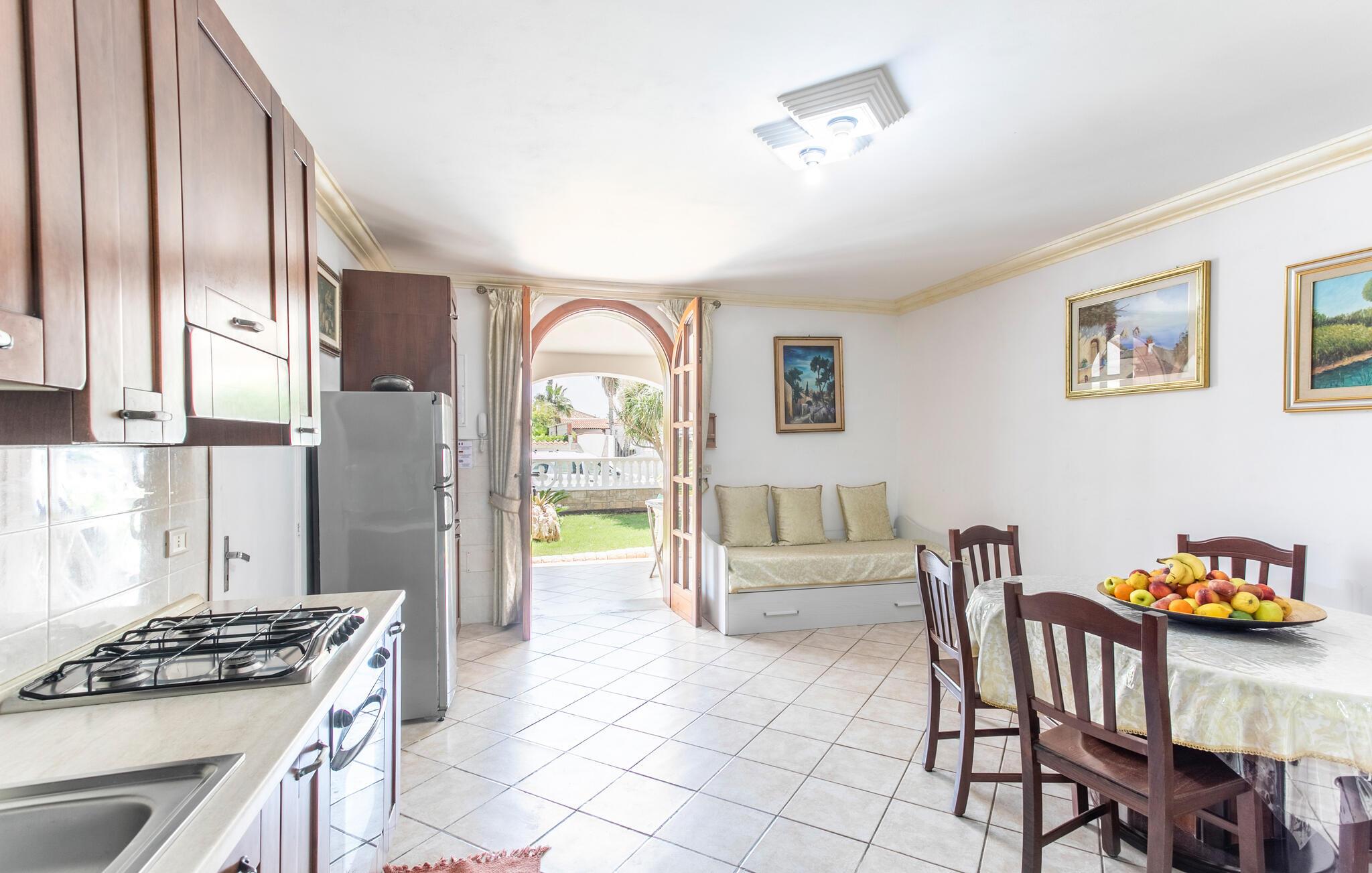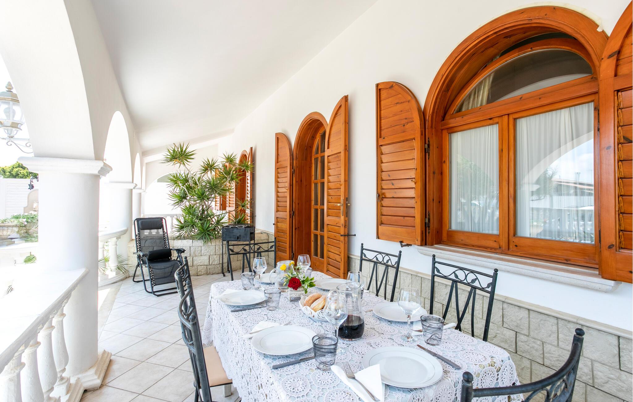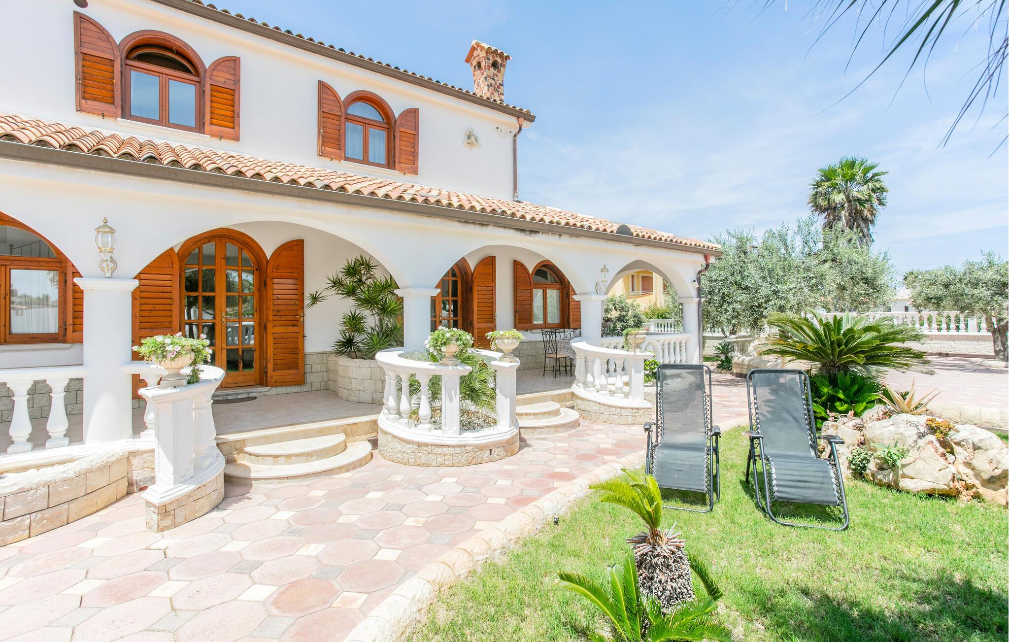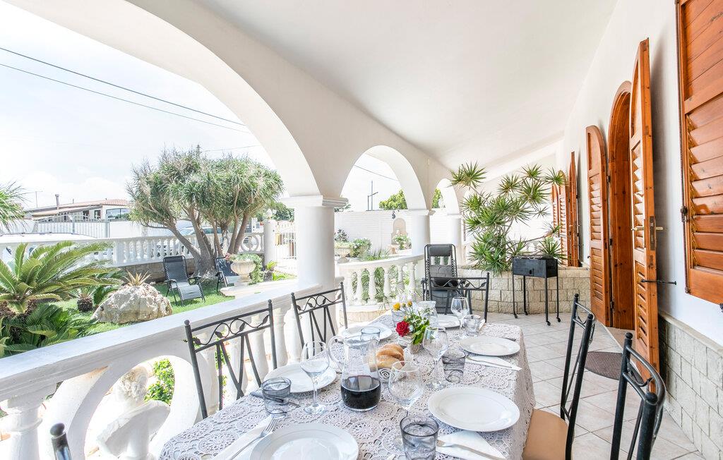 Ferielejlighed i Sicilien 3 km fra Pachino og 200 meter fra havet ved Marzamemi. Lejligheden ligger i stueetagen i en villa med tre soveværelser, to badeværelser, stue og køkken. Villaen har veranda og grill, bord og stole samt en stor have. Ideel for familier og vennegrupper. Villaen ligger 200 meter fra havet i et lækkert rekreativt område i Marzamemi, en gammel fiskerby. I kan vælge mellem strande ved Det Ioniske Hav og Middelhavet med krystalklart vand. De barokke monumenter i Noto er værd at opleve. Afstande: Modica og de arkæologiske udgravninger i Cava d'Ispica (40 km), Scicli, som er omgivet af bjerge og hav (55 km), og Catania ved foden af Etna (93 km). Der er kun 20 km til Pozzallo, hvor der er færgeforbindelser til øen Malta.