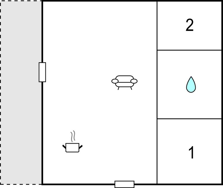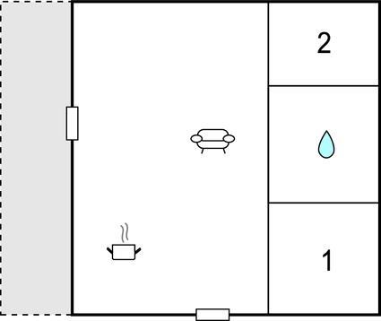 Opholdsstue/køkken - 1 Soveplads. (Sofa, madras eller lignende).