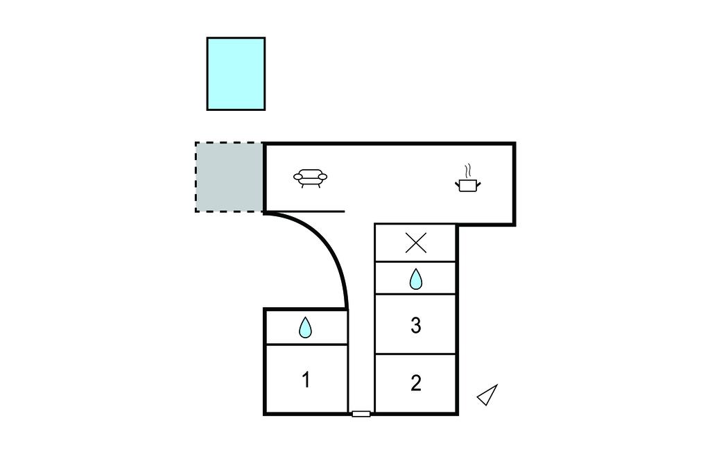 Opholdsstue/køkken 35m2 - 2 Sovepladser. (Sofa, madras eller lignende).