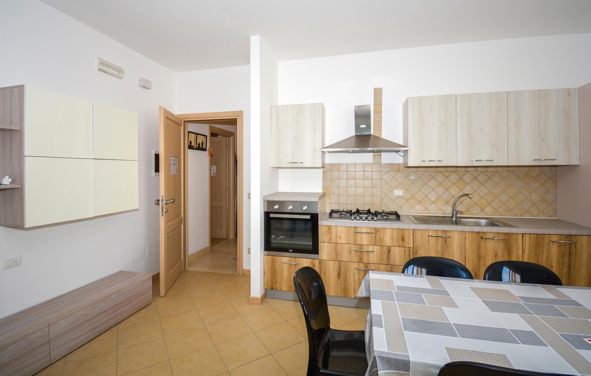 Denne indbydende ferielejlighed kombinerer moderne komfort med traditionel siciliansk charme. Tilbered kulinariske lækkerier i det åbne køkken og nyd måltider sammen i den venlige spiseplads. Planlæg jeres aktiviteter her eller organiser en hyggelig spilaften.