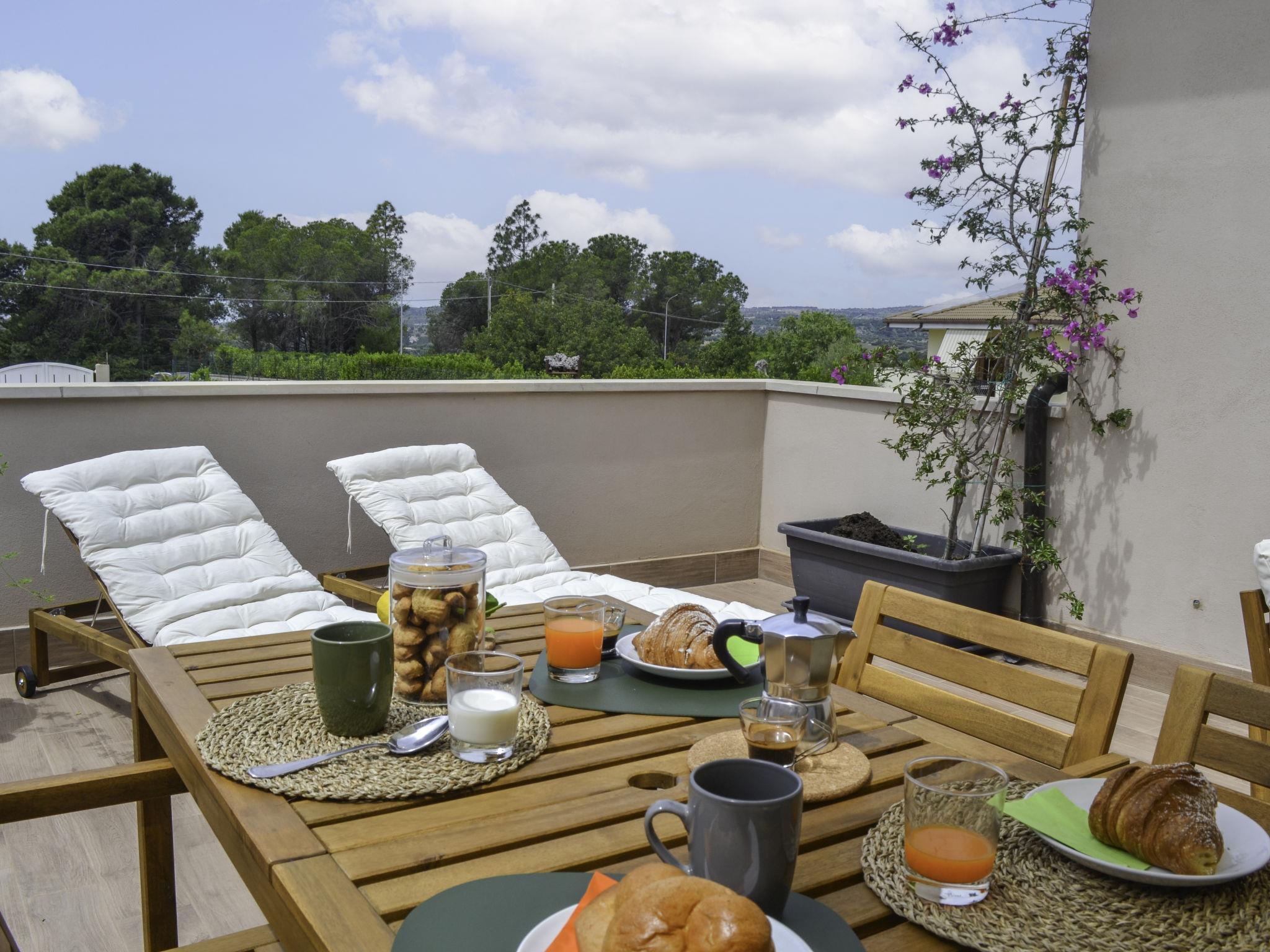 Apartment house, built in 2023. In the hamlet San Corrado 6 km from the centre of Noto, 37 km from the centre of Siracusa, in a quiet, sunny position, 15 km from the sea. For shared use: property 2'000 m2 (fenced). Heating to be paid on the spot (01.Apr. - 14.Nov.), heating available only from 15.Nov. - 31.Mar.. Cook on request (extra). Breakfast on request (extra). Stepped path (18 steps) to the house. Parking on the premises. Supermarket 2 km, restaurant 2 km, bar 2 km, bus stop 6.5 km, railway station "Noto" 8.5 km, sandy beach "Lido di Noto" 15 km. Nearby attractions: Parco Archeologico Noto Antica 8 km, Avola 14 km, Marzamemi 25 km, Isola delle Correnti Punto Sud Sicilia 32 km, Modica 37 km, Ragusa 50 km. Well-known lakes can easily be reached: Laghetto del Cassibile 13 km. Hiking paths: Riserva Oasi Faunistica Vendicari 18 km. Please note: car recommended. Residence with electric gates. The owner lives in the same residence. The owner has a dog.