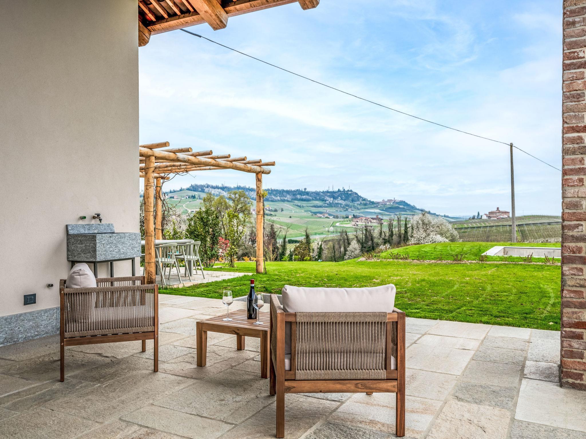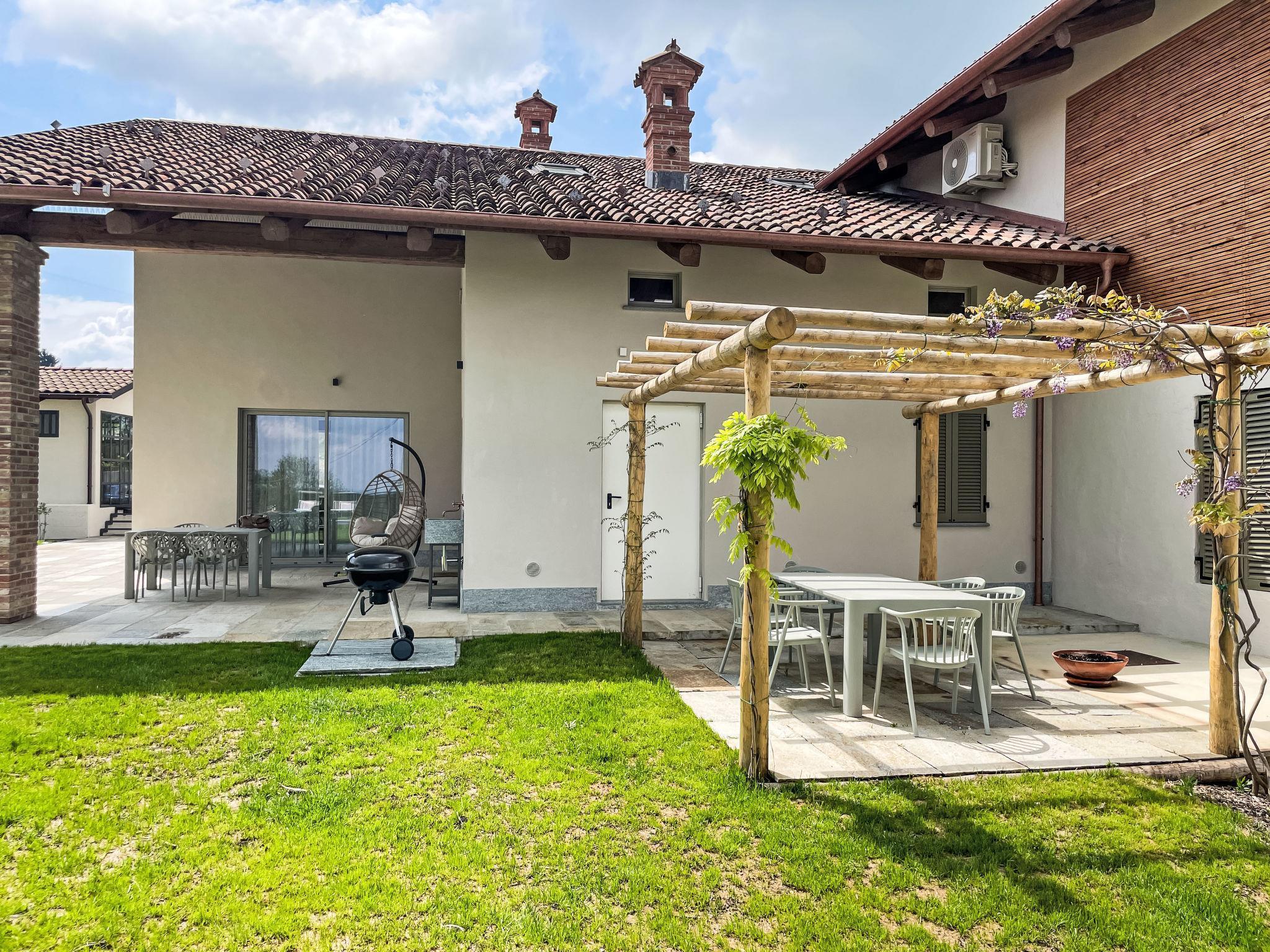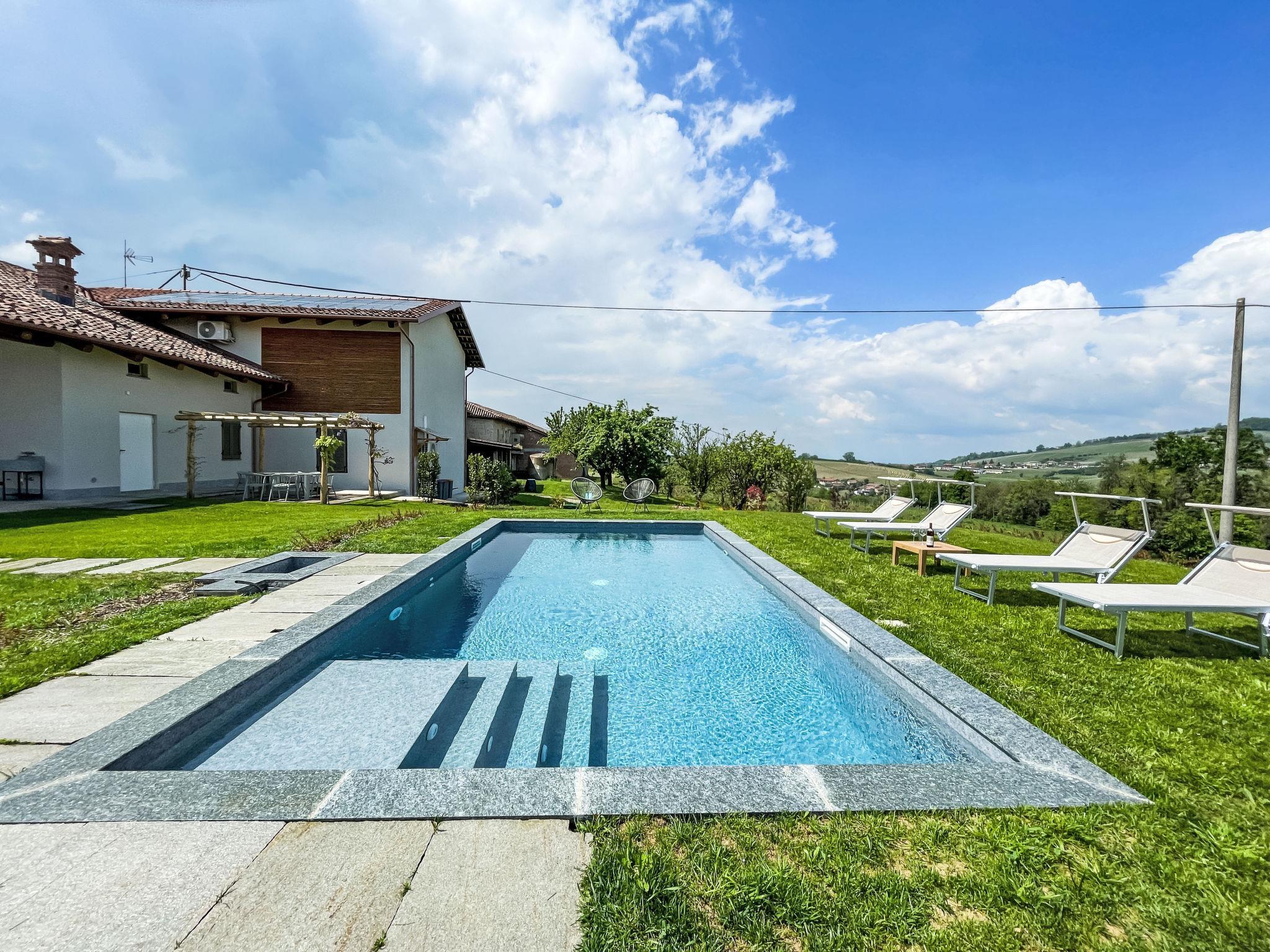 Very modern, comfortable cottage "Cascina Luscai", surrounded by fields and vineyards. On the outskirts, 1 km from the centre of Novello, in an elevated position on top of a hill. Private: large garden (not fenced) with lawn 800 m2 wildlife garden, swimming pool (4 x 8 m, depth 140 cm, seasonal availability: 04.May. - 03.Oct.). Outdoor shower, pool maintenance by the owner/gardener. Parking at the house on the premises. Grocery 1 km, supermarket 3 km, bus stop "Novello" 500 m, railway station "Alba" 18 km. Nearby attractions: Alba 18 km, Asti 45 km, Turin 65 km. Please note: car recommended.