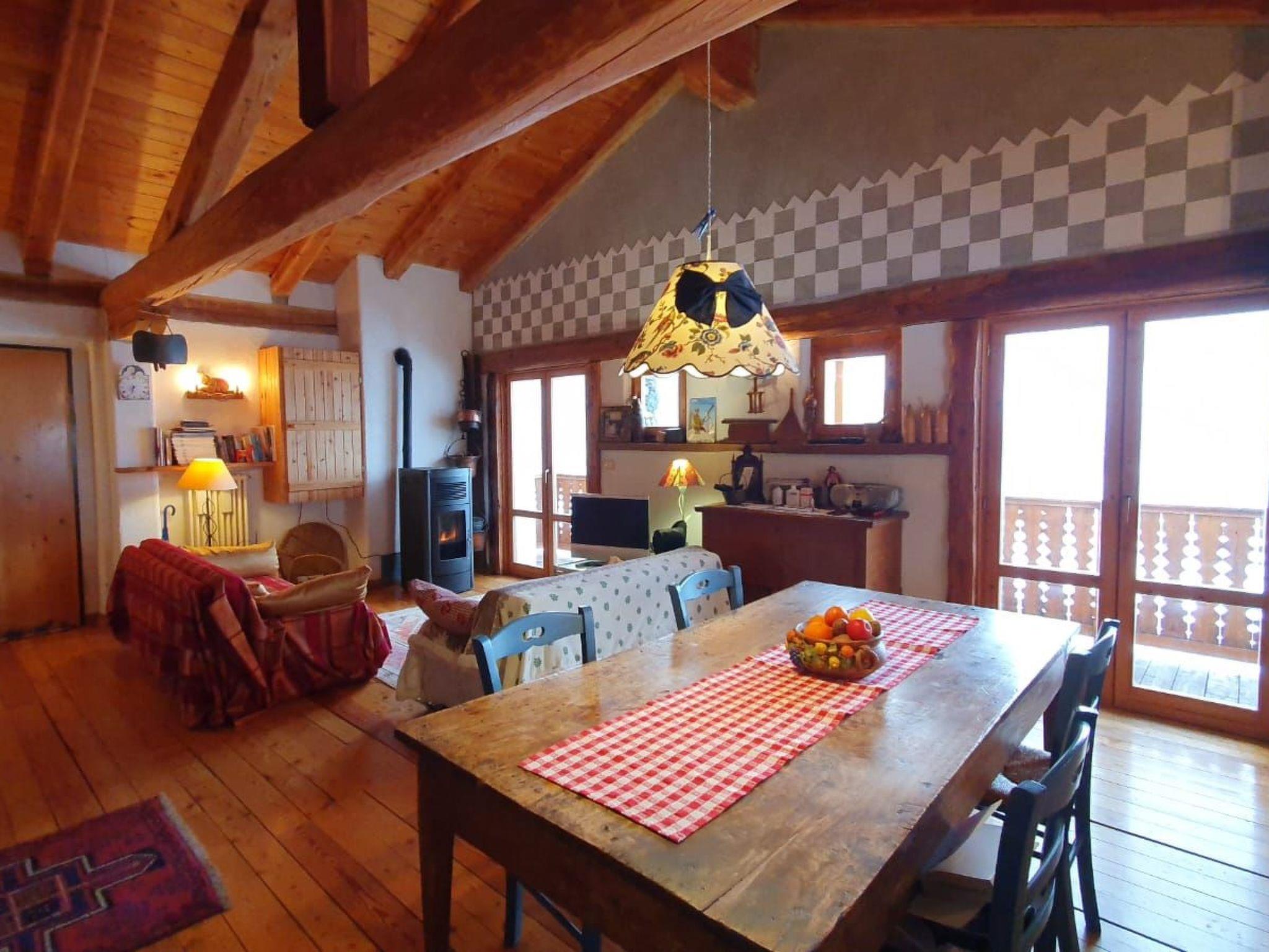 The house in which this holiday flat is rented is located in a village called Venoz, at an altitude of 1,800 metres, and belongs to the municipality of Nus. The village consists of around 20 houses from the 18th century, which have been carefully restored using typical materials from the valley.