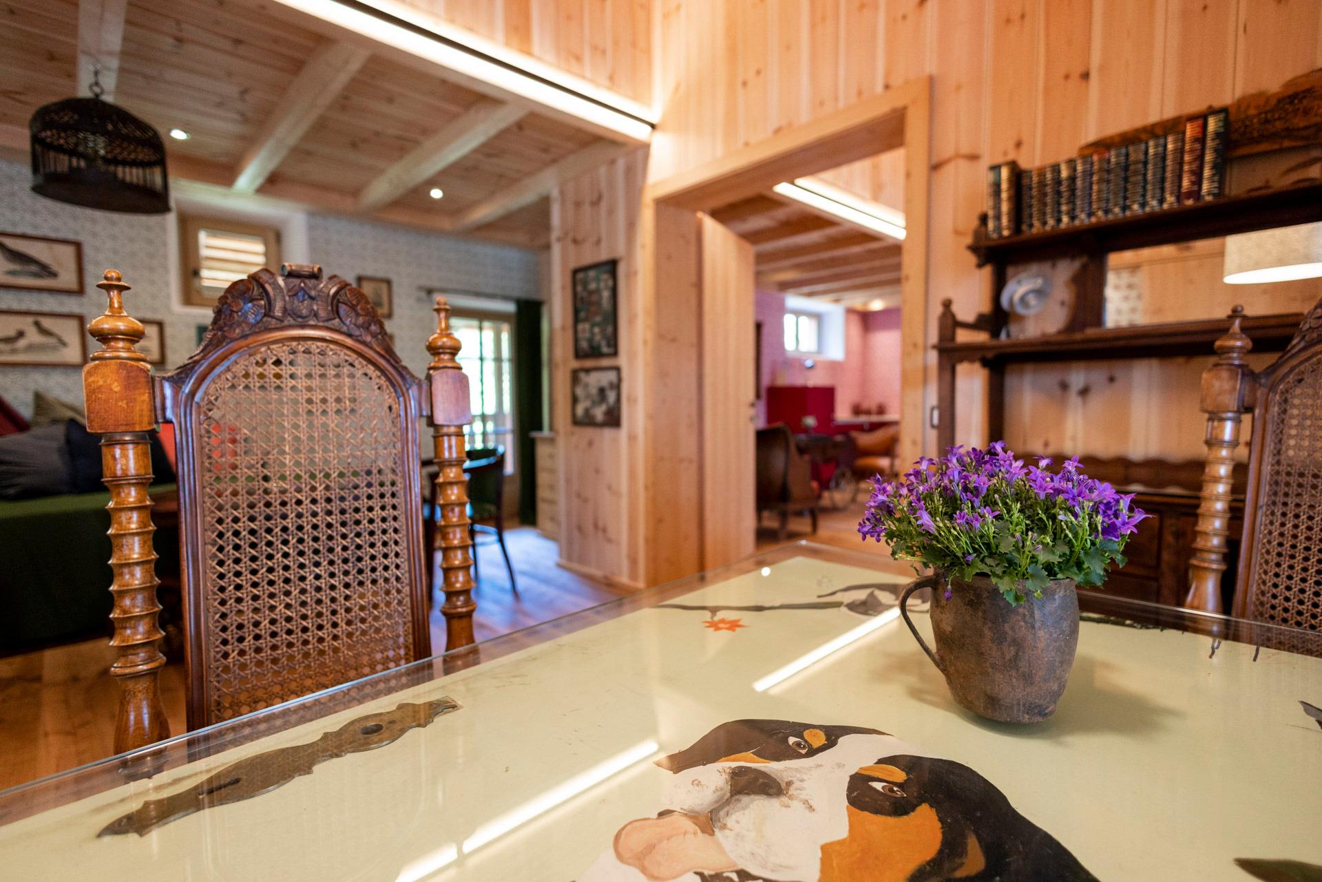 An diesen 3 Grundprinzipien sind unsere Ferienwohnungen ausgerichtet. Es handelt sich um vier kleine Wohnungen. Jeweils 2 davon (ASSUNTA und FRIEDRICH im esrten Stock beziehungsweise PAUL und GEORG-OTTO im Parterre) können durch eine große Türe verbunden werden: es lassen sich somit auch zwei große Wohnungen anmieten.